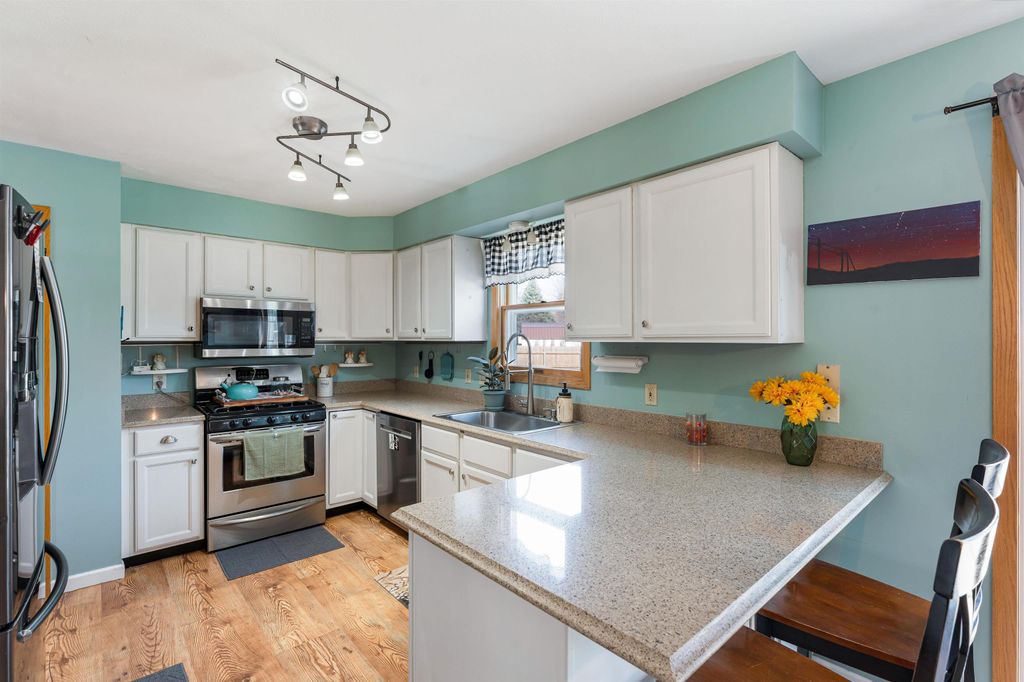 This beautifully maintained 3-bedroom, 2.5-bath contemporary home in Fort Atkinson's West Park subdivision offers bright, inviting living spaces and a comfortable layout. The main level is filled with natural light and features a well-appointed kitchenette with granite countertops and stainless steel appliances, plus a formal dining room ideal for gatherings. Two sets of patio doors open to a large fenced-in yard with an above-ground pool. Upstairs, the spacious primary suite includes an attached bath, along with two additional bedrooms and another full bath. An attached garage and a convenient location near schools, shopping, medical facilities, and the bypass complete this exceptional home.