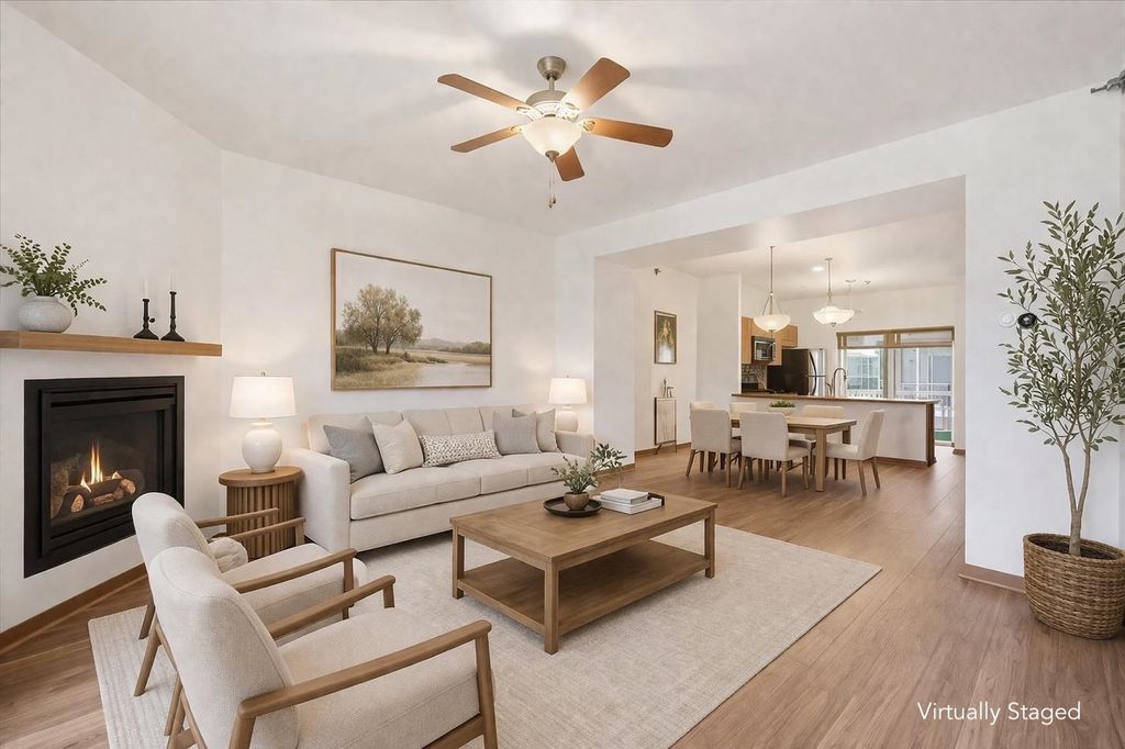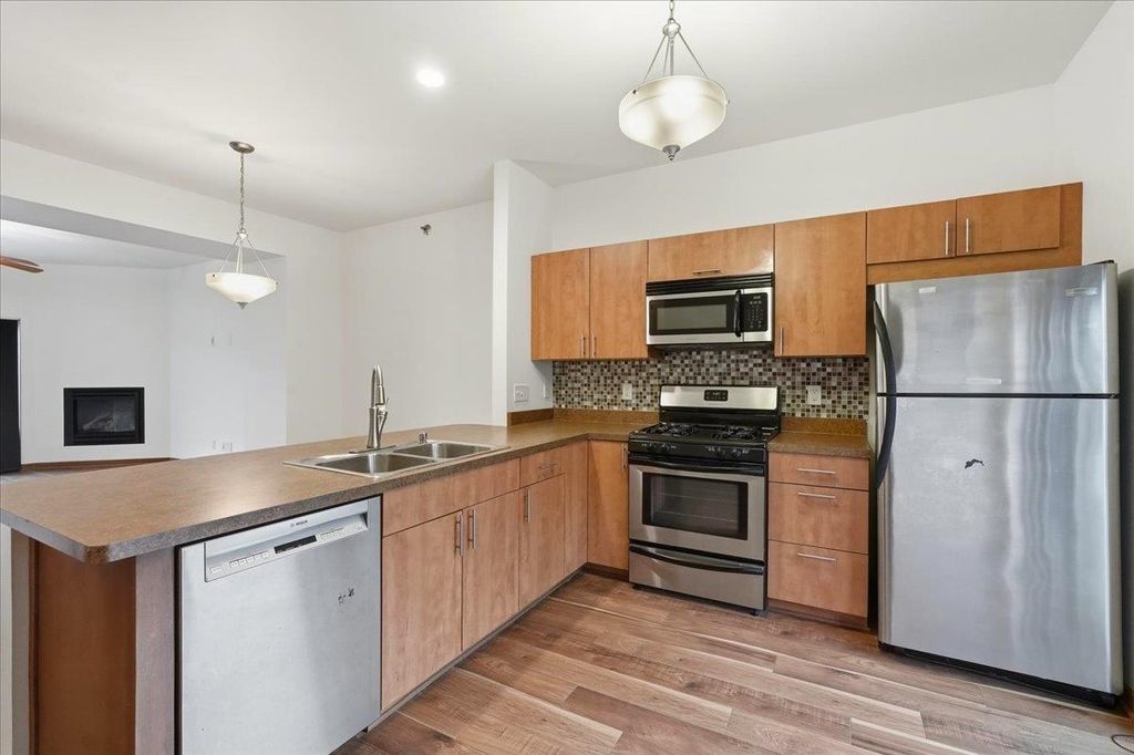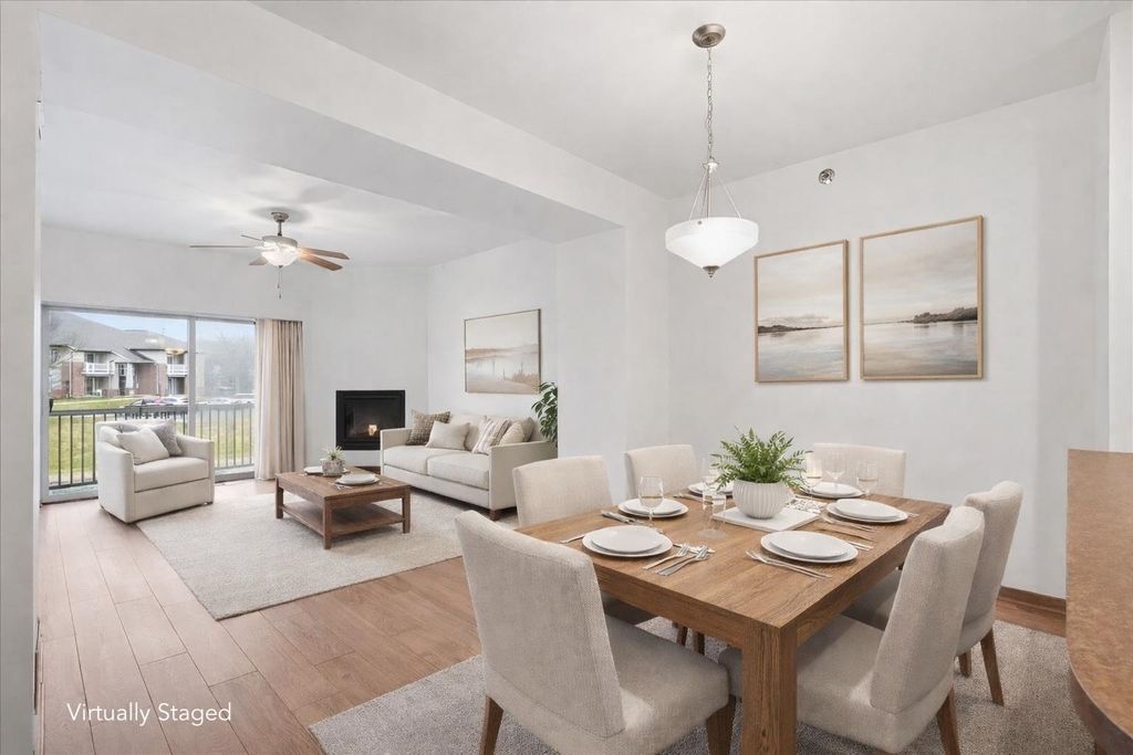 Welcome to this beautifully refreshed 2-bedroom, 2.5-bath condo offering 1,600 square feet of stylish living space in a prime location that's 20 minutes to both the UW and Epic. Freshly painted and professionally cleaned, this move-in-ready unit features updated warm-toned wood flooring and high ceilings that create a bright, open feel throughout. The main living area centers around a cozy gas fireplace and flows seamlessly into the kitchen and dining spaces "” perfect for both everyday living and entertaining. Enjoy outdoor flexibility with two private patio spaces, ideal for morning coffee, grilling, or relaxing evenings. Upstairs, you'll find two spacious bedrooms, each with ample closet space and convenient access to well-appointed, full ensuite bathrooms. An attached two-car garage provides everyday convenience and extra storage. Flexible rec space can be used as home gym, play room, or a spacious work-from-home set up. Don't miss this move-in-ready opportunity!