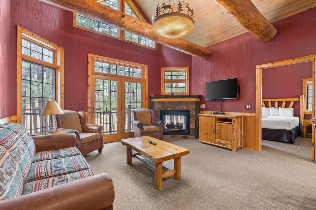 Tucked within Wilderness Resort, this stand-alone cabin offers a rare blend of privacy, views, and income potential. Backing directly to Wild Rock's executive golf course and just steps from Sundara Spa, the setting is hard to beat. Designed for gathering, the home features 4 bedrooms plus additional sleeping areas for up to 10 guests, along with 2 full baths and an open-concept living space. The cabin-style interior is warm and inviting, with space to relax after a day on the course or at the waterparks. Enjoy peaceful golf course views from the deck or take advantage of everything Wilderness Resort has to offer. Whether you're looking for a personal getaway, an investment property, or both, this property delivers flexibility with eligibility for the Wilderness rental program. A turn-key opportunity in one of the Dells' most sought-after resort settings. Seller is licensed Realtor.