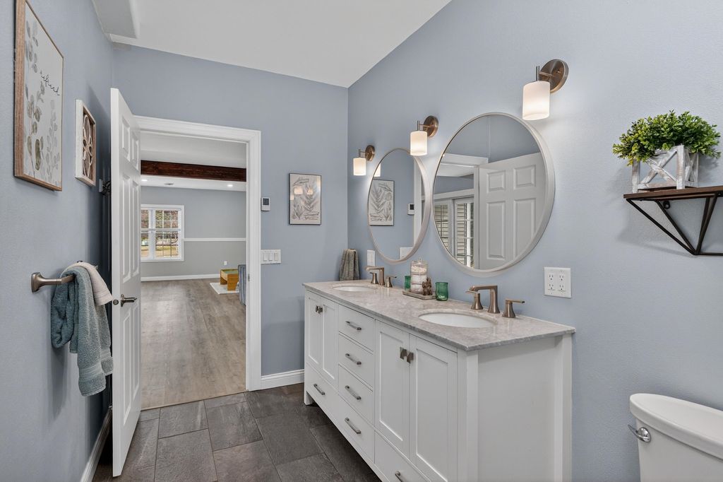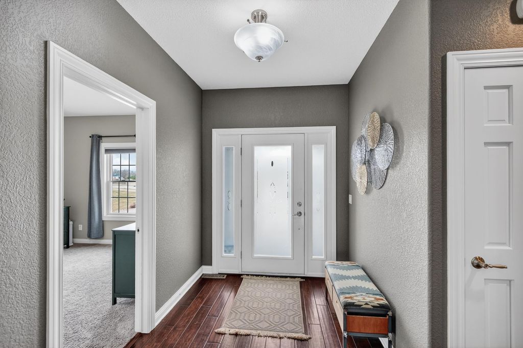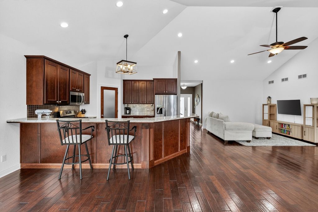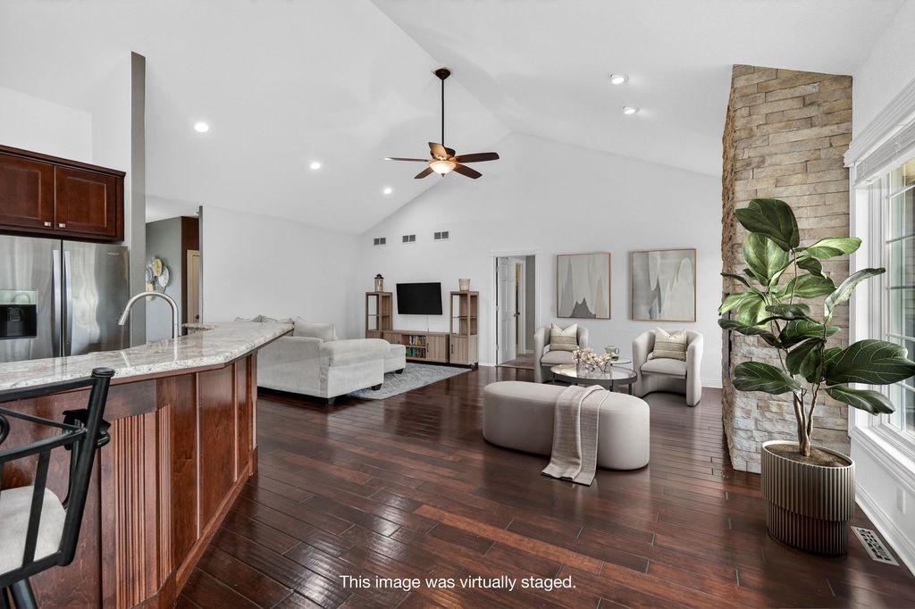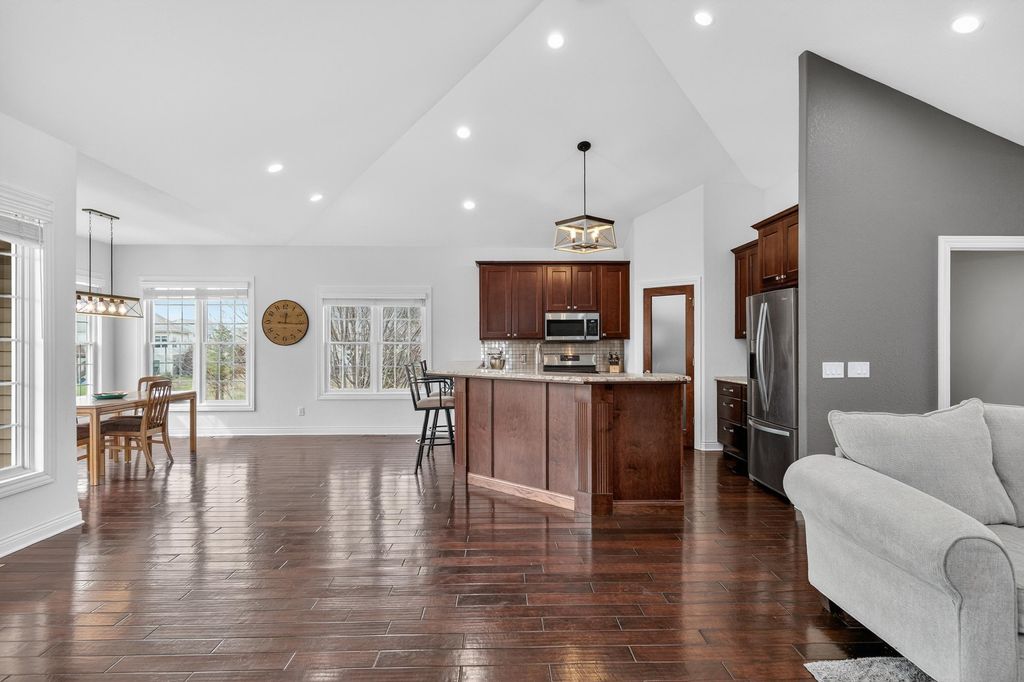 Open House - Saturday April 4th 10:00am - 12:00pm. Your Dream home in Deerfield WI! Corner lot with nature and water along the west side of the property. Approximately 25 minutes to UW Hospital, Glacial Drumlin 48 mile state trail minutes away from hiking, biking and more. Favorite features of the home, primary and lower level full bathrooms are tastefully tiled, floor to ceiling. LL bathroom has toasty warm heated flooring. The lower level feels like a second home within a home. So spacious, so many windows, walk out to concrete patio, a wet bar, large rec room, a place for your exercise equipment and more. The main floor has vaulted ceilings, a chef's kitchen with endless granite counter tops, a peninsula that seats 8, walk in pantry, cherry cabinets, and hickory wood floors that lead your eye to a floor to ceiling brick fireplace. Private patio off the Dining room area. The garage has tall ceilings and ample storage. Check out the local coffee shop on Main St & parks!