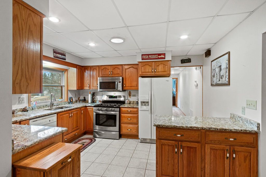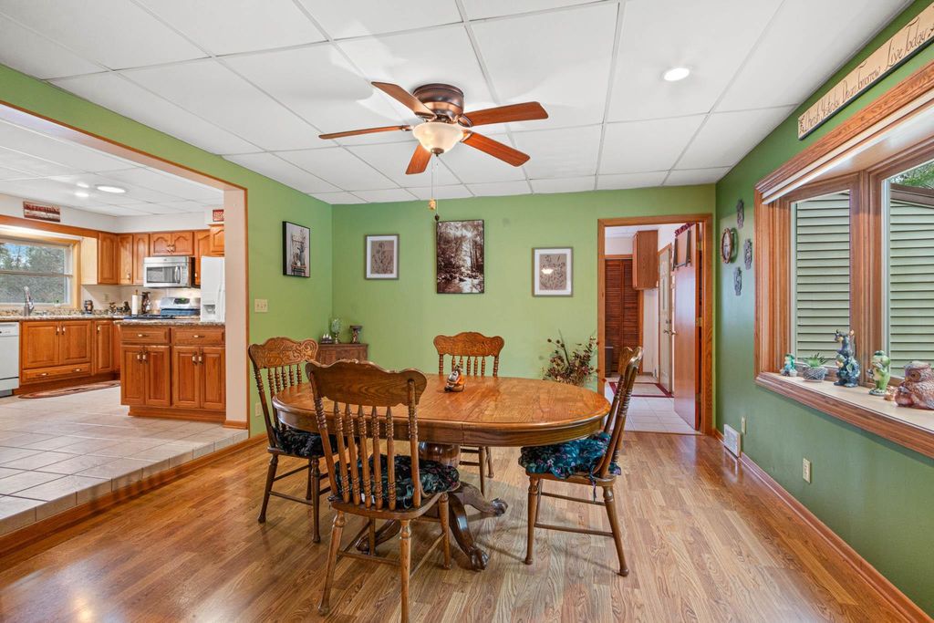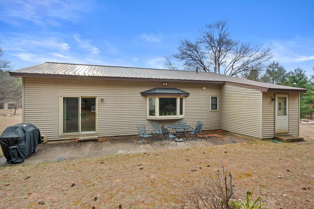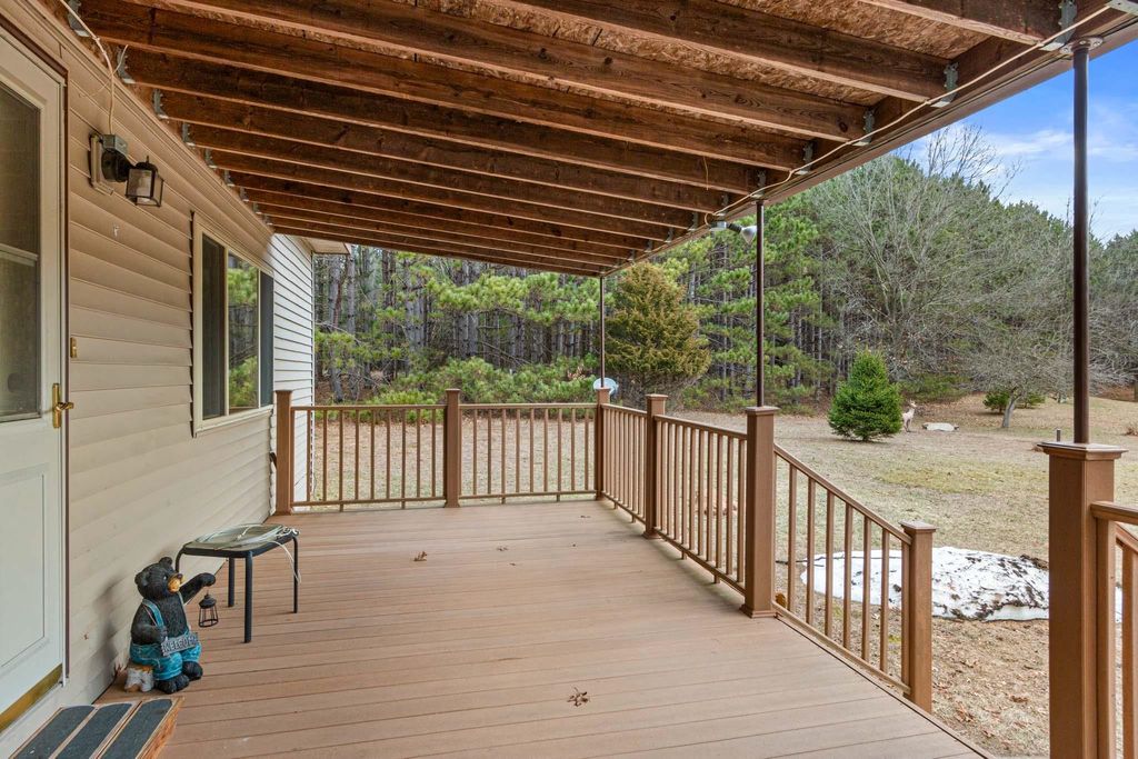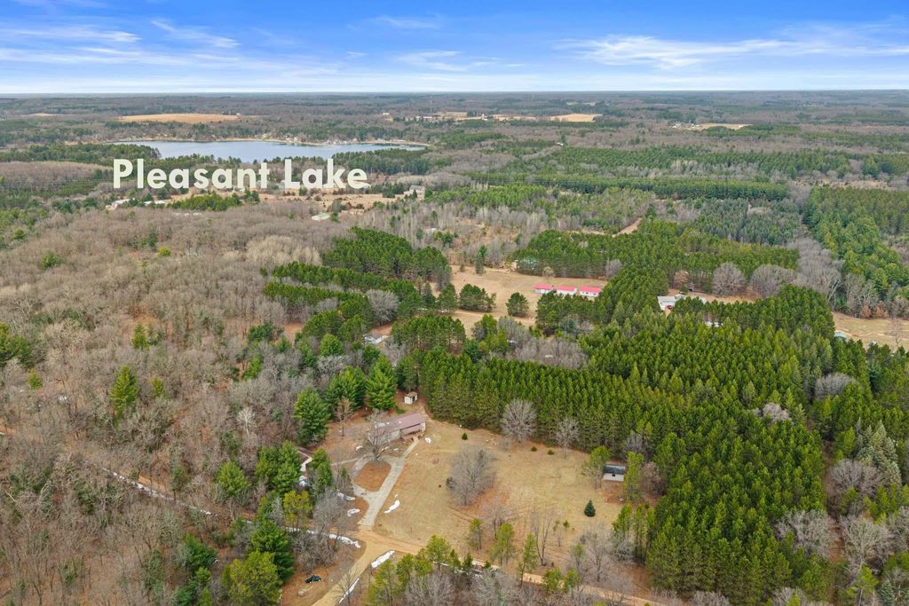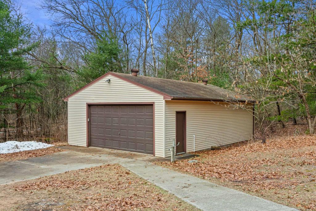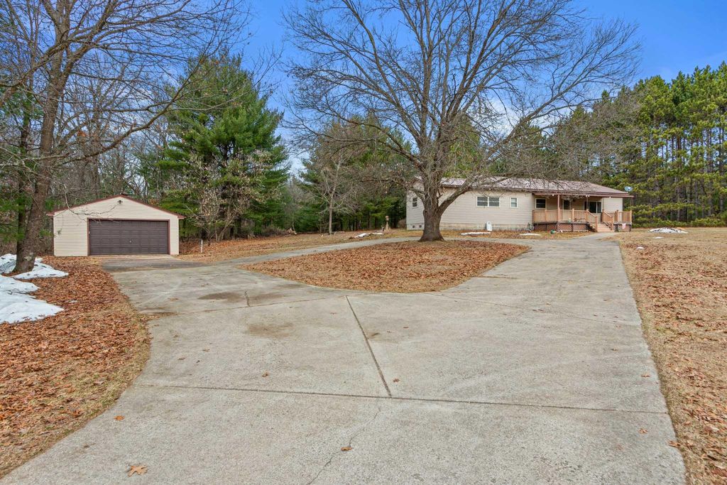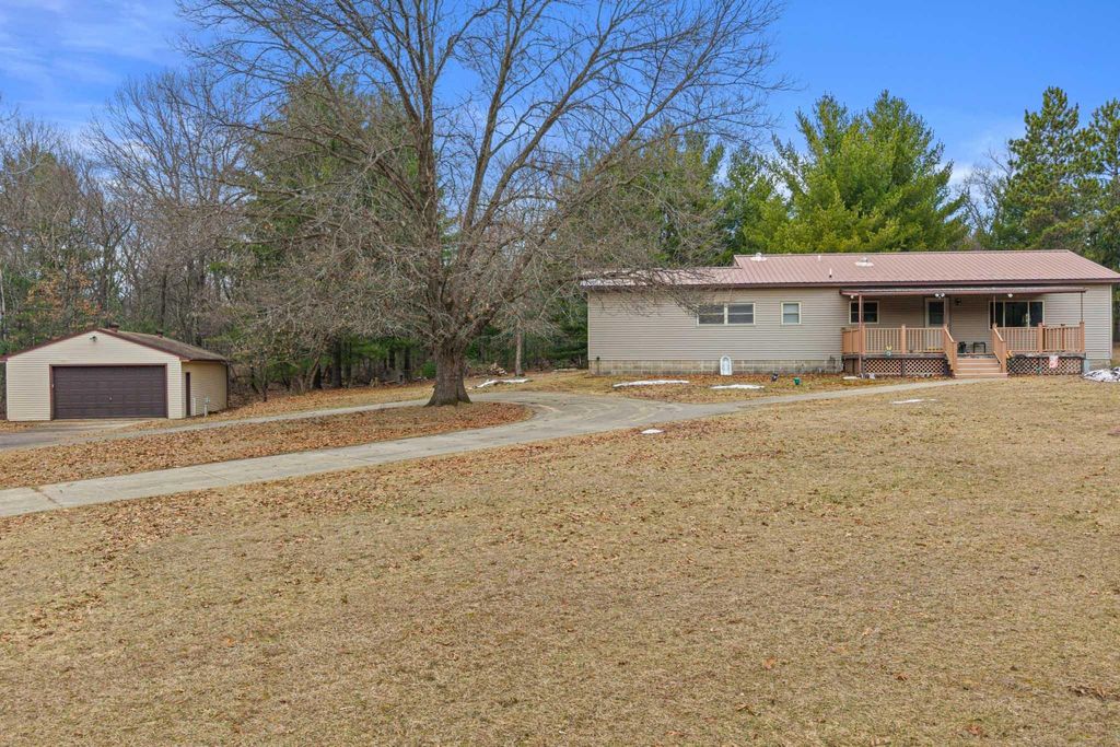 Marquette County incognito manufactured home between Pleasant Lake and Wood Lake! Attractive, well maintained, and neat as a pin on 5 acres of rural privacy! Expanded, and on a concrete foundation, so calling this hideaway a manufactured home is a stretch (it is and it ain't!). Enjoy the birds and bees overlooking the expansive yard from the 10x25' covered front porch with "trex" decking. Inside you find two living areas - one opens to the backyard concrete patio; attractive kitchen with generous cabinetry, granite tops; tile flooring, and gas range; large dining room overlooking the backyard; master suite with 1/2 bath; full main bath; laundry area (w/ shower); storage room. It gets even better. Outside you'll find low-maintenance vinyl siding, metal roofing (on home), a 24x36 detached garage; concrete turn-around drive; 16x20 shed/garage with concrete floor; 8x16 utility shed. 5 acres of the Great Outdoors, a very nicely done home, and plenty of storage for all those toys. Perfect!