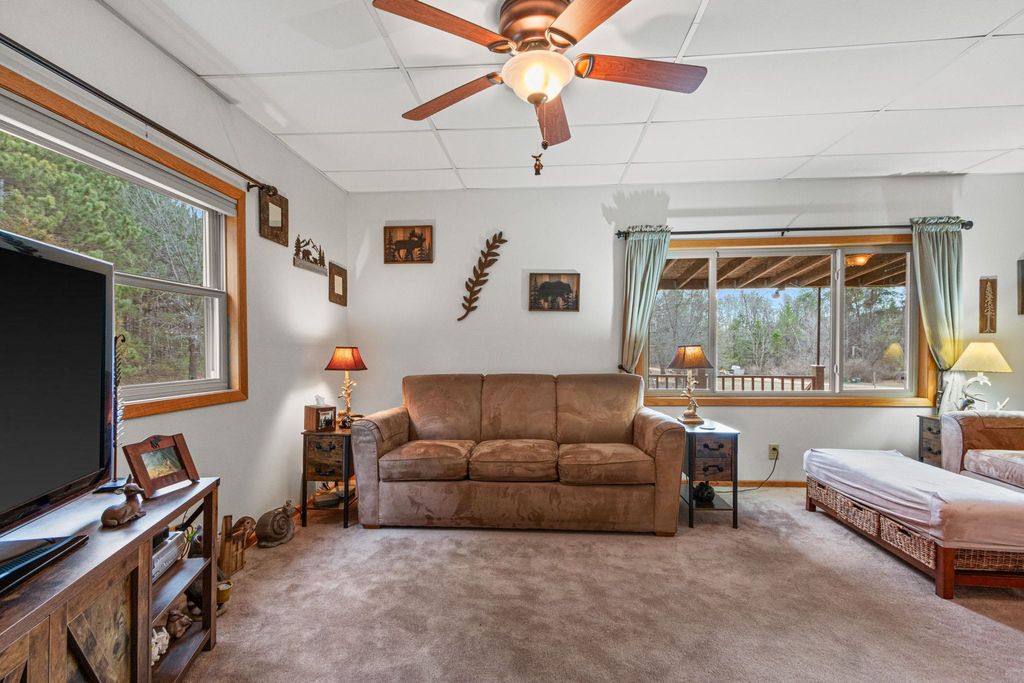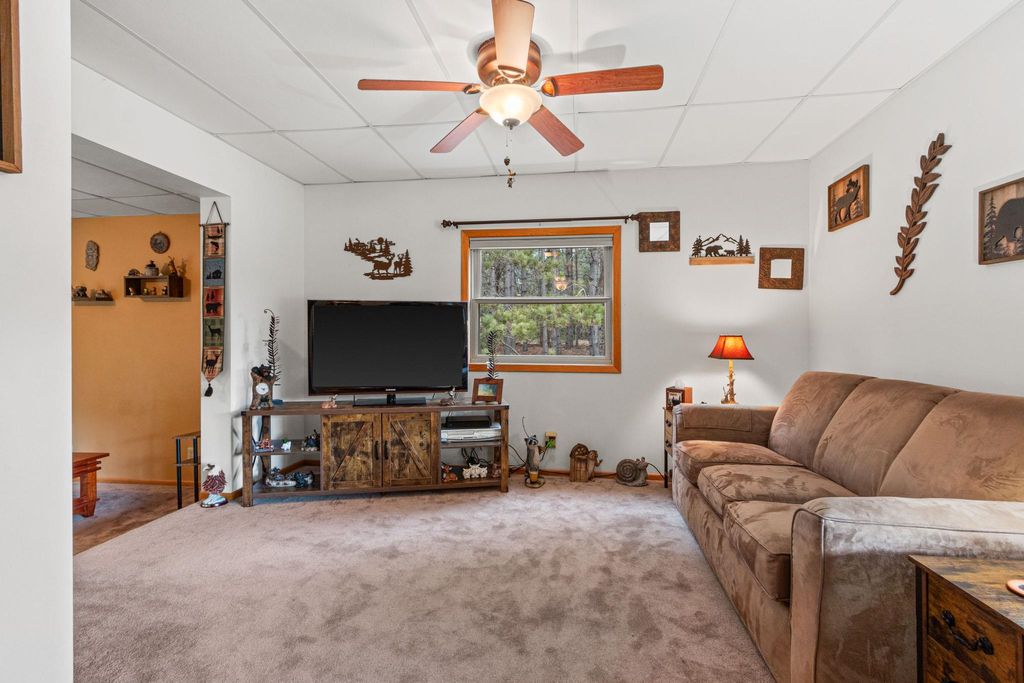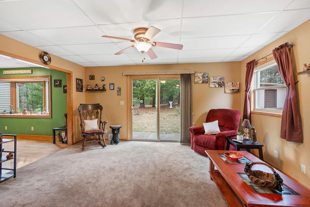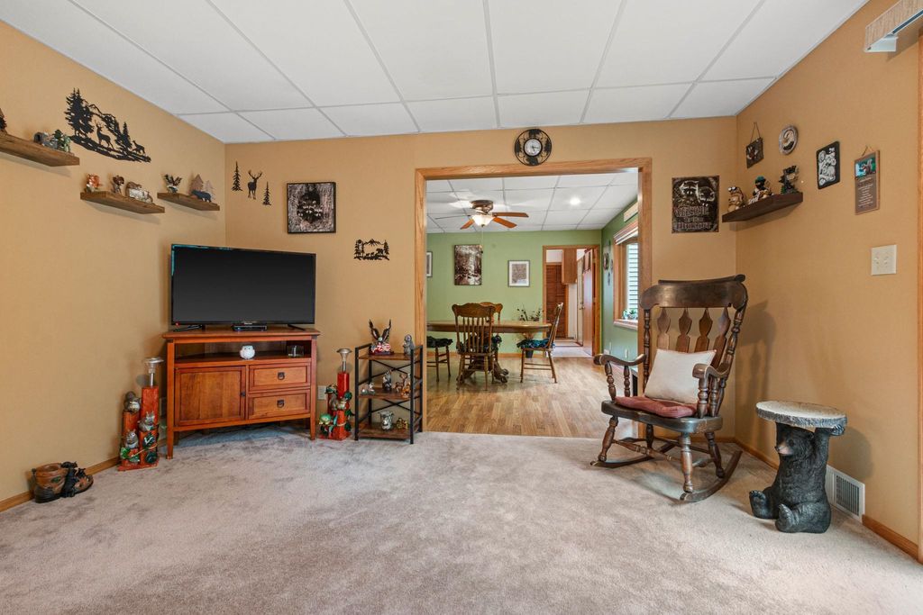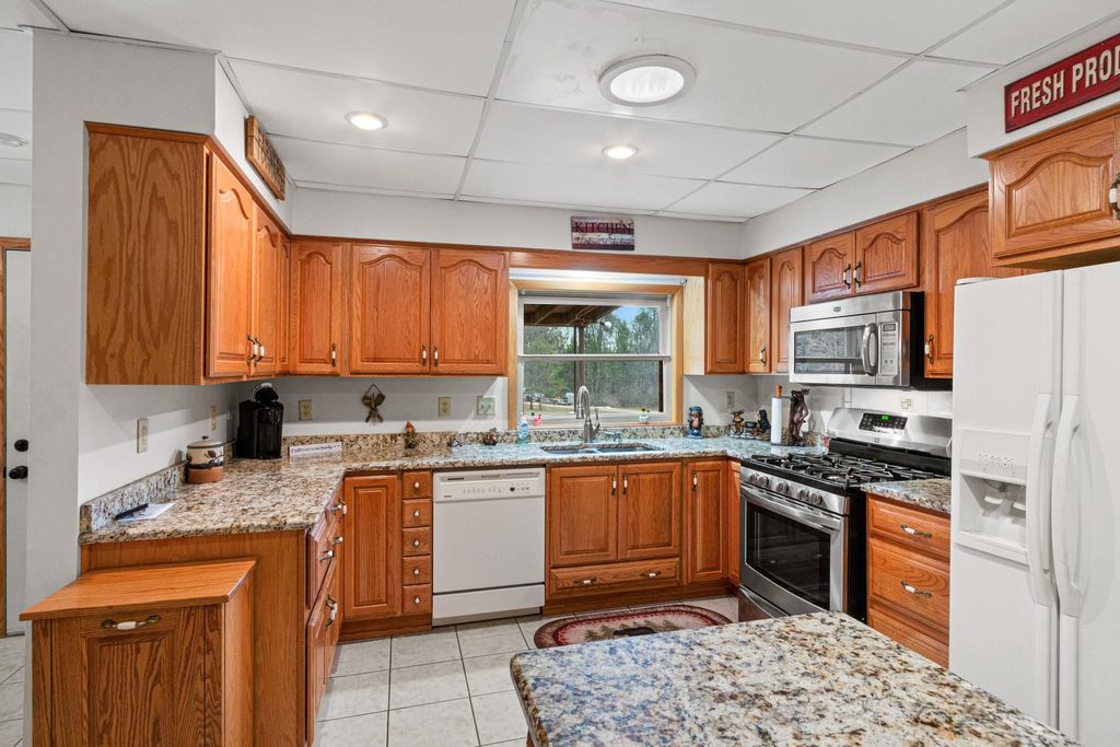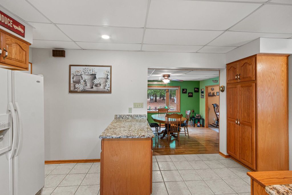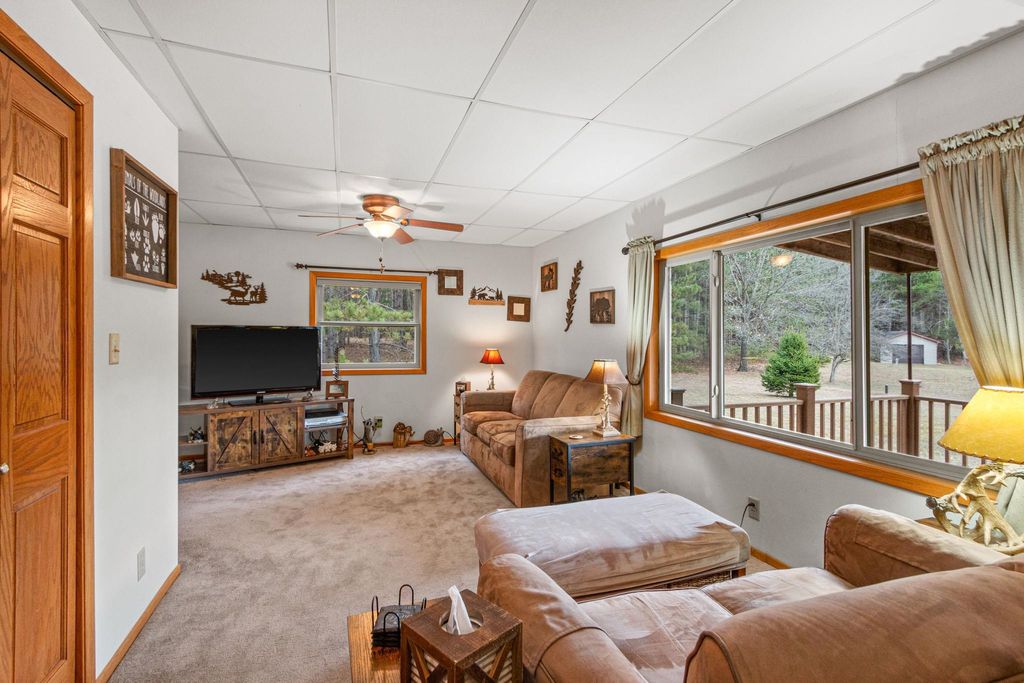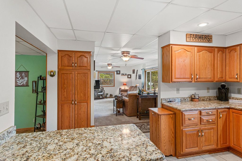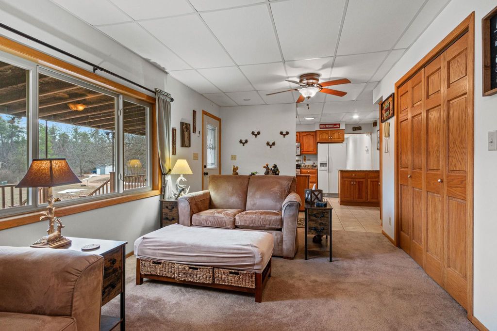 Marquette County incognito manufactured home between Pleasant Lake and Wood Lake! Attractive, well maintained, and neat as a pin on 5 acres of rural privacy! Expanded, and on a concrete foundation, so calling this hideaway a manufactured home is a stretch (it is and it ain't!). Enjoy the birds and bees overlooking the expansive yard from the 10x25' covered front porch with "trex" decking. Inside you find two living areas - one opens to the backyard concrete patio; attractive kitchen with generous cabinetry, granite tops; tile flooring, and gas range; large dining room overlooking the backyard; master suite with 1/2 bath; full main bath; laundry area (w/ shower); storage room. It gets even better. Outside you'll find low-maintenance vinyl siding, metal roofing (on home), a 24x36 detached garage; concrete turn-around drive; 16x20 shed/garage with concrete floor; 8x16 utility shed. 5 acres of the Great Outdoors, a very nicely done home, and plenty of storage for all those toys. Perfect!