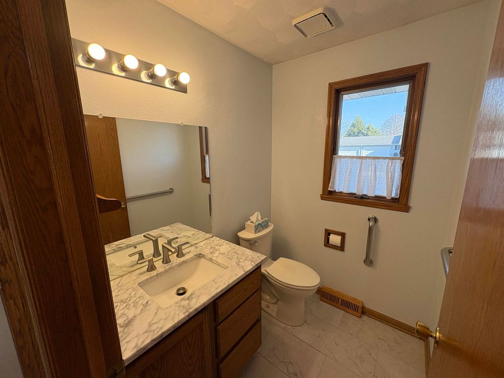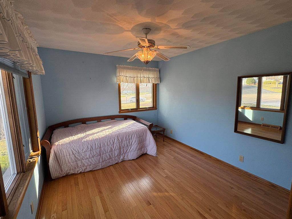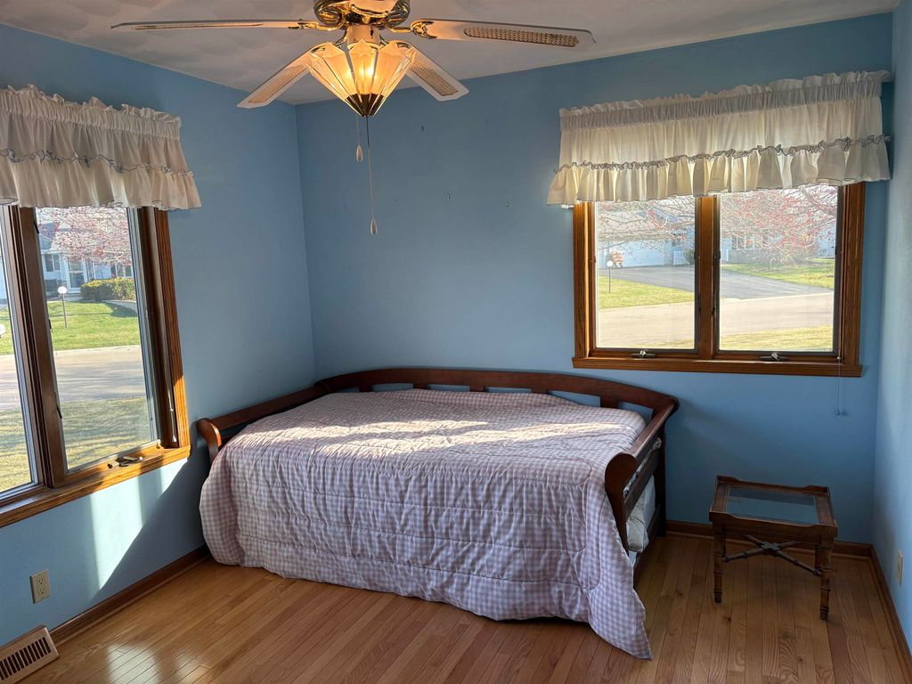 This 2 bedroom, 3 bath condo with a bonus room and additional living space in the basement offers comfort & functionality. Enjoy the bright sunroom overlooking the yard, or relax outdoors in the shade under the Sunsetter covered patio. Inside, the home features a solar sun tube in the kitchen for added natural light, along with beautiful hardwood floors throughout the bedrooms, sunroom, living and dining areas. The finished basement provides a spacious living room and bonus room & bathroom. The home had drain tile installed in the 1990s ensuring a dry basement. Recent updates include a new Carrier furnace installed in November 2025. The roof was replaced in 2016. The HOA fees of $100 per month payable every 3 months covers snow removal & lawn mowing.