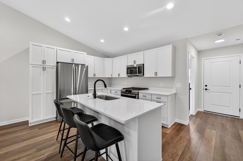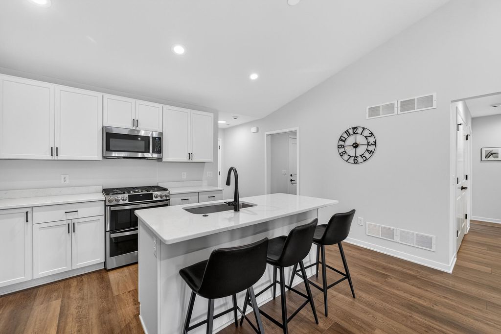 Better than new duplex loaded with upgrades throughout! This 3 bed, 2 bath ranch offers high-end finishes at every turn-from upgraded flooring to beautiful quartz countertops and everything in between (see additional docs for full list of improvements). The open-concept layout features a spacious kitchen with a gas range, plus a cozy added fireplace that elevates the living space. Thoughtfully designed and move-in ready - this one you don't want to miss! Transferrable warranties included!