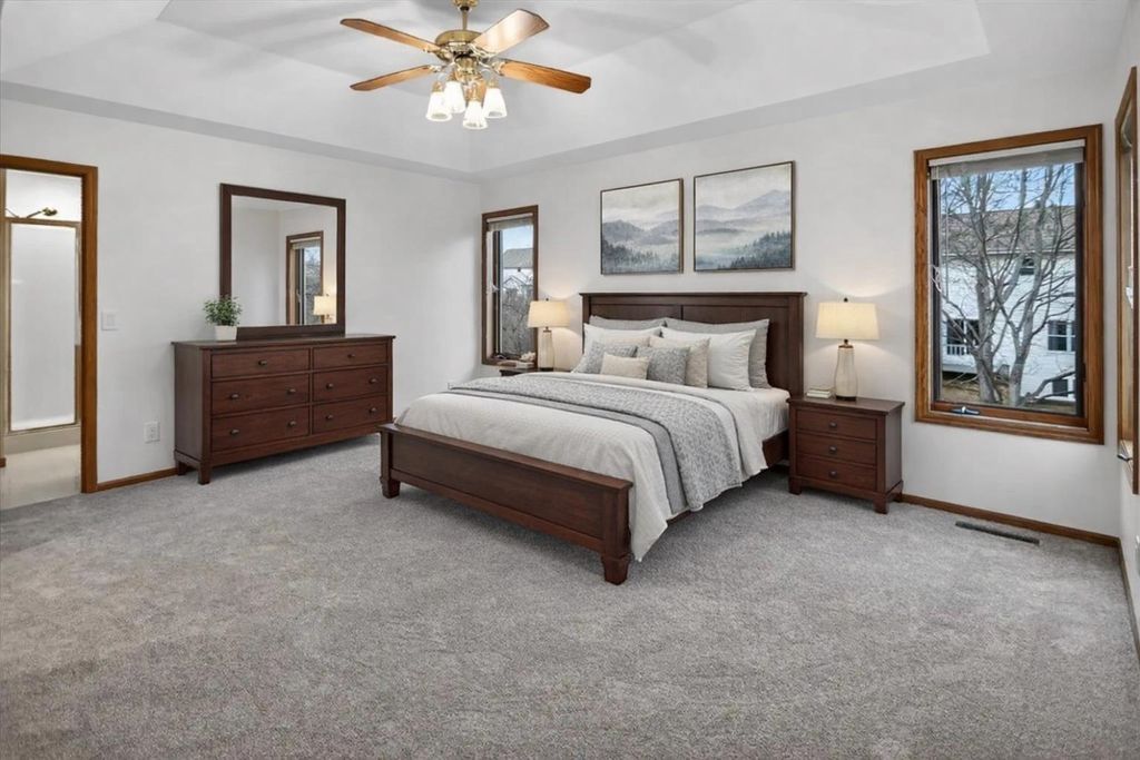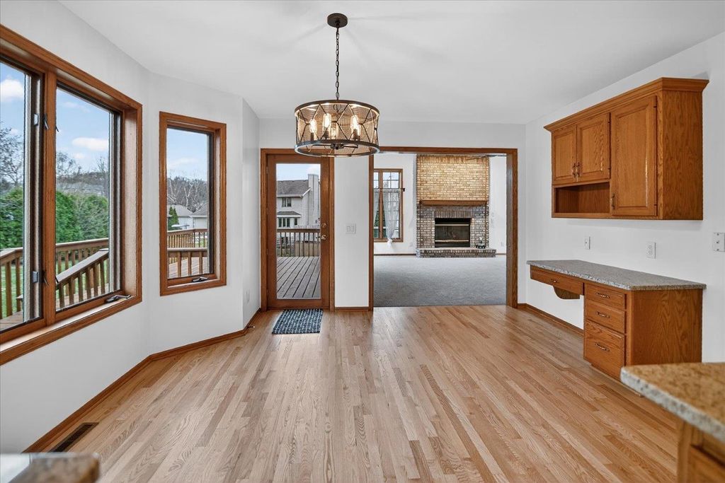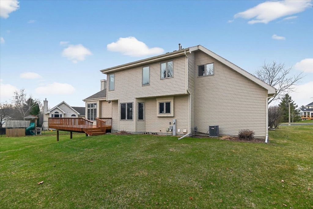 Stunning Middleton home located in the sought-after Northlake Subdivision. This home welcomes you from the moment you step inside with gorgeous oak hardwood flooring, an open foyer leading into a bright, spacious great room featuring 10' ceilings, oversized windows, and a cozy brick gas fireplace.The kitchen is both inviting and functional, offering granite countertops, new stainless steel appliances, a large island perfect for everyday living and entertaining, and a generous dining area with access to an elevated deck. Fresh paint throughout, updated light fixtures, and new carpet give the home a clean, move-in-ready feel, while main-floor laundry adds everyday convenience.The spacious primary suite features a double vanity, whirlpool tub with separate shower, and a walk-in closet. This warm, well-cared-for home is in an unbeatable location on the edge of Pheasant Branch Conservancy, close to parks, Lake Mendota, and with easy access to downtown Middleton. Ready for its next chapter