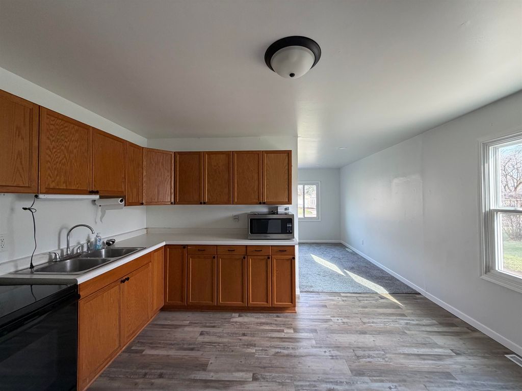 Modern updates and move in ready! Enjoy peace of mind with a brand new roof on both the house and garage (2025). The home has been extensively refreshed in 2025, featuring new windows, trim, flooring, some electrical and fresh interior and exterior paint throughout. The fenced in backyard includes a storage container for extra space such as mowers and lawn equipment. An oversized one car detached garage with a new opener provides plenty of room for parking and additional storage. Located in a desirable, welcoming neighborhood, this home is ready for you to settle in and enjoy.