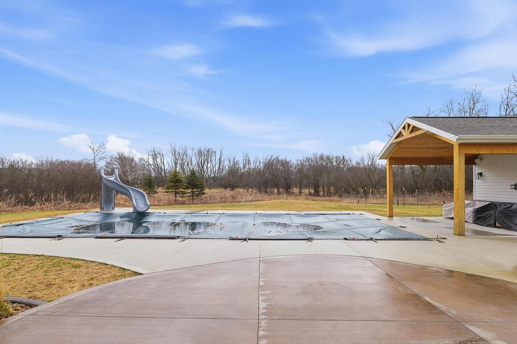 This is the one you have been waiting for! Small town living, in a quiet subdivision near the community pool and golf course. This generous sized home features 4 bedrooms and 3 full baths. An open floor plan on the main level which is suitable for entertaining or relaxing. The primary bedroom on the main level has a generous sized bathroom and closet. Natural light fills this room during the day. The basement is finished with another large living, bar, and play area. The fourth bedroom/office is tucked away. Enjoy the surround sound while watching movies and don't forget to stock the mini-fridge with the drinks of your choice. Step outside the home on the main level deck or from the lower patio where you will be greeted with a delighful view of nature, the pool, and hot tub! The pool shed has electricity so once the weather turns, take that t.v. out and begin watching those baseball games while soaking some time up in the sun. This one has it all! Make it yours today!