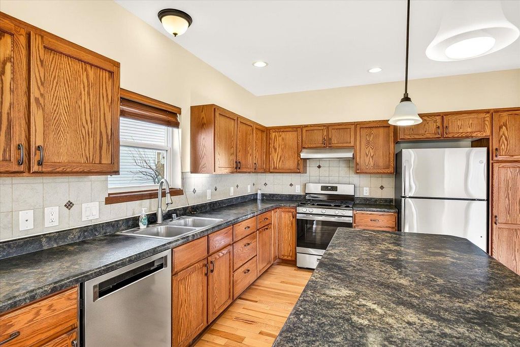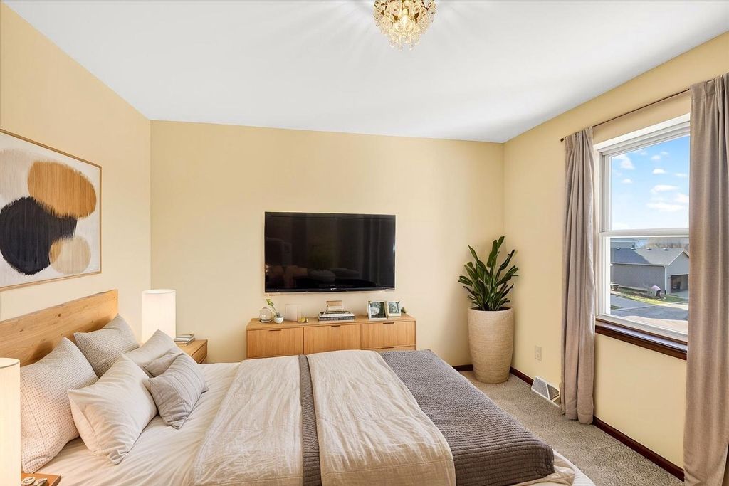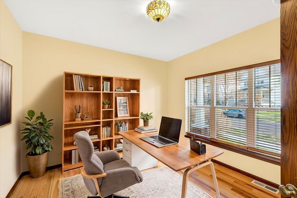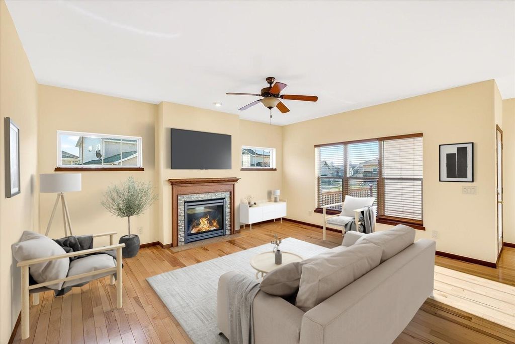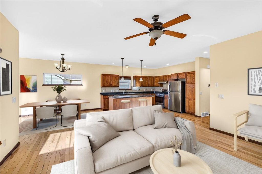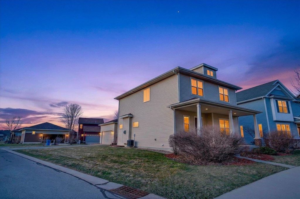Located in the highly sought-after Middleton Cross Plains Area School District, one of Wisconsin's top-rated districts, this well-maintained home blends space, comfort, and lifestyle. Nestled in Hidden Oaks, this thoughtfully designed two-story offers nearly 2,691 sq ft of finished living space, including a finished lower level ideal for entertaining. The main level features 9-foot ceilings, abundant natural light, and hardwood floors throughout. An open-concept layout connects the inviting living room with a cozy gas fireplace to a well-appointed kitchen with stainless steel appliances, a large island, and walk-in pantry. A flexible front room serves as an office, playroom, or optional fifth bedroom. Upstairs, the spacious primary suite includes a walk-in closet and private bath, with additional bedrooms offering comfort for family or guests. The finished lower level adds a home theater with surround sound, rec space, and full bath, all near parks, trails, and downtown Middleton.