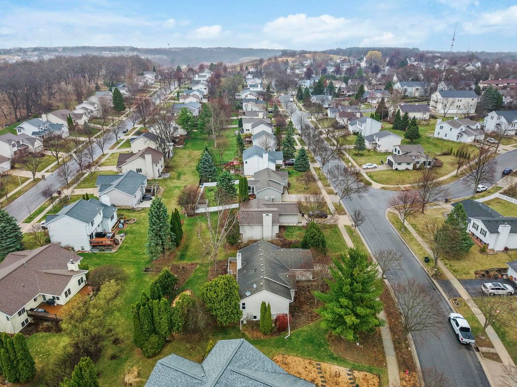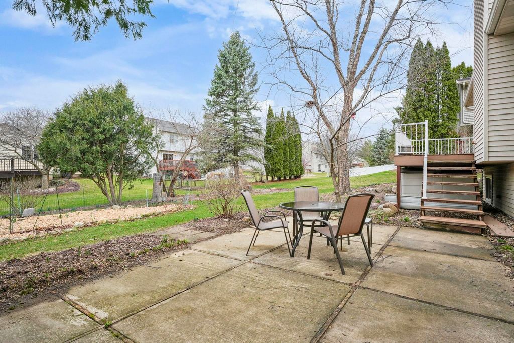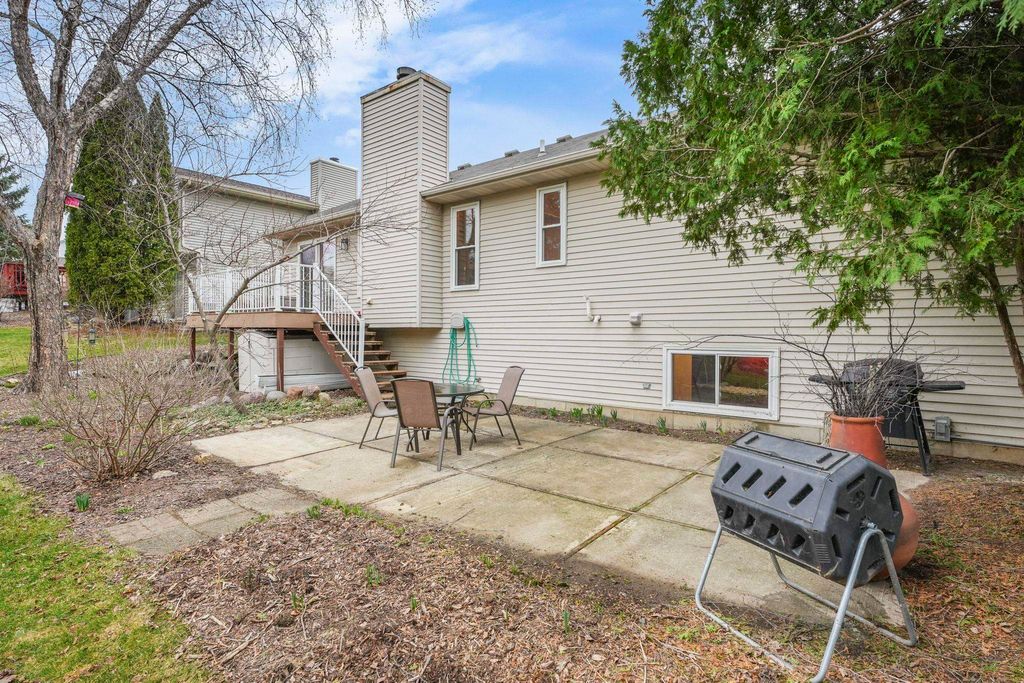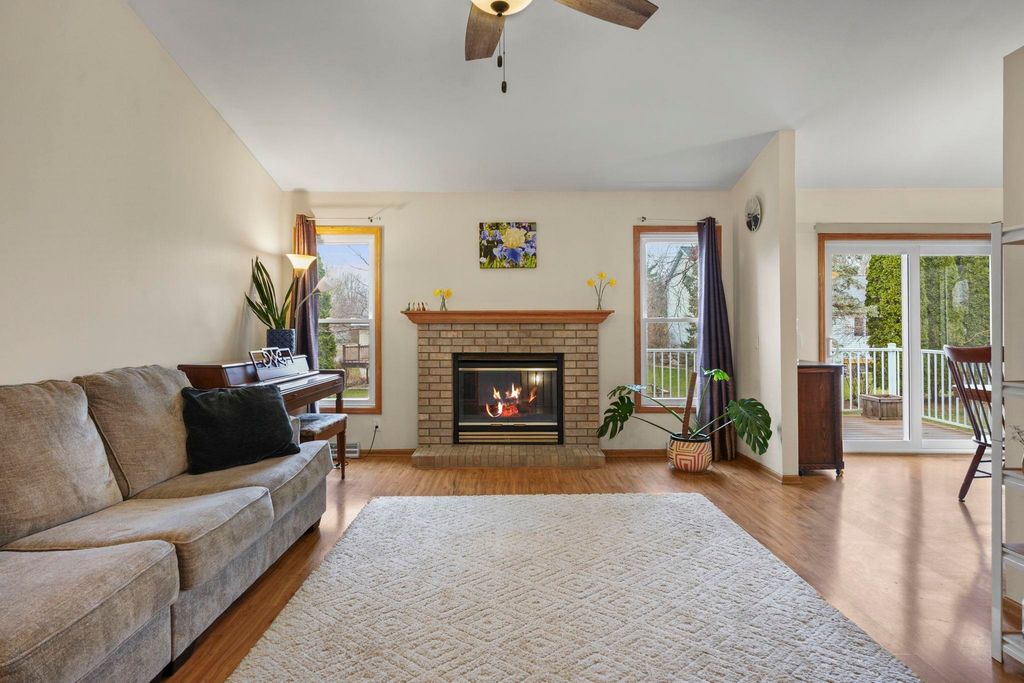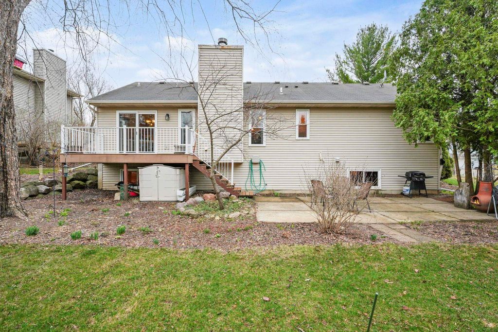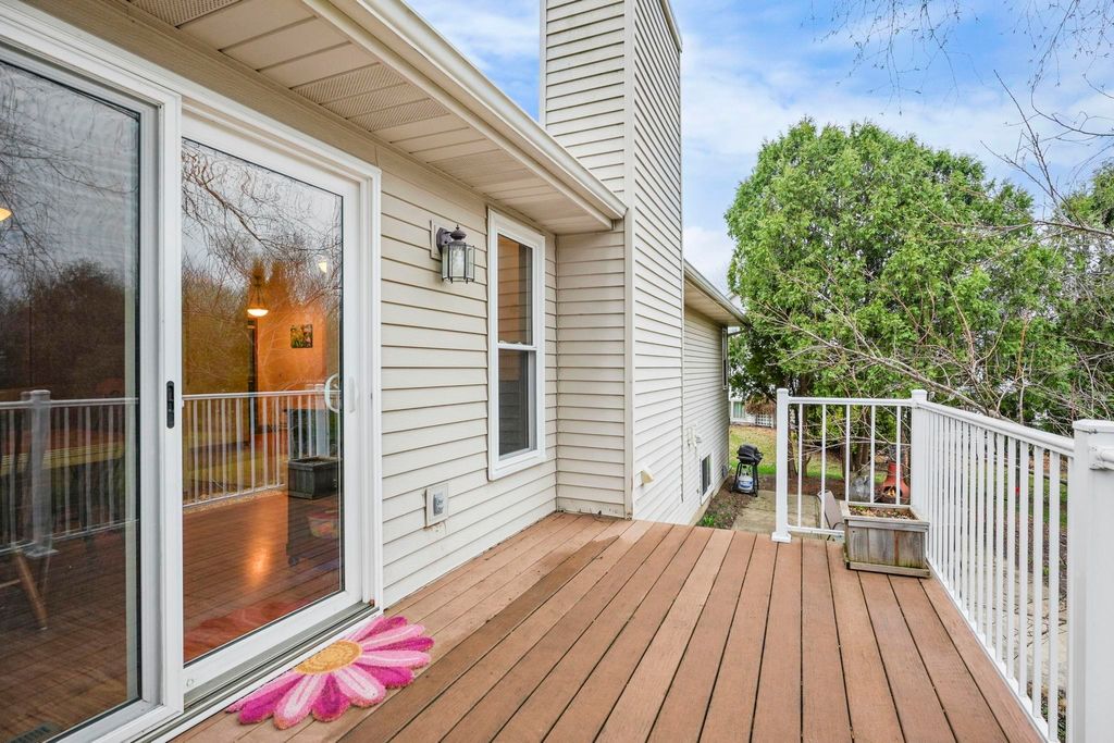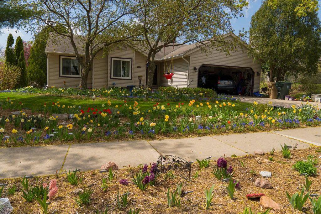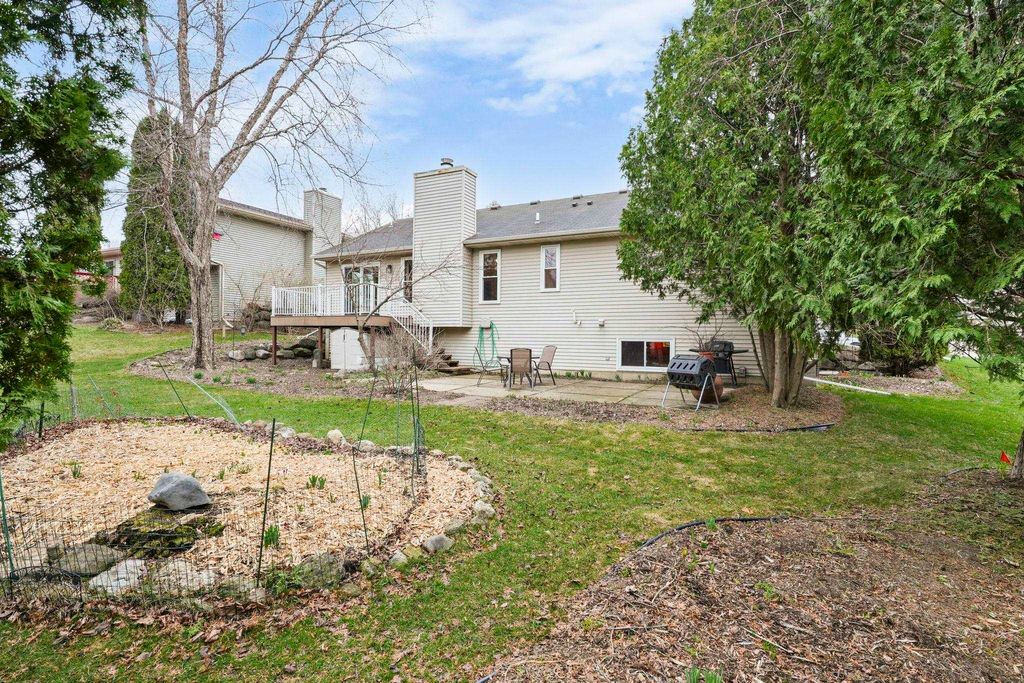 Bright Westhaven Trails Ranch with tons of updates! Step into the open main level w/ vaulted ceilings & wood burning fireplace, & see how the new windows (2020) bring in so much natural light! Large kitchen w/ tons of cabinets & ample dining area walk out to the new composite deck (2021), perfect for grilling or sipping coffee. Large primary bedroom, big enough for a king sized bed plus extra space, features an ensuite bathroom with a new stone countertop, faucet, light fixture, & a generous walk-in closet. Enjoy main level laundry for convenience (W/D 2021). Expansive lower level features a huge family room, second kitchen (w/o stove) great for watching Badger games or multigenerational living, & a 4th bedroom w/ tons of large windows, and 3rd full bathroom. Awesome location close to Epic, grocery stores, Target, etc. Beautiful perennial gardens created professionally are about to burst with blooms! Have peace of mind with more updates: furnace (2020) and water softener (2017).
