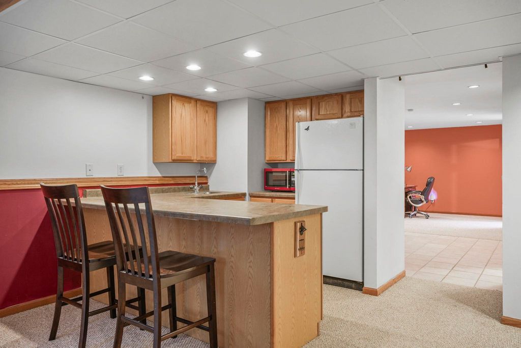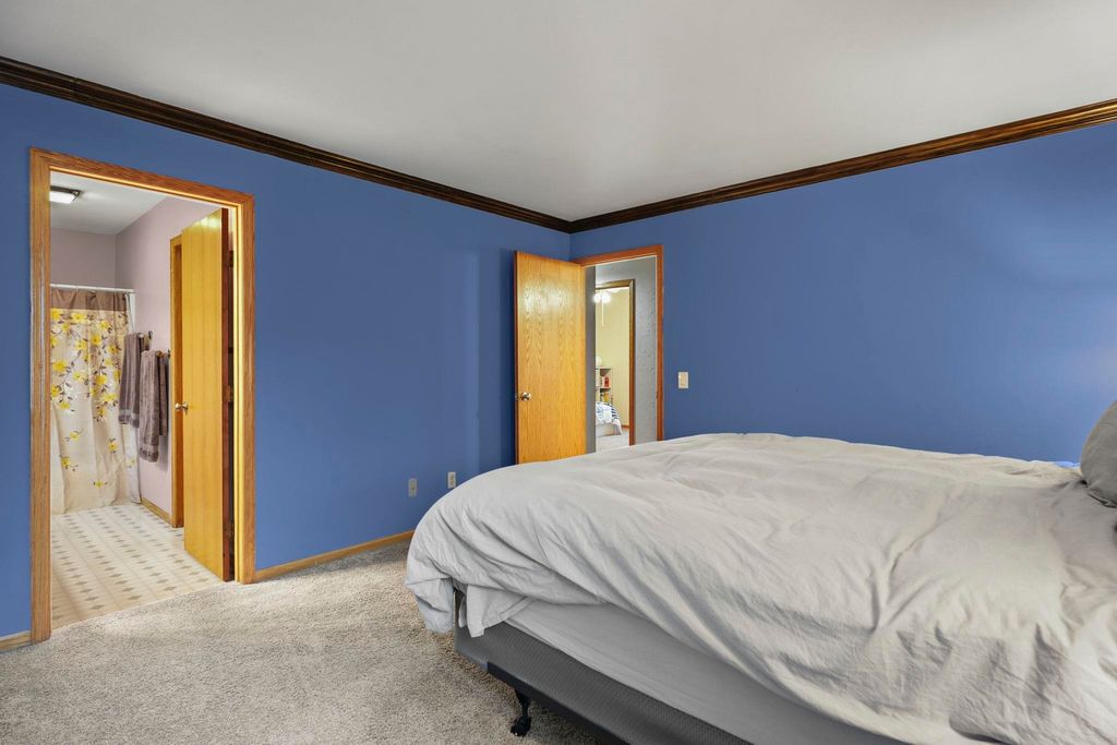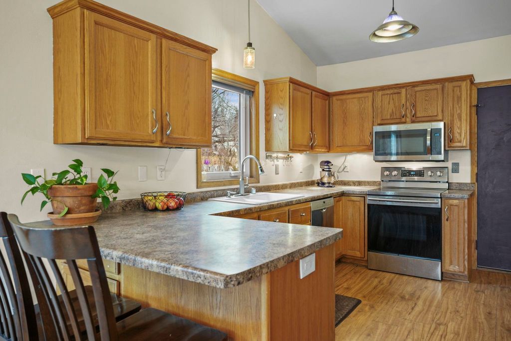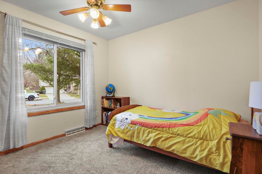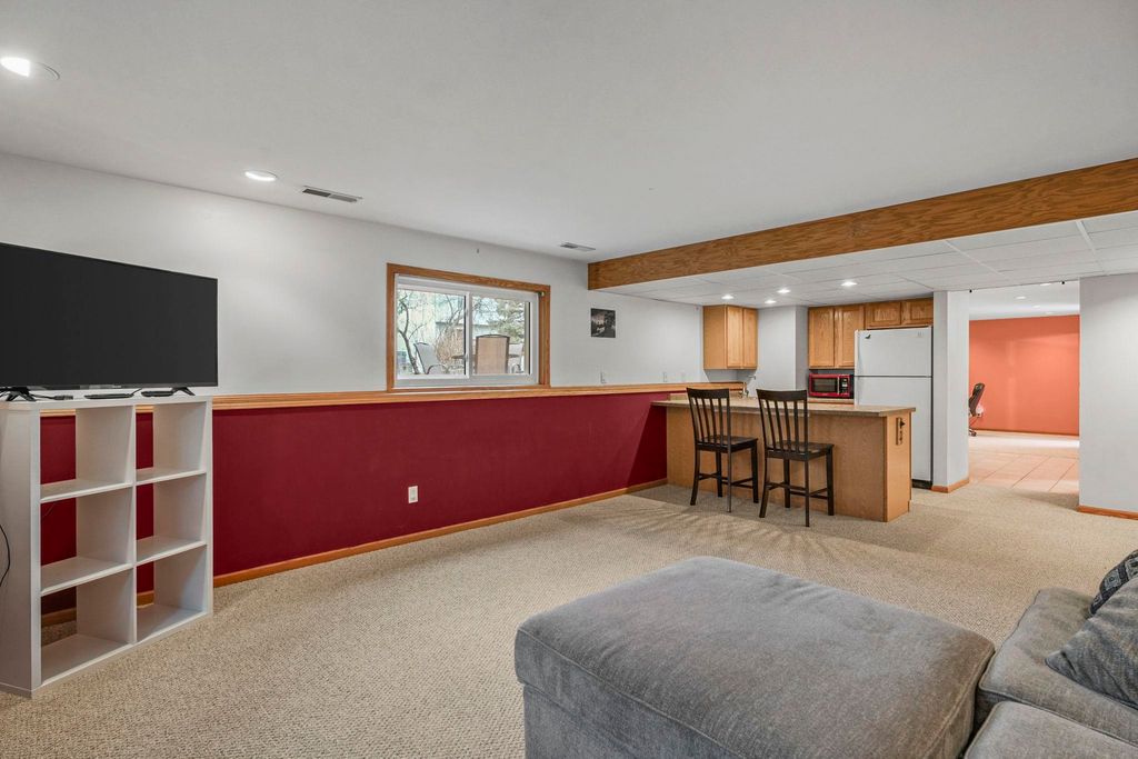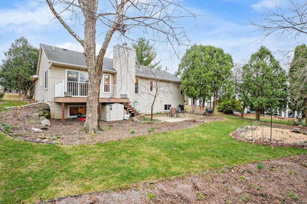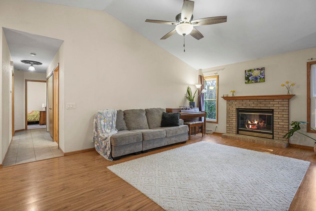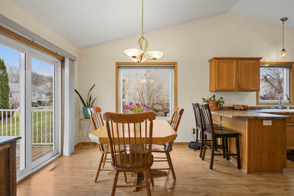 Bright Westhaven Trails Ranch with tons of updates! Step into the open main level w/ vaulted ceilings & wood burning fireplace, & see how the new windows (2020) bring in so much natural light! Large kitchen w/ tons of cabinets & ample dining area walk out to the new composite deck (2021), perfect for grilling or sipping coffee. Large primary bedroom, big enough for a king sized bed plus extra space, features an ensuite bathroom with a new stone countertop, faucet, light fixture, & a generous walk-in closet. Enjoy main level laundry for convenience (W/D 2021). Expansive lower level features a huge family room, second kitchen (w/o stove) great for watching Badger games or multigenerational living, & a 4th bedroom w/ tons of large windows, and 3rd full bathroom. Awesome location close to Epic, grocery stores, Target, etc. Beautiful perennial gardens created professionally are about to burst with blooms! Have peace of mind with more updates: furnace (2020) and water softener (2017).