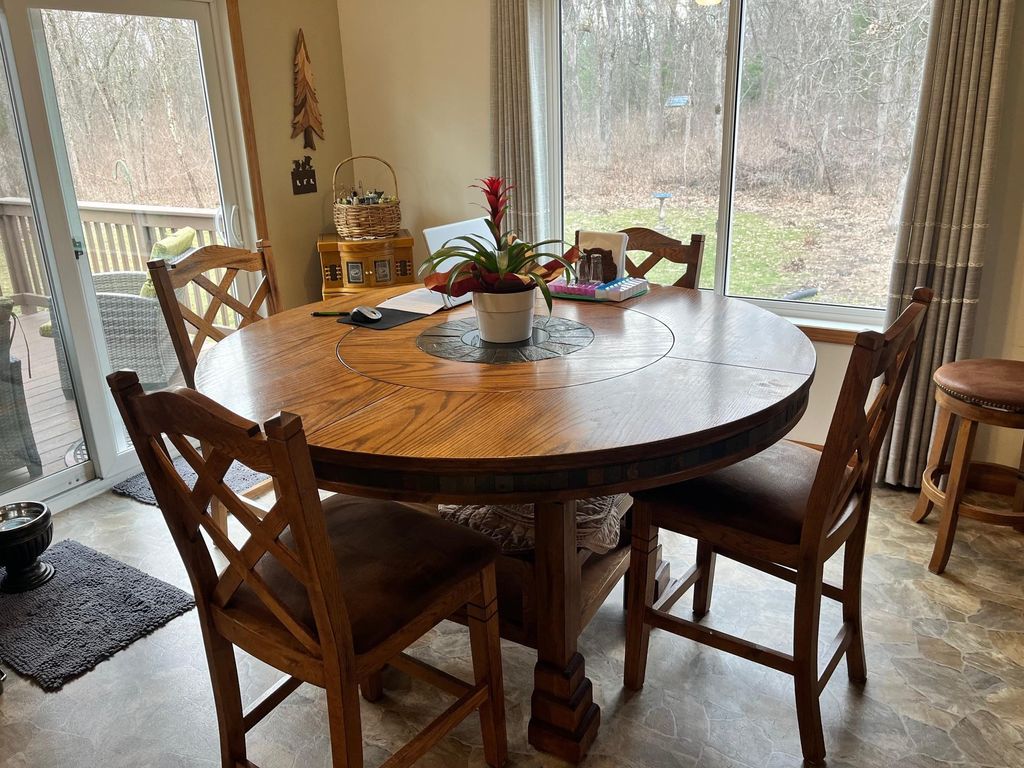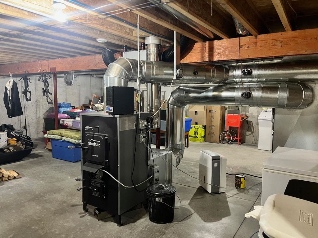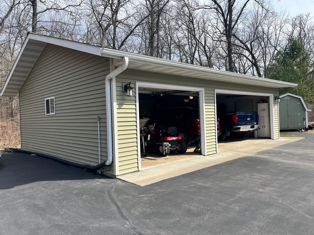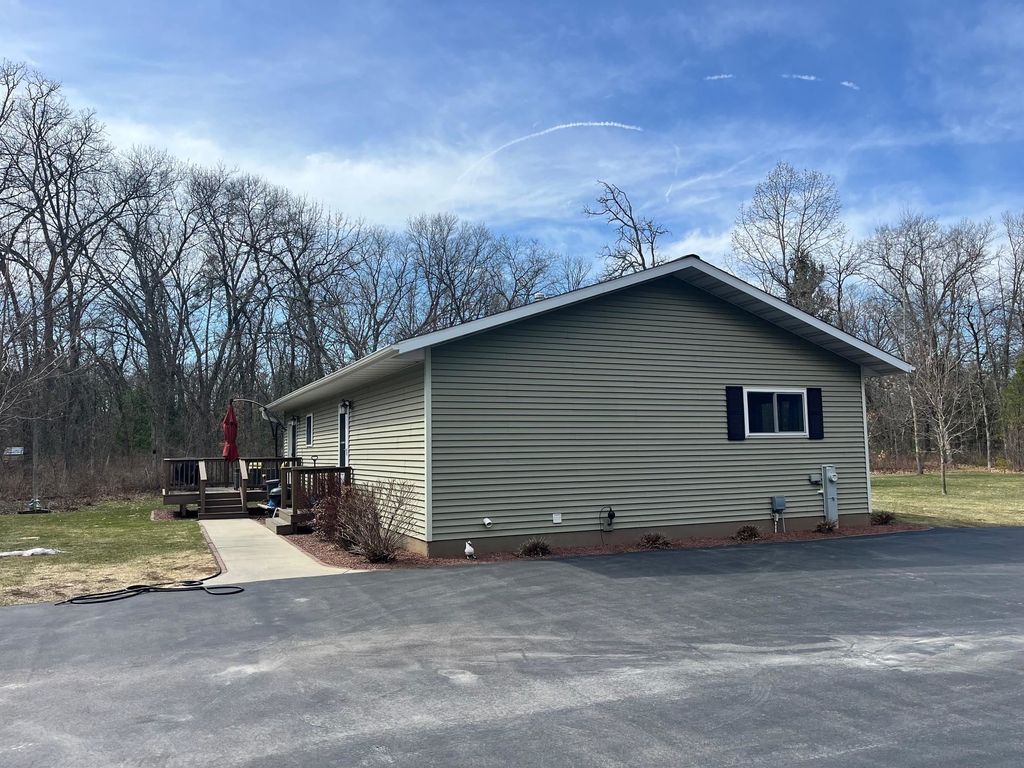 Beautiful Stick Built 30' x 50' Ranch Home with full basement, located on a PRIVATE ROAD, built in 2015 on 6.6 wooded acres, quiet & secluded,blacktop driveway, 26'x32' 3 Car Garage with 9' walls ,insulated & Heated plus CA. Interior of Home has Open 17'x17 Living Room,Kitchen/Dining Area with patio door to 12x12 Deck,big windows overlooking woods, 1st floor laundry, 14x17 Main Bedroom Plus Full Bath & Walk in Closet, 2nd Bedroom is large at 12 x 14' ,& 2nd full bath! Full Basement with poured cement walls, has top of the line heating system with wood furnace backup,back up on demand hot water heater,whole house water filter,hi-low ducted returns in every room, & much more. 8x16 Storage Building, electric pedestal hookup for camper. Home has 2' overhangs, oversized gutters & more