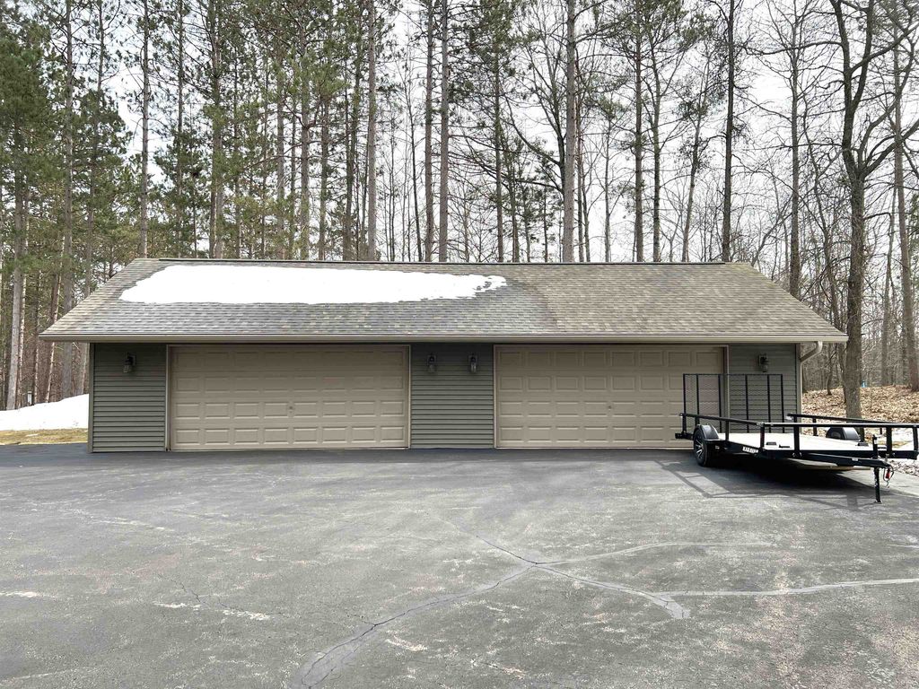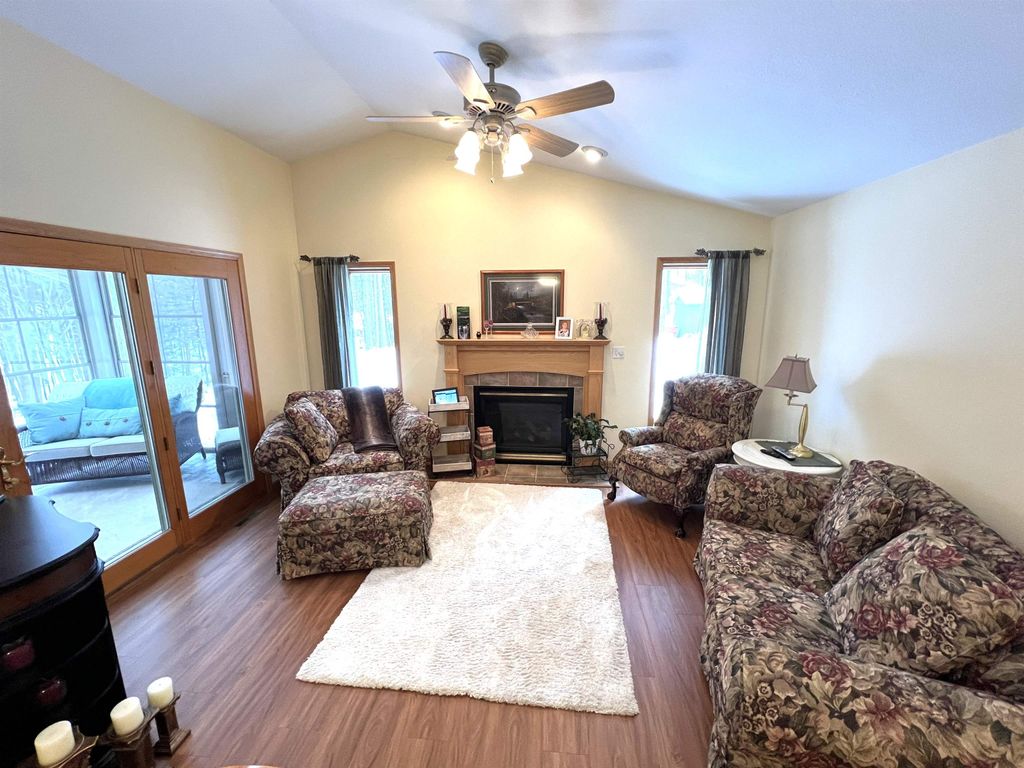 Meticulously maintained 3-bedroom, 3.5-bathroom country home set on 1.82 wooded acres just minutes from town. This quality-built tri-level design with a fully finished fourth-level basement offers exceptional space and comfort throughout. Enjoy two cozy gas fireplaces, a bright 3-season room, and tasteful fixtures and appointments that elevate every space. The walkout lower level opens to a beautifully landscaped yard with a large back patio, perfect for relaxing or entertaining. Additional highlights include a 2-car attached insulated garage and an impressive 4-car detached garage, ideal for storage, hobbies, or extra vehicles. Paved driveway, roof replaced in 2018, and a new septic drain field installed in 2018 provide peace of mind. Located on a town road open to ATV/UTV use, this move-in ready property blends privacy, convenience, and outdoor enjoyment.