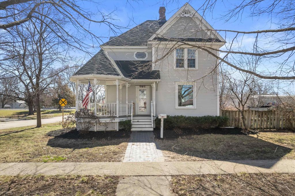 SHOWINGS BEGIN 4/8. Beautifully updated Victorian family home offering space, character, and amenities for all. Features brand new flooring and beautiful updates throughout while preserving original woodwork and bevelled glass details. The expansive eat-in kitchen boasts custom bay windows overlooking the manicured yard and in-ground pool, perfect for everyday living and entertaining. The main level includes a huge formal dining room with a sparkling chandelier, living room, family room, full bath, and convenient first-floor laundry. Upstairs you'll find four generously sized bedrooms, a full bath, a charming library nook, and ample closet space throughout. A rare heated 4-car detached garage complete this exceptional property. Sellers are including a top-tier UHP home warranty, offering peace of mind for the new homeowners. A fantastic opportunity to own a true family home filled with timeless character and modern comfort.