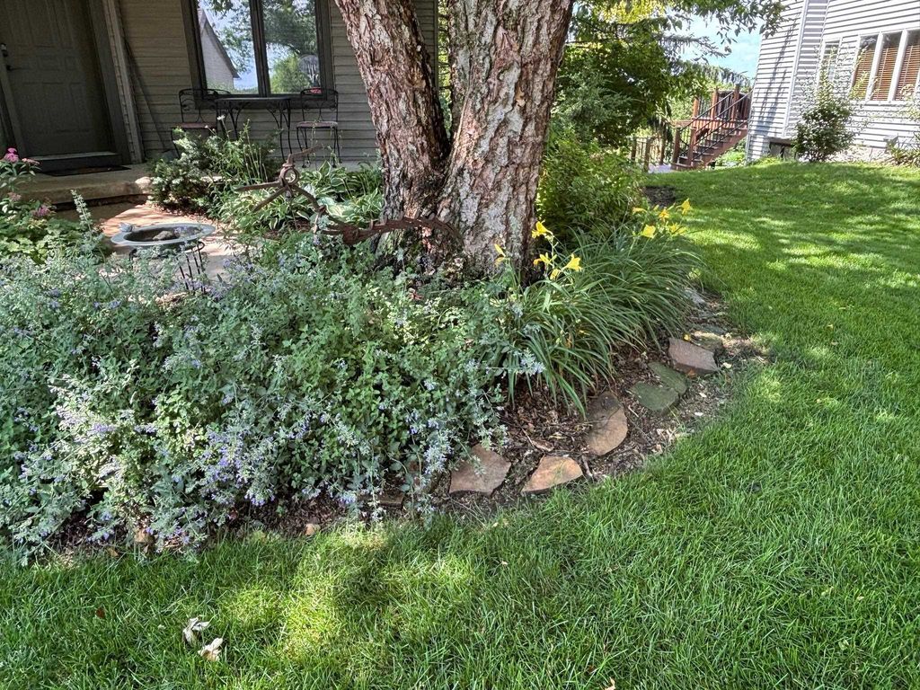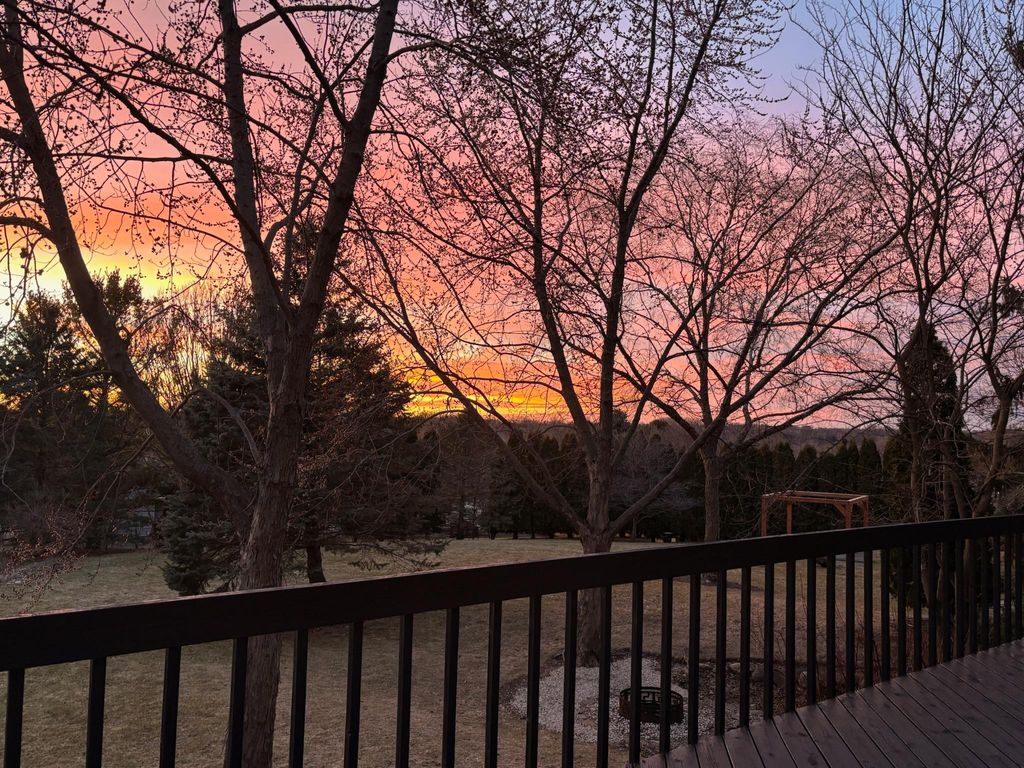 Showings begin 4/6/26. Experience your private 'country in the city' retreat on 0.51 acres within the Verona area school district! This charming home sits on a cul-de-sac, featuring vaulted ceilings, new solid surface kitchen countertops with updated cabinets and laundry; refreshed bathrooms include newer flooring, fixtures, and vanities. Enjoy breathtaking sunsets from your deck or patio, or gather around the fire-pit amidst the beautiful landscaping and gorgeous gardens, including a 24x36 vegetable garden. Inside, natural light falls on every space, while a cozy wood-burning fireplace in the family room offers warmth and comfort. Conveniently located near shopping, bus lines, and public parks. This exceptional home awaits you! Welcome home!