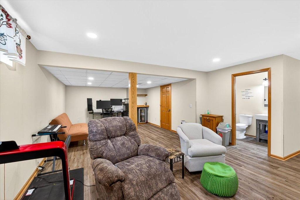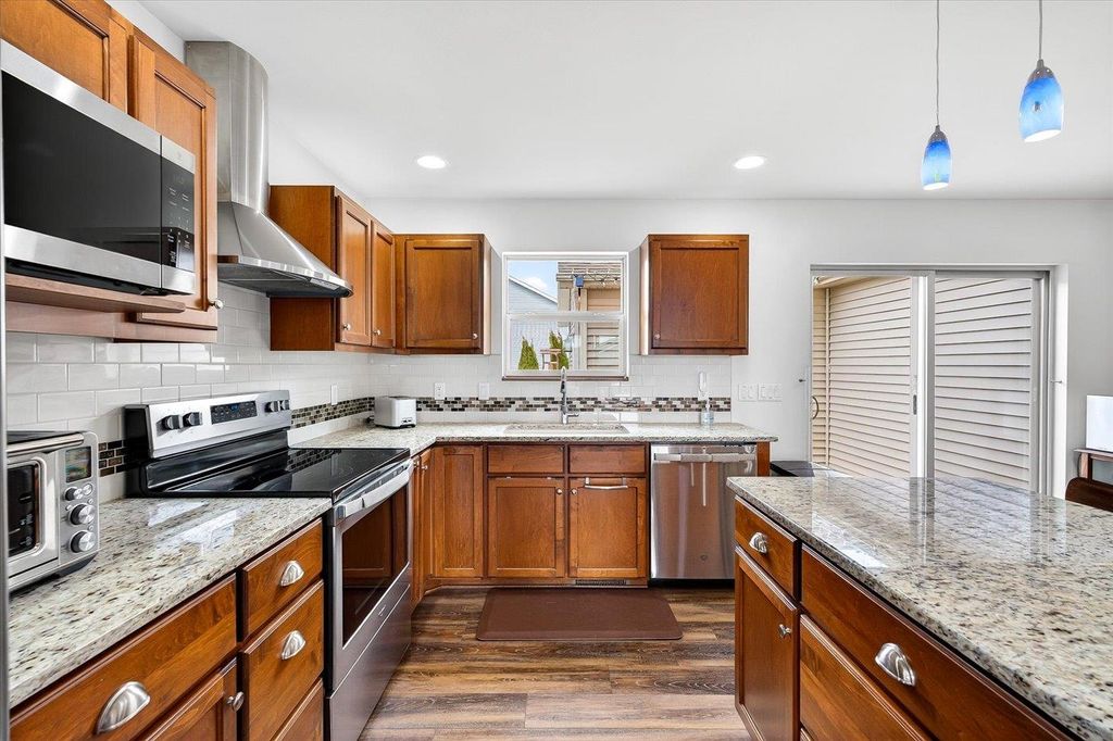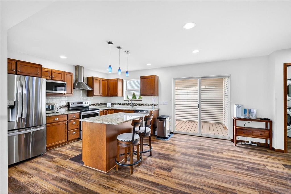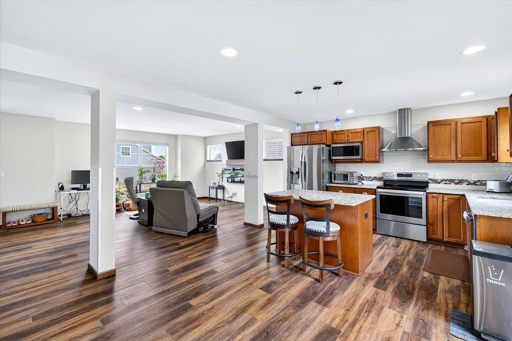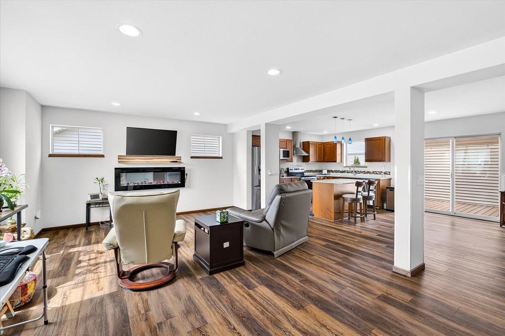 Charming 3 bedroom, 2.5 bath home w/open concept layout in the highly desirable Acacia Ridge neighborhood! Finished basement features mini bar & additional half bath - perfect for entertaining family/friends. Kitchen boasts beautiful cabinetry, granite countertops, central island, pantry, SS appliances, along with a seamless walk-out to the backyard. Enjoy outdoor living in the fenced yard w/composite deck & brick patio - ideal for relaxing w/morning coffee or afternoon wine. Spacious primary suite w/walk-in closet & separate shower. Additional highlights include main level laundry/mudroom, spacious living room with lovely electric fireplace, composiite deck, brick patio, beautiful landscaping, and more. Must see!