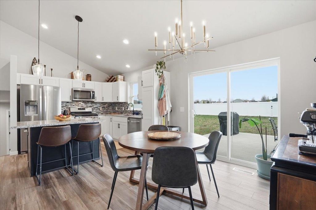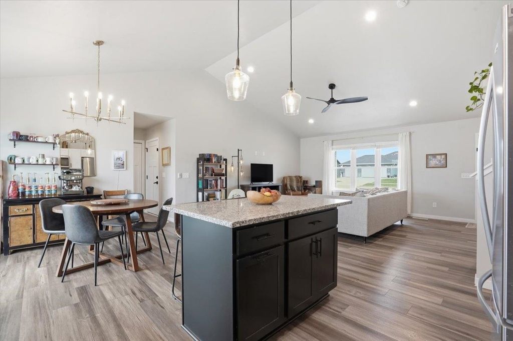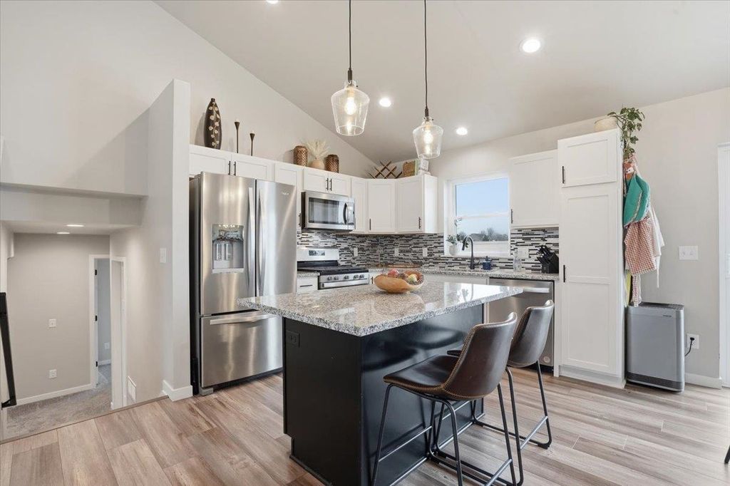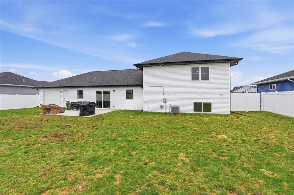 Showings begin 4/10. Welcome to this stunning tri level home in the sought after city of Evansville! Offering 4 bedrooms and 3.5 baths, this home features an open concept design with a spacious living area, large kitchen island, modern finishes, and abundant natural light throughout. The well planned layout creates ideal separation of space while maintaining a connected feel for everyday living and entertaining. Step outside to a fully fenced backyard with a rare garage door opening directly to the yard, great for gatherings, pets, or convenient access. Located just steps from Evansville's new water park and within walking distance to baseball, softball, and soccer fields. The newly remodeled West Side Park includes an outdoor basketball and pickleball court along with a playground. Move in ready and perfectly positioned near parks, recreation, schools, and local amenities. A rare opportunity in a prime location!