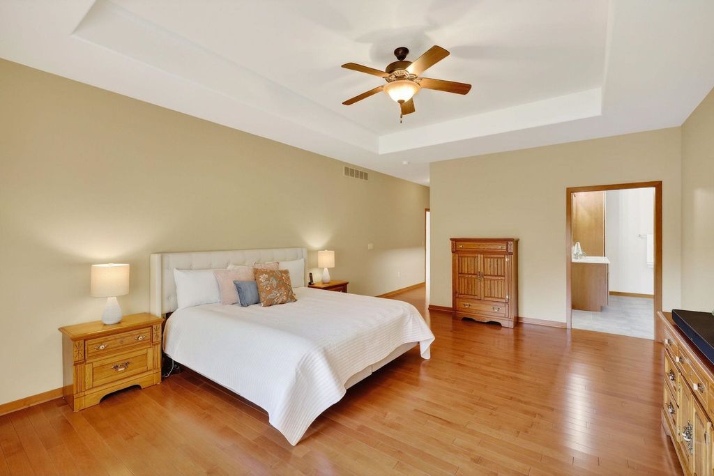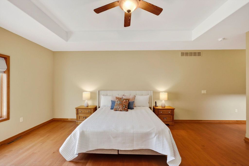 Spectacular, FULLY ACCESSIBLE ranch home custom built by North Design Build. Thoughtfully designed & impeccably constructed, this elegant home blends style, comfort, & exceptional craftsmanship. Natural light pours into the open floor plan featuring a generous gourmet kitchen w/stainless appliances, induction cooktop, granite counters, & flexible dining space that flows into a warm living area w/ gas fireplace & hardwood floors. Expansive windows & oversized sliding doors open to a beautiful deck overlooking a peaceful pond. Spacious primary suite offers a luxurious zero-threshold tile shower, oversized walk-in closet w/ custom system.Enjoy a well-designed main floor laundry room, private guest suite & dedicated office (3rd bed). Exp LL offers endless possibilities for future finishing or storage. Zero-entry access from both the garage and front door. Extra space in garage.Every detail has been carefully considered to deliver accessible living without sacrificing style.