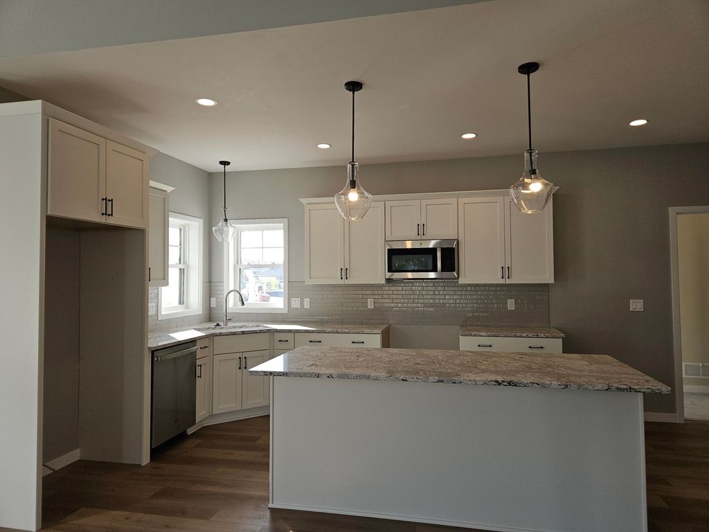 Indulge in luxury with this beautifully crafted 2576 sq ft Advantage Homes Condo. Boasting 14' ceiling in the great room, 3 bedrooms and 3 baths, the kitchen is a culinary delight with quartz countertops, a tiled backsplash, and soft-close maple cabinets. The owner's suite features tiled walk-in shower, and a spacious walk-in closet. The lower level is partially finished and has loads of storage space. This condo is a masterpiece of design, blending style and comfort seamlessly.