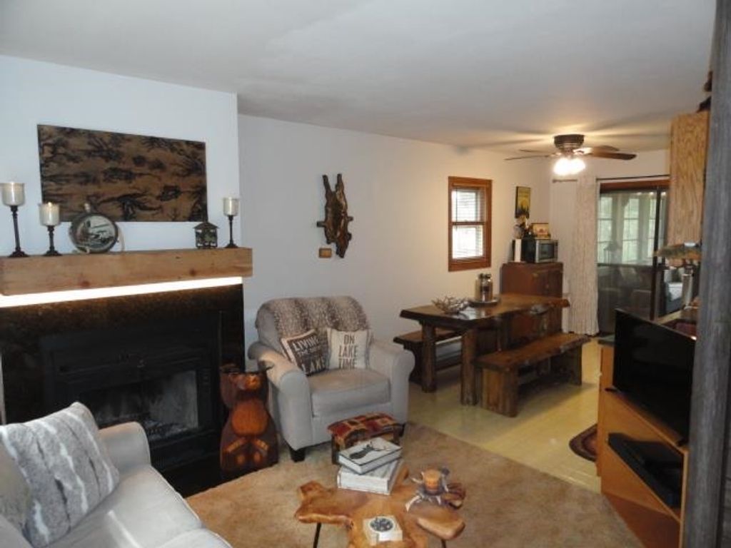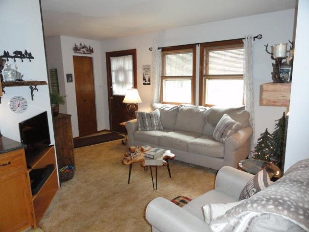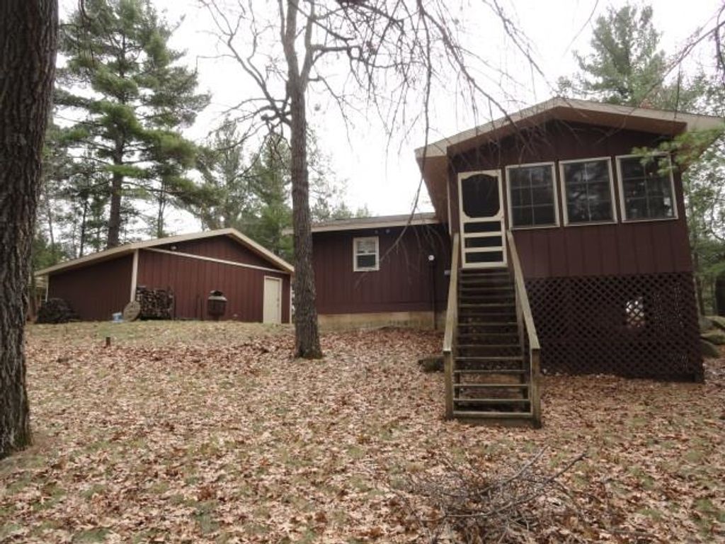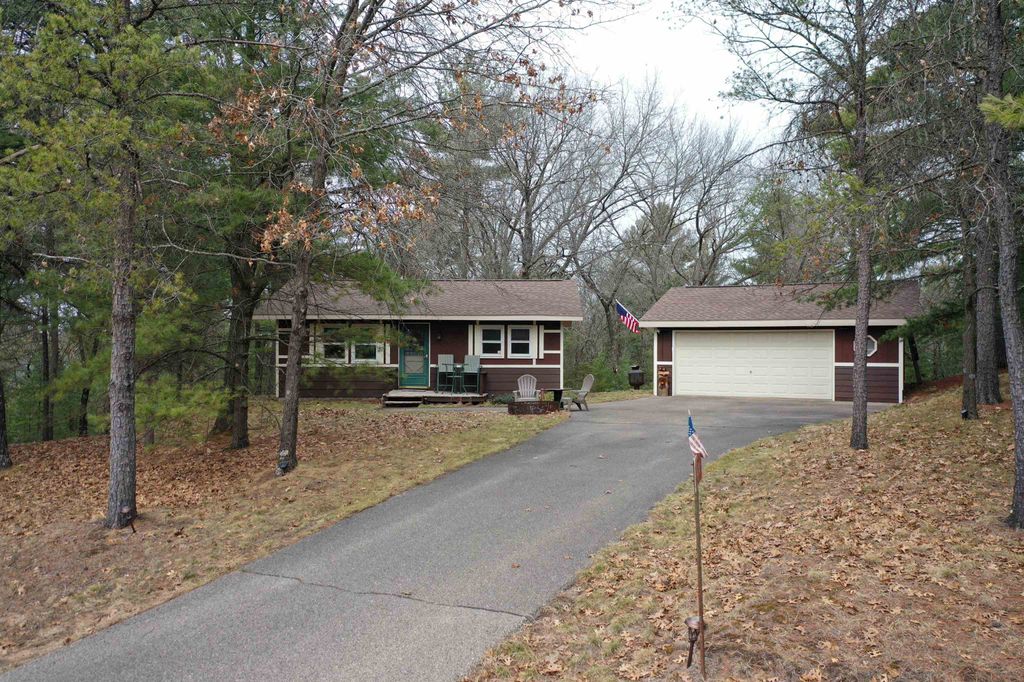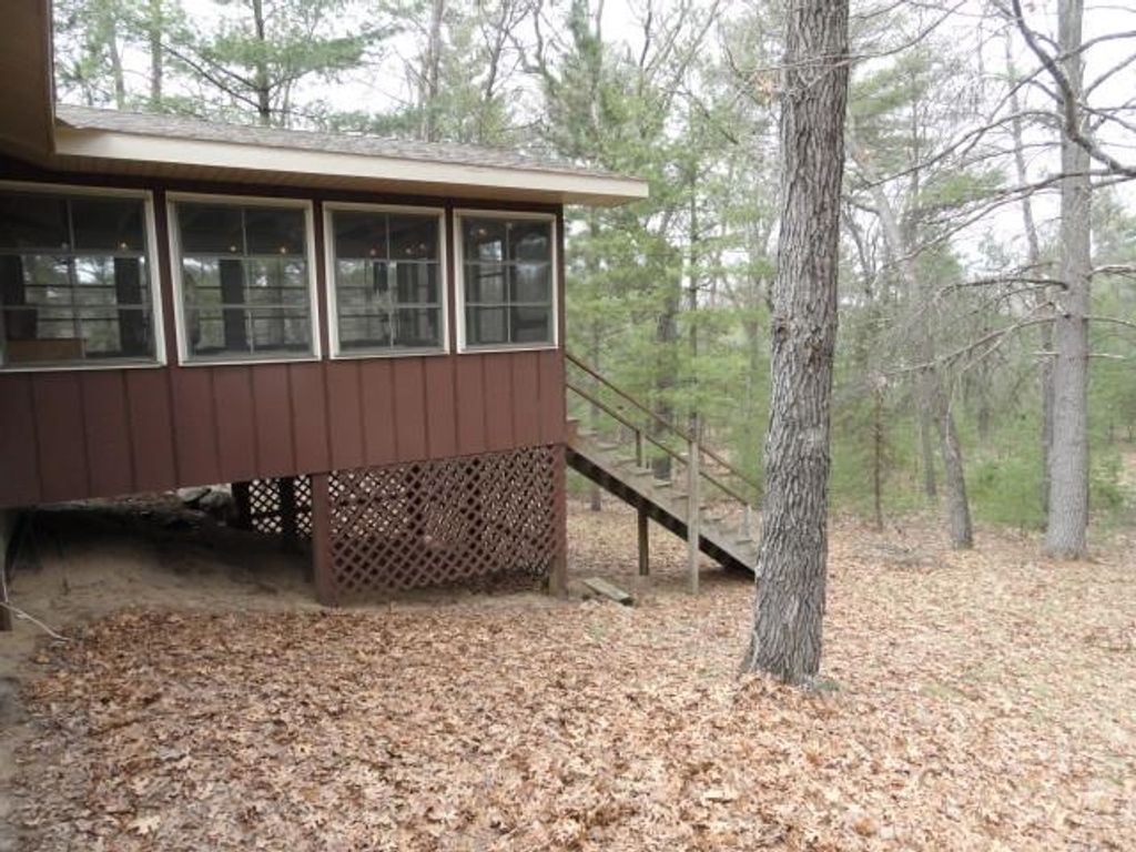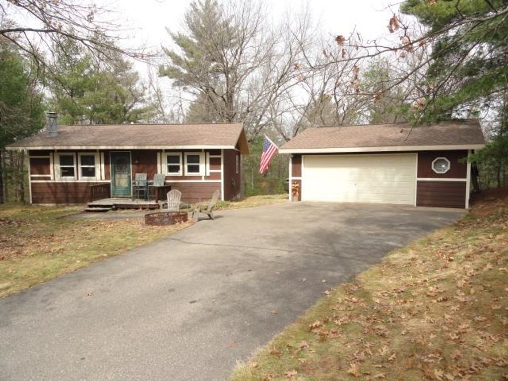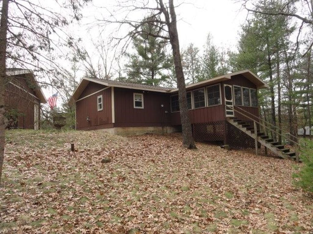 Adorable Cabin in the Woods! This very well maintained 2 bedroom, 1 bath get-away or year around property has numerous updates - (list posted under Documents) Newer roof, soffit/facia, electrical/fixtures/outlets, & interior cosmetic touches, (seller may include some items with the sale). Open concept with living room (w/wood fireplace), kitchen (all appliances included), dining area & access to the spacious 3 season porch w/nice updated windows. There is a pantry that is large enough for a stackable washer/dryer unit as well. The sizable detached 2 car garage can hold the toys and the seller has added nice features to that space as well. All this on a very nice elevated wooded lot. Located near snowmobile & ATV trails. Deeded access to Castle Rock Lake. Enjoy the Lakewood Association's private sand beach, boat launch, picnic pavilion/shelter, playground & day-piers. One feature the seller may entertain is the sale of the beautiful 2006 19' Sea Ray boat. Details listed under Documents.