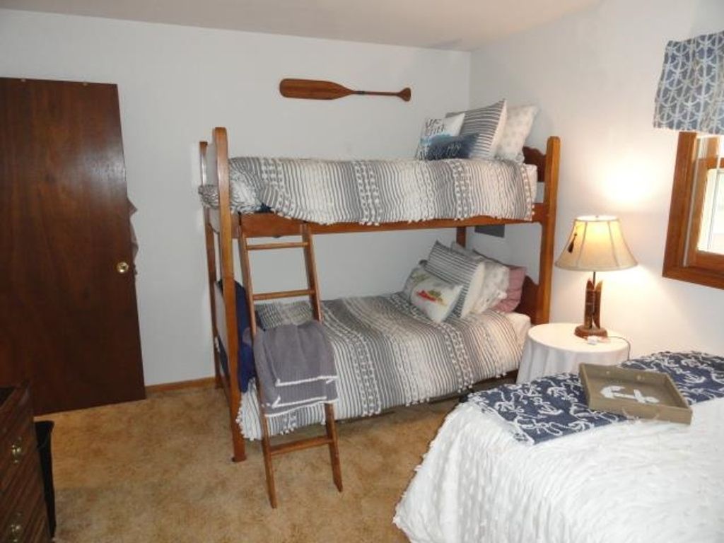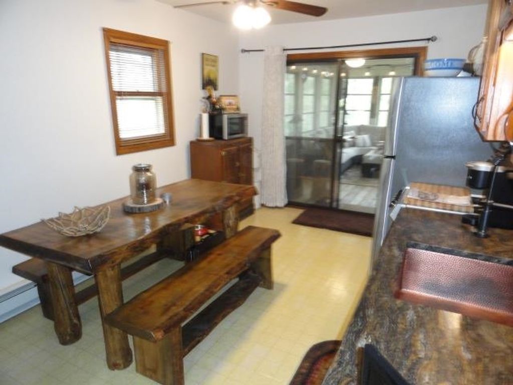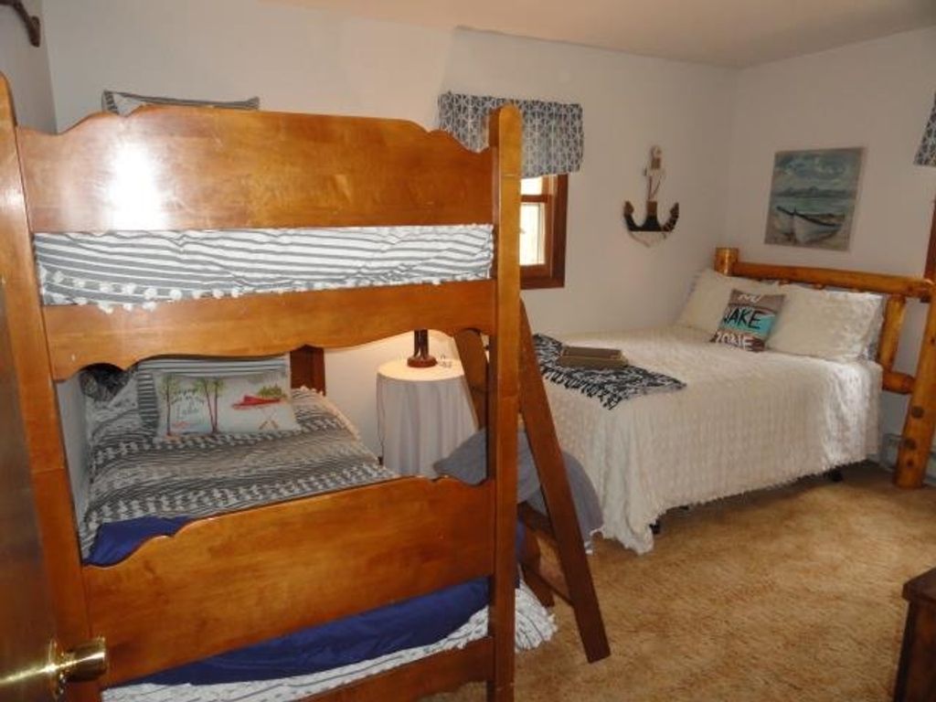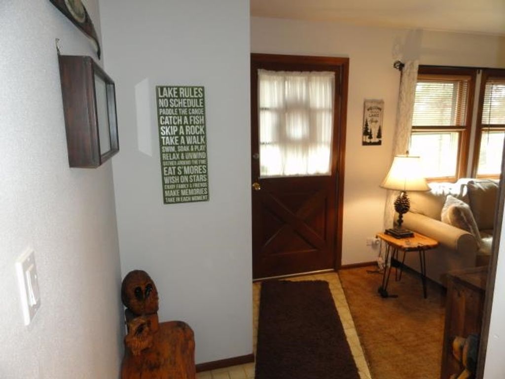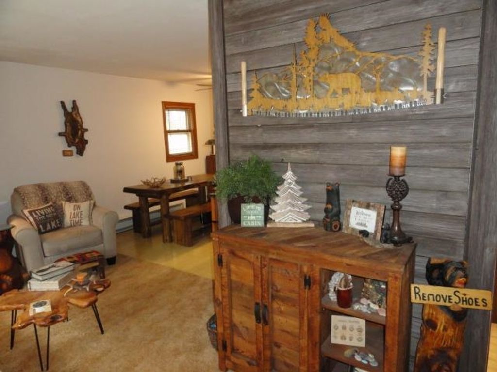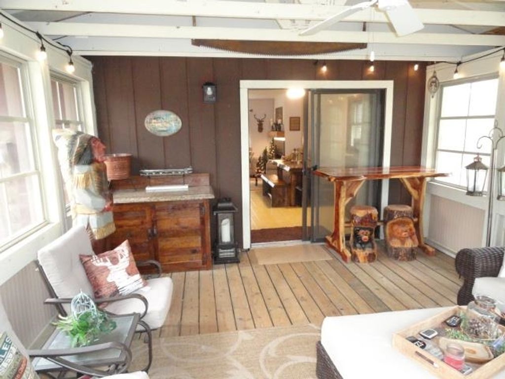 Adorable Cabin in the Woods! This very well maintained 2 bedroom, 1 bath get-away or year around property has numerous updates - (list posted under Documents) Newer roof, soffit/facia, electrical/fixtures/outlets, & interior cosmetic touches, (seller may include some items with the sale). Open concept with living room (w/wood fireplace), kitchen (all appliances included), dining area & access to the spacious 3 season porch w/nice updated windows. There is a pantry that is large enough for a stackable washer/dryer unit as well. The sizable detached 2 car garage can hold the toys and the seller has added nice features to that space as well. All this on a very nice elevated wooded lot. Located near snowmobile & ATV trails. Deeded access to Castle Rock Lake. Enjoy the Lakewood Association's private sand beach, boat launch, picnic pavilion/shelter, playground & day-piers. One feature the seller may entertain is the sale of the beautiful 2006 19' Sea Ray boat. Details listed under Documents.