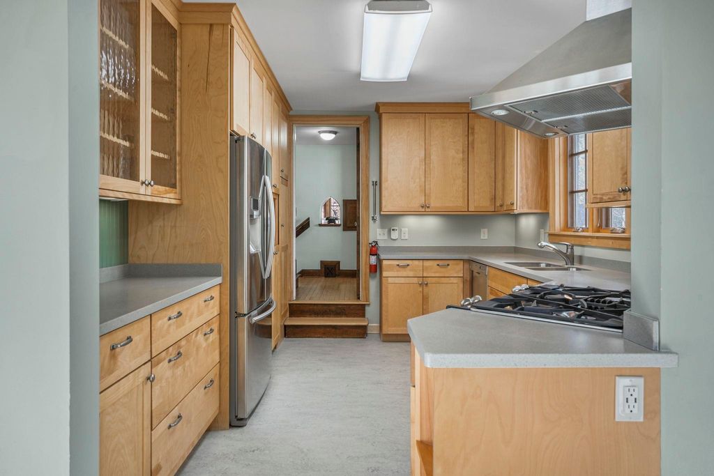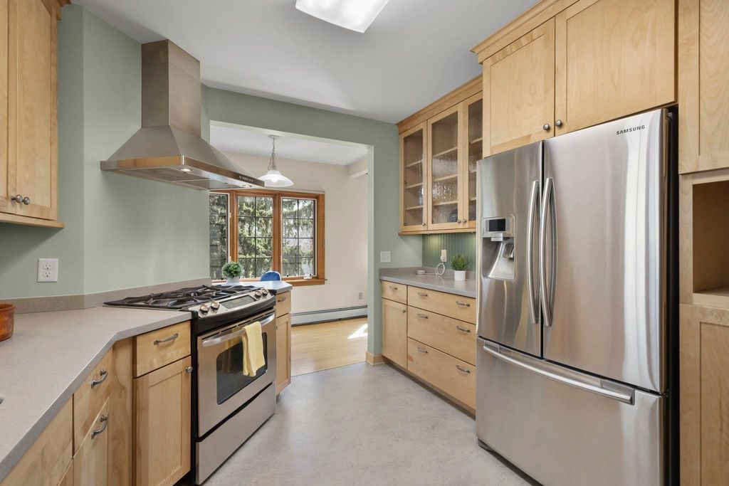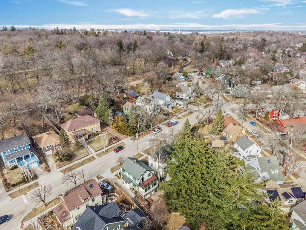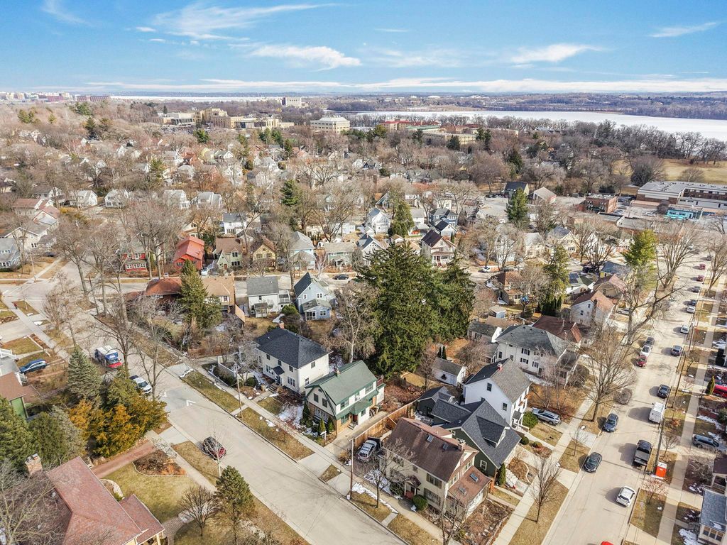 Classic 4-bedroom Colonial in the heart of Dudgeon-Monroe, The main level offers a bright, inviting dining space and a beautifully remodeled kitchen (TDS, 2013) featuring stainless appliances, heated Marmoleum floors, solid surface countertops, and custom Woodhaven cabinetry. A warm, welcoming living room with wood-burning fireplace and hardwood floors throughout completes the space, along with a convenient half bath. Upstairs, you'll find four bedrooms with refurbished hardwood floors and a full bath, one bedroom opens to a spacious composite deck, perfect for morning coffee or evening unwinding. The finished lower level adds flexible living space for work or play. Ideally located near Lake Wingra, the Southwest Commuter Path, and the vibrant shops, cafés, and parks along Monroe Street.