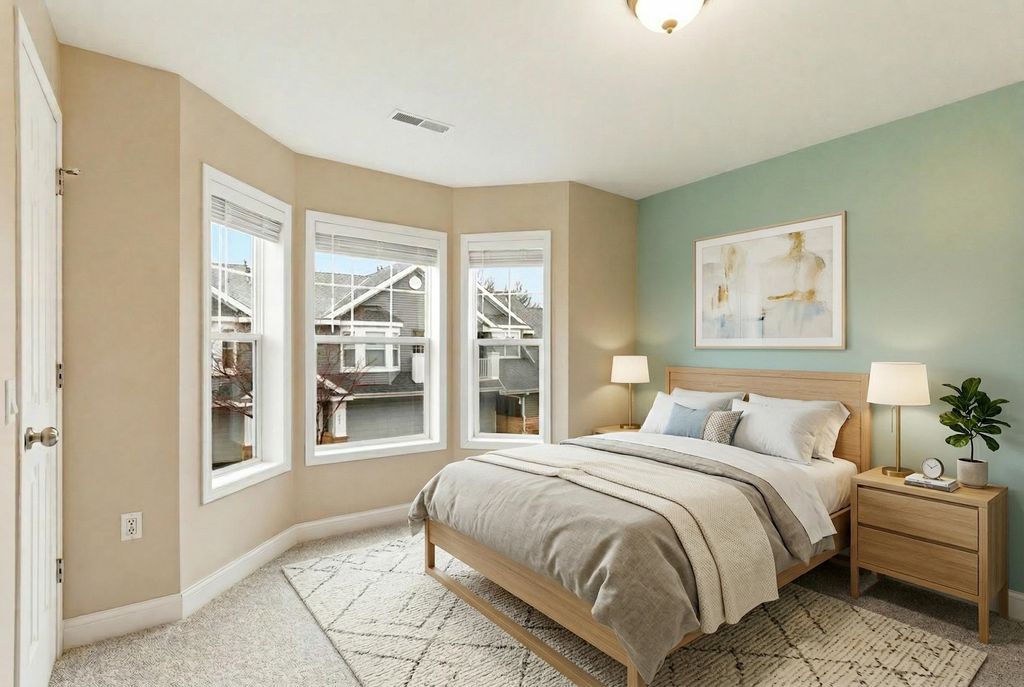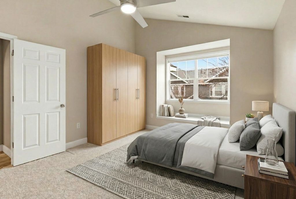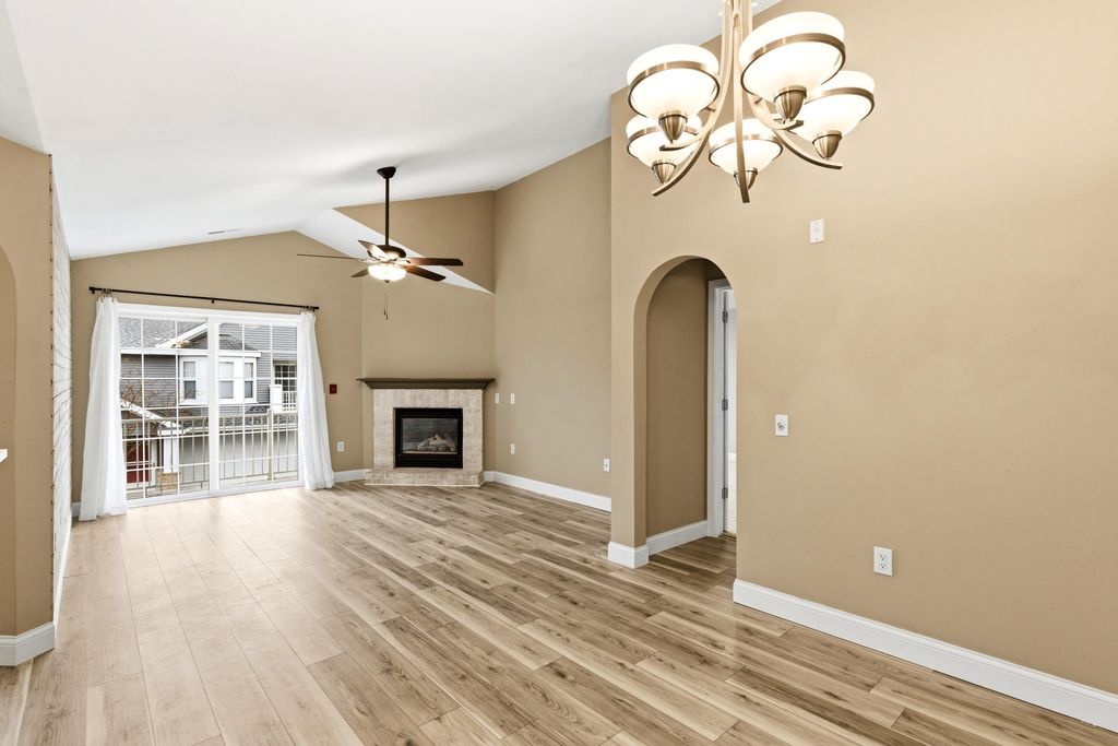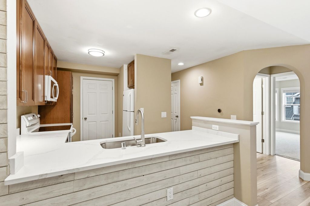 Move-in-ready West Madison condo. Spacious 2-bedroom, 2-bath home offers nearly 1,200 sq ft with vaulted ceilings that create a bright, open feel, plus a cozy fireplace for added charm. Recent 2025 improvements include new carpeting, fresh interior paint, custom blackout window treatments, and approximately $30,000 in interior and bathroom upgrades. The primary bath has been beautifully updated with a new tub, shower, vanity, and luxury vinyl tile flooring. Bathroom 2 recently refinished (2026). The kitchen and living areas showcase quartz countertops and stained maple cabinetry. Both bedrooms feature custom walk-in closets along with additional storage. Mechanical updates include a new water softener (2025), furnace (2019), and air conditioner (2020). Conveniently located near shopping, dining, parks, and commuter routes, this condo offers comfortable, low-maintenance living in a desirable West Side location. Seller offering closing cost credit for any closing prior to May 1st 2026!