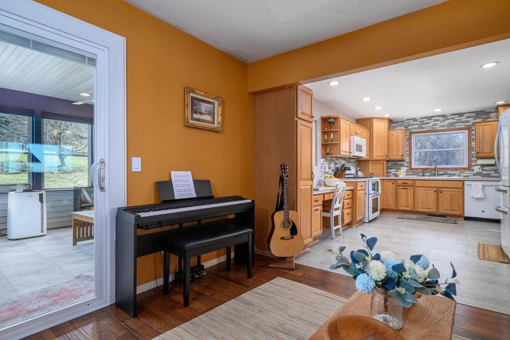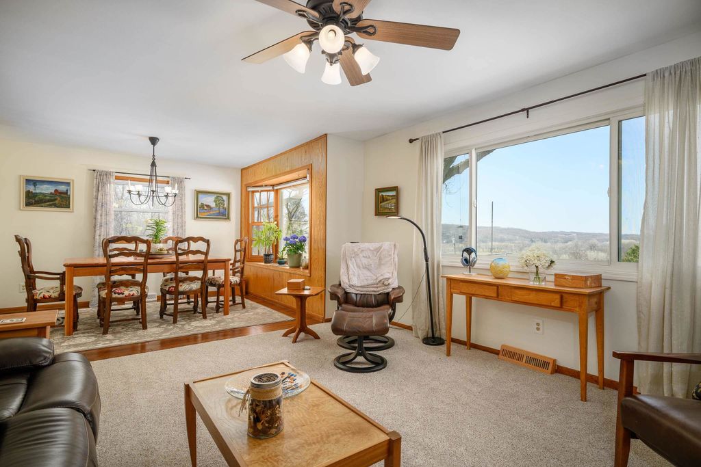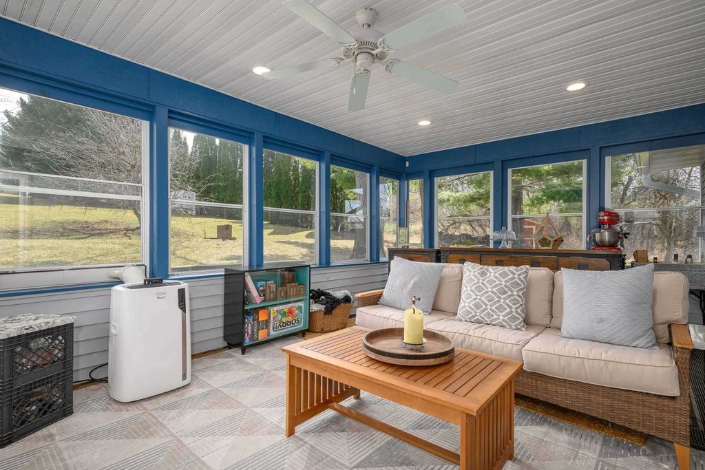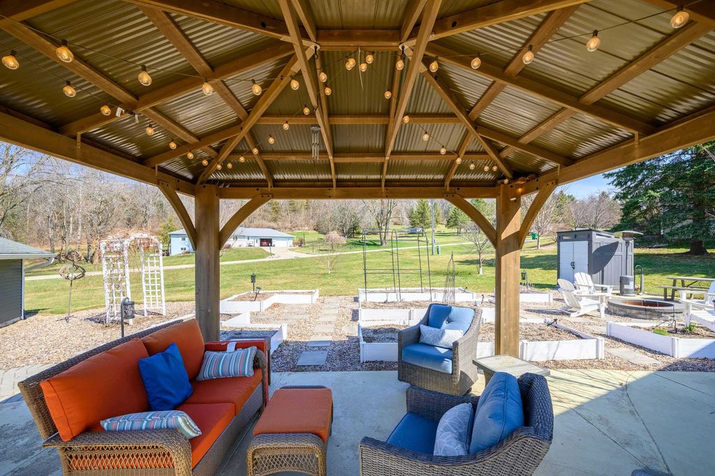 Defined spaces, sweeping views, workshops, and craft rooms! This home can be your everything. With a large lot, gazebo, raised beds, and a killer view you are ready for summer entertaining! The detached workshop/garage is a great place for all your toys or favorite projects, and helps keep your home quiet, cute and clean! Loving details like handmade wrought iron railings, custom cabinets, and a huge three season room make this one truly special. With updated baths, updated siding and meticulous landscaping this one is really and truly move-in ready. See it today!