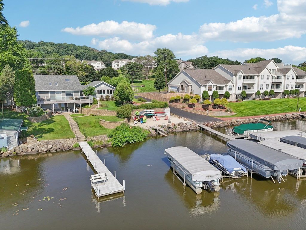 NO SHOWINGS UNTIL APRIL 11, 2026. Experience the ease of lake living in this beautifully designed condo perfect for those who dream of life near the water and living on an island! The main level offers true single level living with two bedrooms, two full bathrooms, ideal for comfort and convenience. The finish lower level expands your living space and is an entertainers dream with a wet bar second fireplace third bedroom and an additional full bathroom. Enjoy stunning Lake views and a serene natural setting filled with abundant wildlife. Whether you're relaxing indoors or taking in the scenic outdoors, this condo delivers the best of it all! Located near Okee Bay, walking paths, parks and eateries. Boat slip is #B17, Condo fee is $603.81/month + $33 Boat Slip fee/month totaling $636.81/month.
