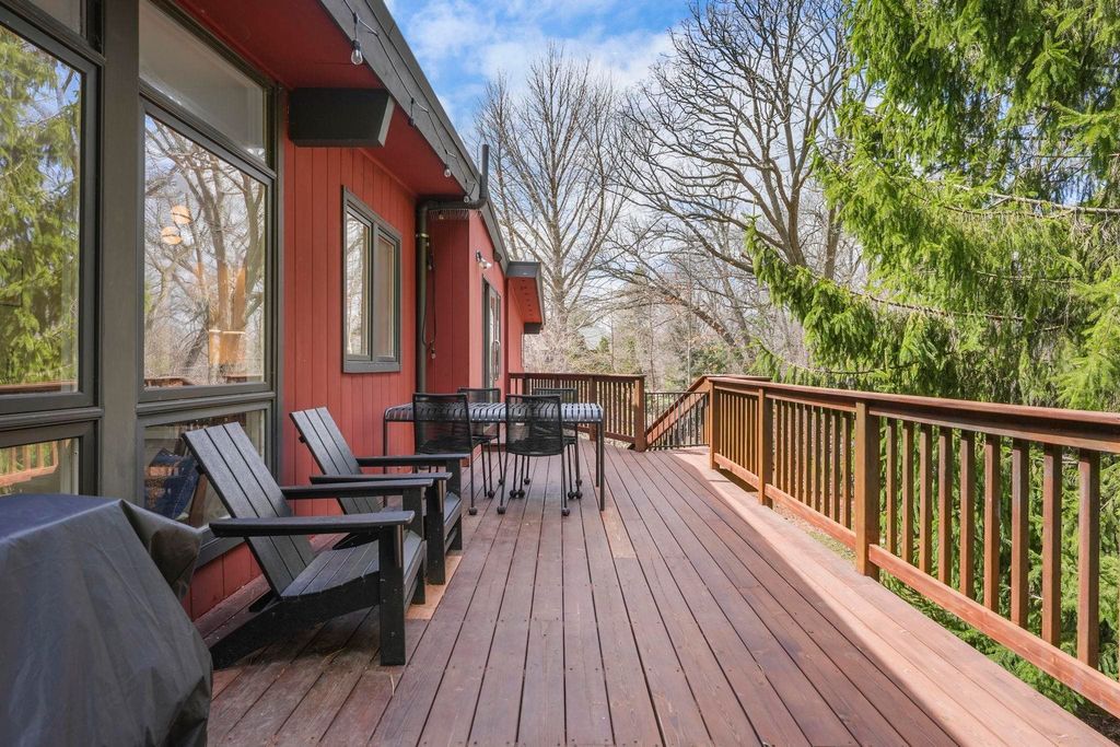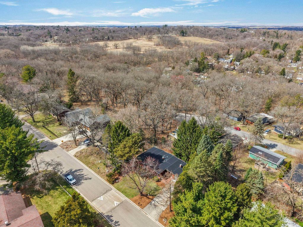 Showings start 4/10. Mid-century modern home nestled adjacent to Crestwood Woods and Owen Conservancy, offering nearly 3,000 sq ft of bright, inviting living space. This 4-bedroom, 2.5-bath residence features a sunken living room filled with natural light and an open, spacious feel throughout. The 2022 professionally updated full and half baths showcase stylish, contemporary finishes, while the kitchen has been thoughtfully refreshed for both function and appeal with new appliances, cabinet doors and counters in 2022. Recent window and door updates enhance energy efficiency and comfort. Solar tubes bring in natural light. The walkout lower level provides additional versatile living space, perfect for entertaining or recreation. The attached garage has a Generac System with transfer panel, adding modern convenience and peace of mind. A rare opportunity to own a beautifully updated home in a serene, nature-filled setting. See Associated Documents for list of recent updates.