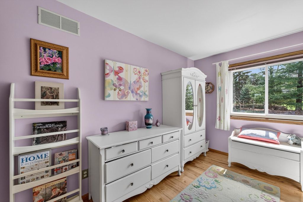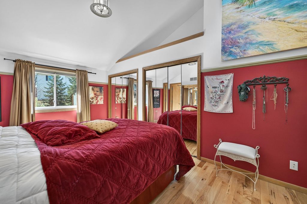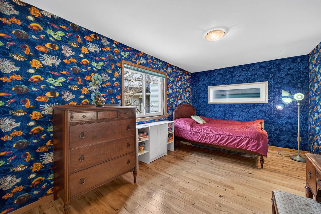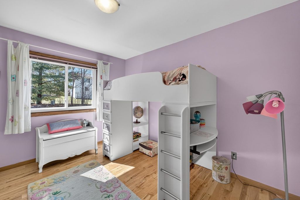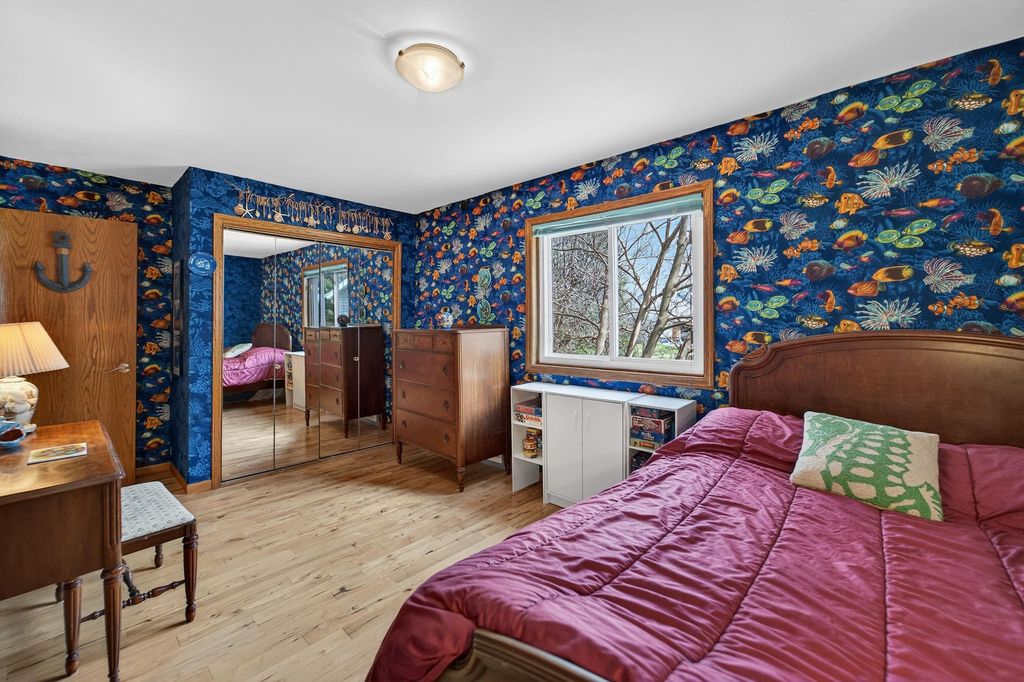 Show 4/9. Prime Middleton location, walk to Northside Elementary, Kromrey & MHS! Cedar front. Updated kitchen with granite, black stainless steel, heated floor and breakfast bar opening to dining with floor-to-ceiling triple-pane windows and sitting room with knotty birch floors and exposed beams. Birch hardwood floors in upper level with 3 large bedrooms and living room with wood-burning fireplace, vaulted wood ceiling and private deck. (Fish fabric in blue room easy to remove, white walls.) Primary suite with vaulted ceilings and walk-in tiled shower. Main bath has granite and jetted tub. Exposed LL adds rec room w/ cork flooring, bar, half bath with granite, large bonus room w/ walk-in closet, double washers/dryers, workshop and access to oversized garage with floor-to-ceiling shelving. New water softener, water heater, dishwasher, garage door. Newer fridge, reverse osmosis, windows, roof. Near Pheasant Branch Conservancy. Seller providing ultimate 13-month home warranty!