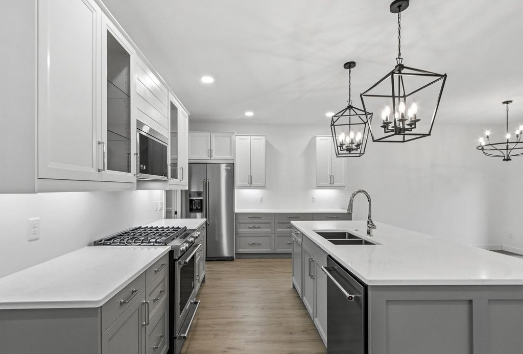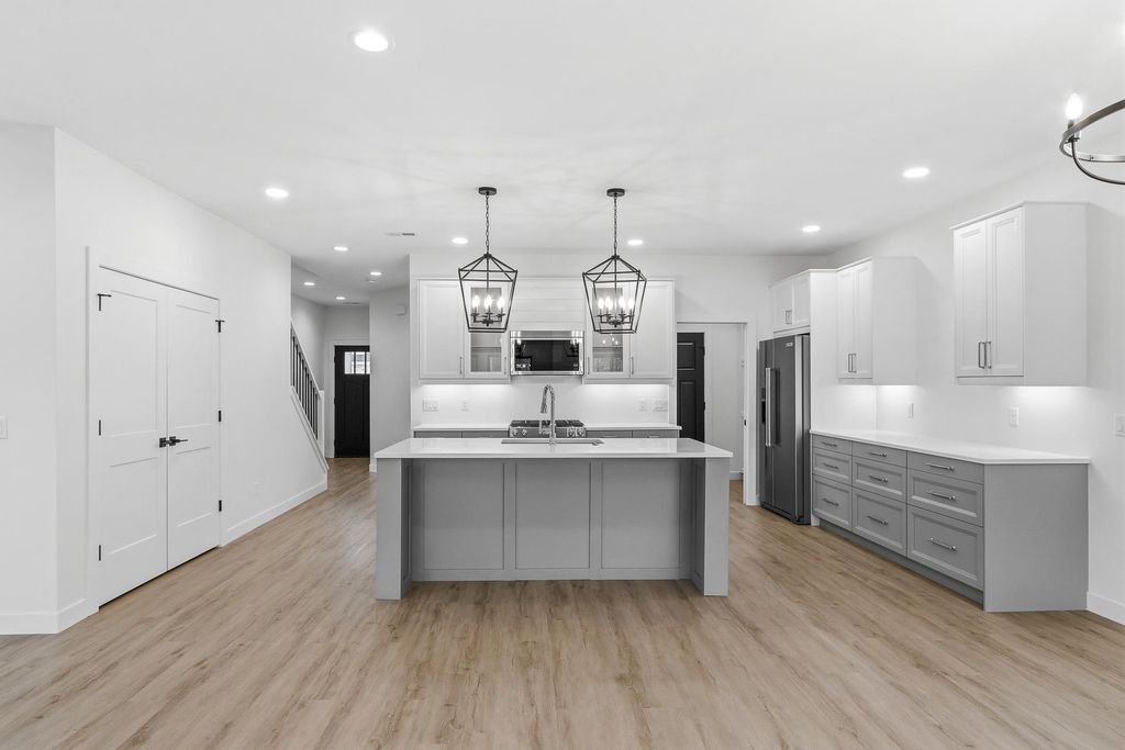 VPR: $299,000-$309,000 Stylish, modern new construction townhome in Pardeeville's newest development. Clean architectural lines and a crisp exterior create immediate curb appeal, while the interior delivers a bright, open layout with 9' ceilings and elevated finishes throughout. The kitchen stands out with quartz countertops, a large island, stainless steel appliances, and custom cabinetry flowing seamlessly into the main living space. Statement lighting and wide-plank flooring add a polished, high-end feel. The primary suite offers a private retreat with tray ceiling, walk-in closet, and a well-appointed "en-suite" with dual vanities and walk-in shower. Upper-level loft provides flexible space for office or lounge. Two additional bedrooms, 2nd floor laundry, beautiful mudroom, 2 car garage and ample storage complete a highly functional, design-forward layout. Limited availability!