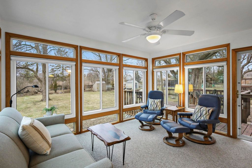 Showings start 4/10. This charming Orchard Ridge home is full of character & natural light. The entryway welcomes you w/ original wood features & flooring that give it that midcentury appeal. The living room stuns w/ a large picture window, a beautiful fireplace w/ built-in shelving & storage cabinetry. The home's gentle flow then opens up to the dining area adjacent to the kitchen & sunroom. Enjoy the outdoors year-round in your sunrm w/ floor-to-ceiling windows & electric baseboard heat. Just steps away from the deck that overlooks a fenced yard - you'll never miss a sunset. Kitchen features incl SS appliances, a double oven, & stylish cooktop. Just down the hall, four bedrooms await, perfect for many different lifestyles. There's more space downstairs, too, w/ a large rec room that connects to the garage. Plus, another flex rm that could be used for guests, working from home, or your favorite hobby. Within walking distance to Orchard Ridge Elementary & Ridgewood Pool. Welcome home!