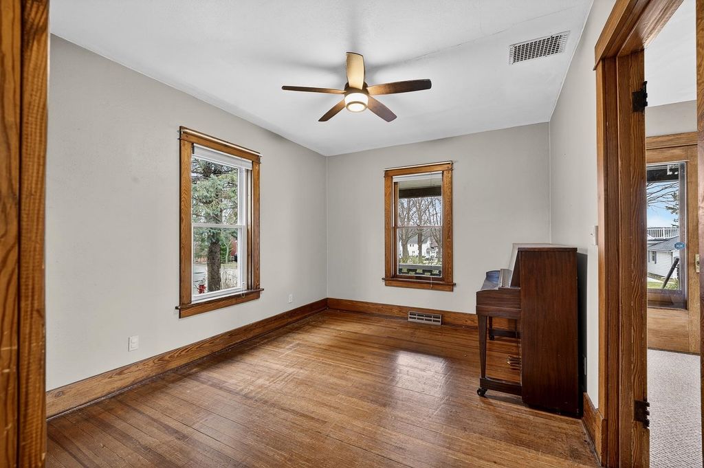 Showings begin 4/8! Charming Village of New Glarus home offering over 1,600 sqft, beautiful hardwood floors, and classic cottage-style character in a walkable location near downtown shops, dining, and parks. This inviting 3-bedroom home features a warm, welcoming layout with spacious living and dining areas and a kitchen ready for you to bring your ideas to life. A den/office space currently without a door offers the potential for a fourth bedroom or flexible living area. The primary bedroom includes a convenient half bath and patio door leading to a private deck. You will love all the storage that the bedrooms hold! Situated on a corner lot with sidewalks, the property also features a fenced yard ideal for pets, gardening, or relaxing outdoors, along with a detached 2-car garage. Located just minutes from everything the Village of New Glarus has to offer.