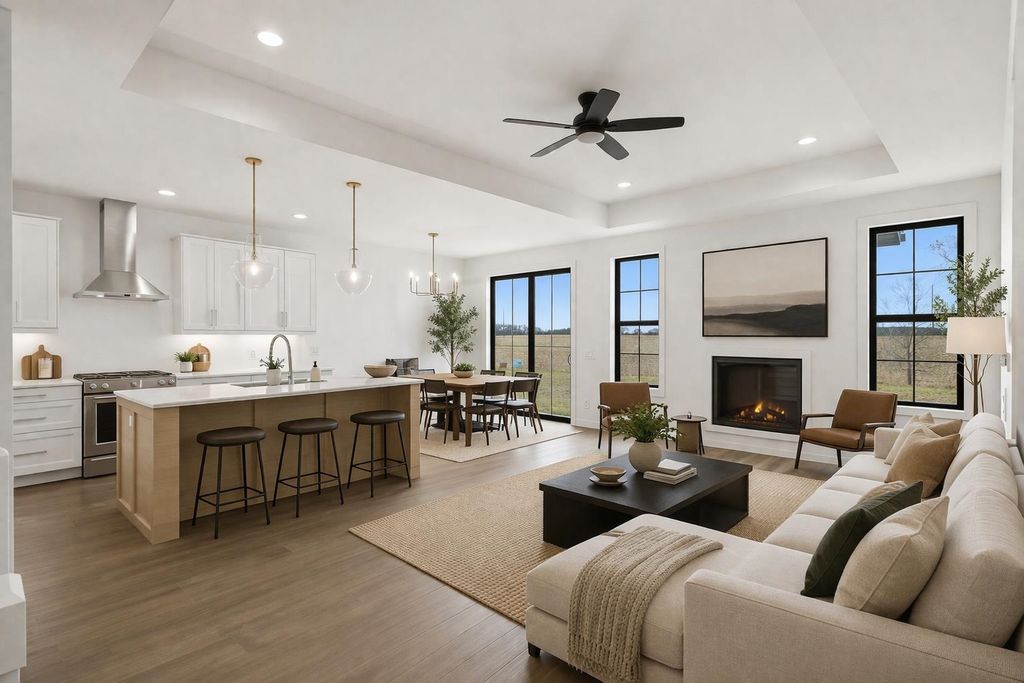 Fall in love with the clean, upscale finishes from floor to ceiling here! Granite surfaces become the standard and thoughtfully curated, modern design elements are found in every room. The main level features an open-concept chef's kitchen with custom cabinetry and island seating flowing seamlessly into the dining and living areas perfect for everyday living and entertaining. The primary suite includes a private bath with walk-in shower and a generous closet. A second main-level bedroom offers flexibility for guests or a home office. The finished lower level expands the space with a large rec room, two additional bedrooms, a third full bath, and ample storage. Thoughtfully designed with today's buyer in mind.
