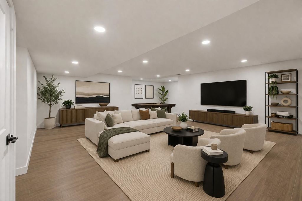 Fall in love with the clean, upscale finishes from floor to ceiling here! Granite surfaces become the standard and thoughtfully curated, modern design elements are found in every room. The main level features an open-concept chef's kitchen with custom cabinetry and island seating flowing seamlessly into the dining and living areas perfect for everyday living and entertaining. The primary suite includes a private bath with walk-in shower and a generous closet. A second main-level bedroom offers flexibility for guests or a home office. The finished lower level expands the space with a large rec room, two additional bedrooms, a third full bath, and ample storage. Thoughtfully designed with today's buyer in mind.