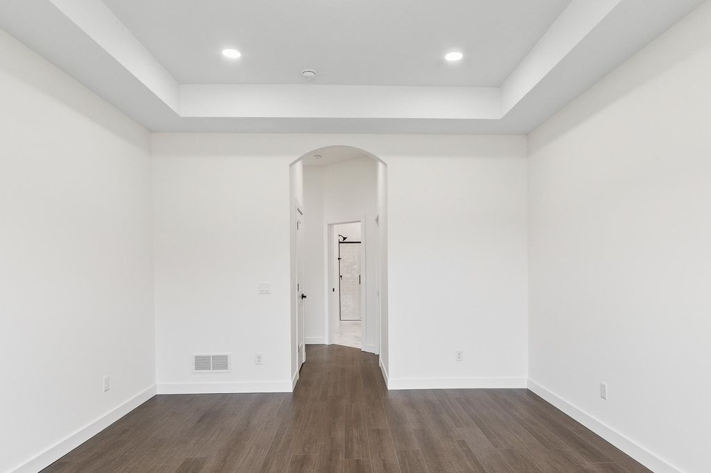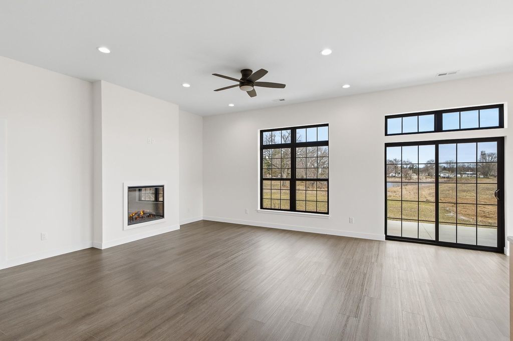 Spacious, light-filled, true single-level living with a refined, open-concept design. Soaring 10-foot ceilings and elegant arched openings create a striking first impression, while the seamless flow between the living, dining, and kitchen areas delivers an ideal setting for both everyday living and entertaining. A sleek, low-maintenance fireplace anchors the space with warmth and sophistication. The kitchen is designed to impress with granite countertops, upscale finishes, and a clean, modern aesthetic that carries throughout the home. Every detail has been thoughtfully selected to deliver a high-end, cohesive feel. The primary suite offers a private retreat with dual walk-in closets and a spacious en-suite bath featuring double vanities and elevated finishes. Low-maintenance living, elevated design, and quality craftsmanship throughout make this a standout home sure to impress!