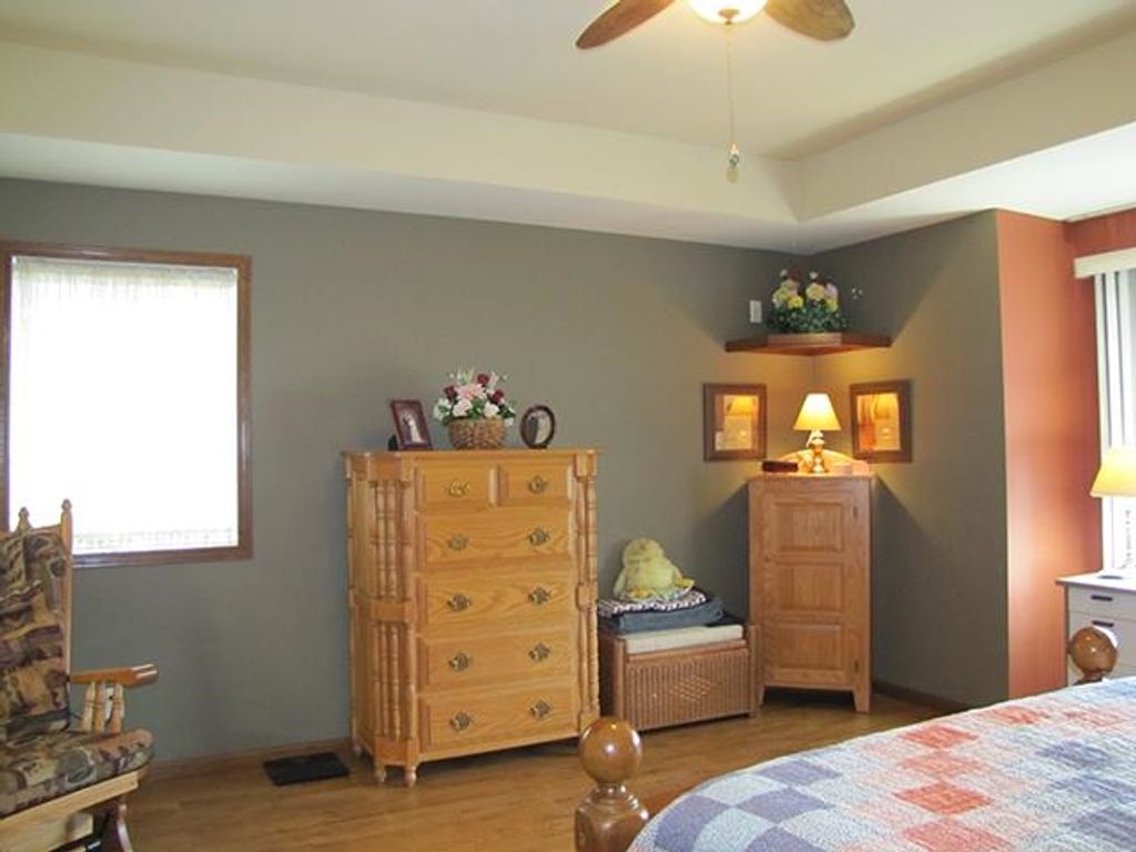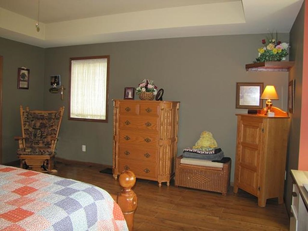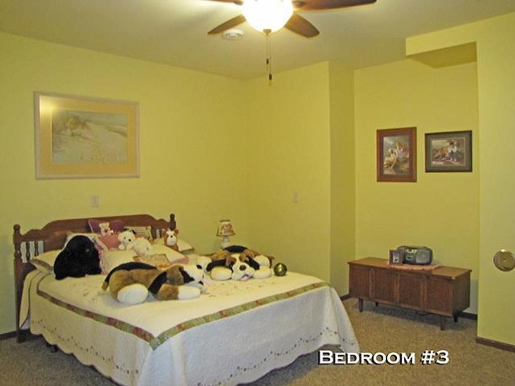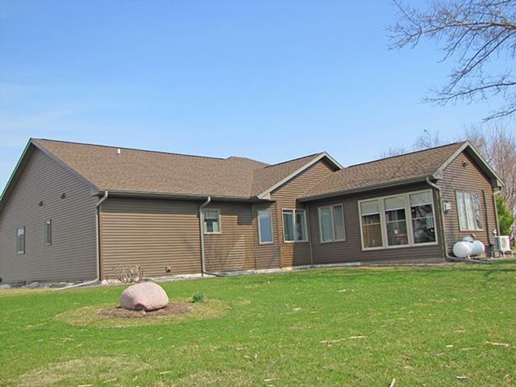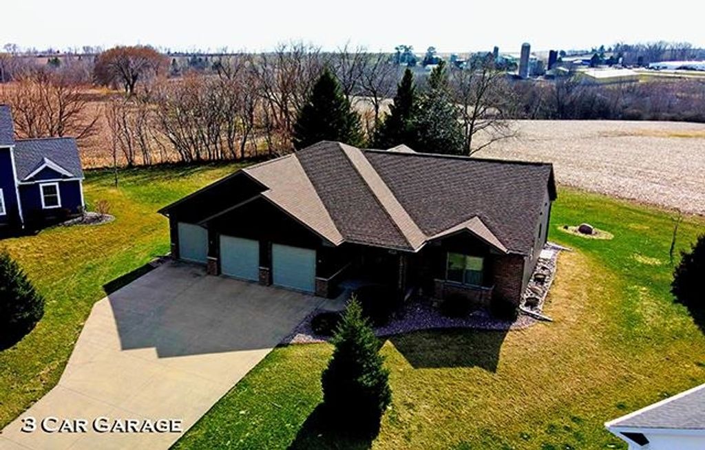 This beautiful, stick built ranch has an open concept, with large rooms with 9 ft ceilings! The great room has a gas fireplace, hard surface floors and is open to the kitchen/dining area. Just off the living room, you'll find a lovely office space, currently a sewing room,which brings you to a cozy sunroom with a gas corner stove and central air unit. Out back, you'll find a deck to sit in the sunshine. Watch the sun set from the deck or the sunroom. The kitchen has a large walk-in pantry that will fit everything you'll ever need. The primary suite has the bath with a walk in closet and the laundry right there. Downstairs, you'll find two bedrooms, an enormous rec space and a large storage area with in floor heat. The 3 car garage has room for toys, and provides basement access. This home has an edge of town location with solitude, as you overlook the amazing countryside views, and a quick hop to the highway from the cul-de-sac. This home is move in ready! Don't wait!