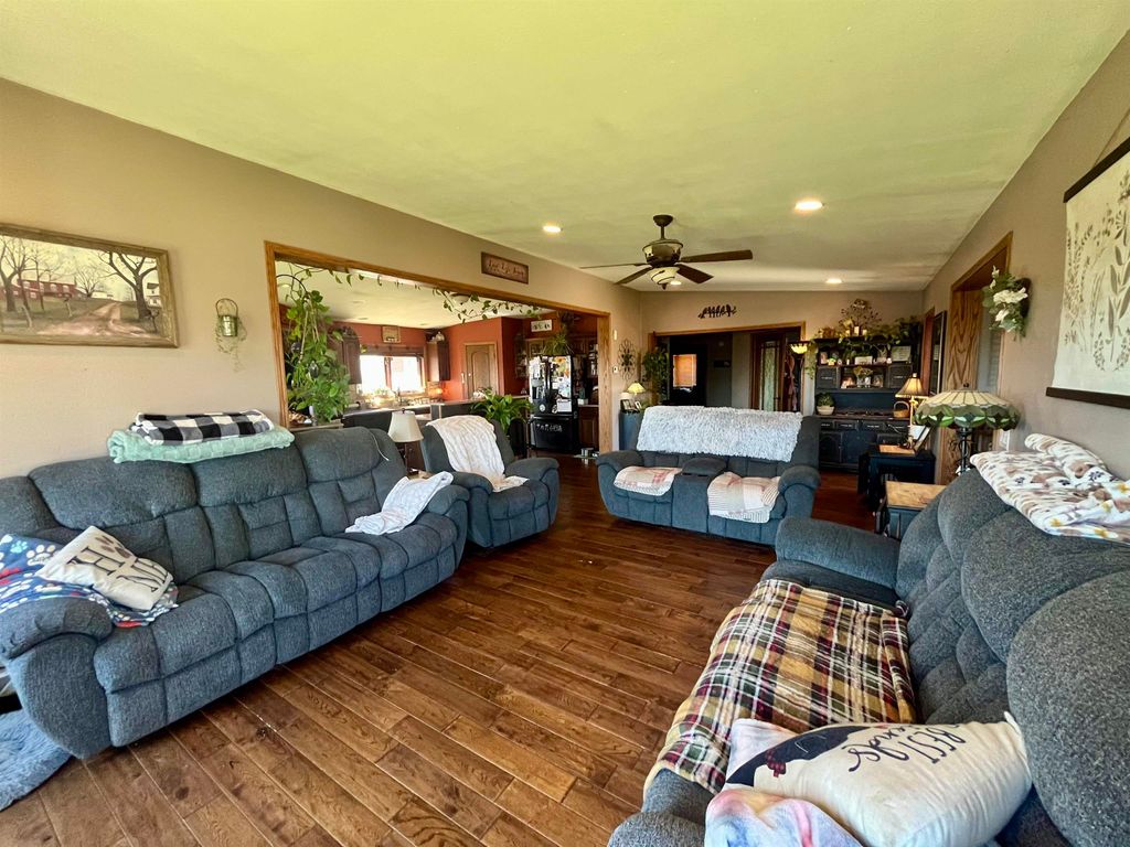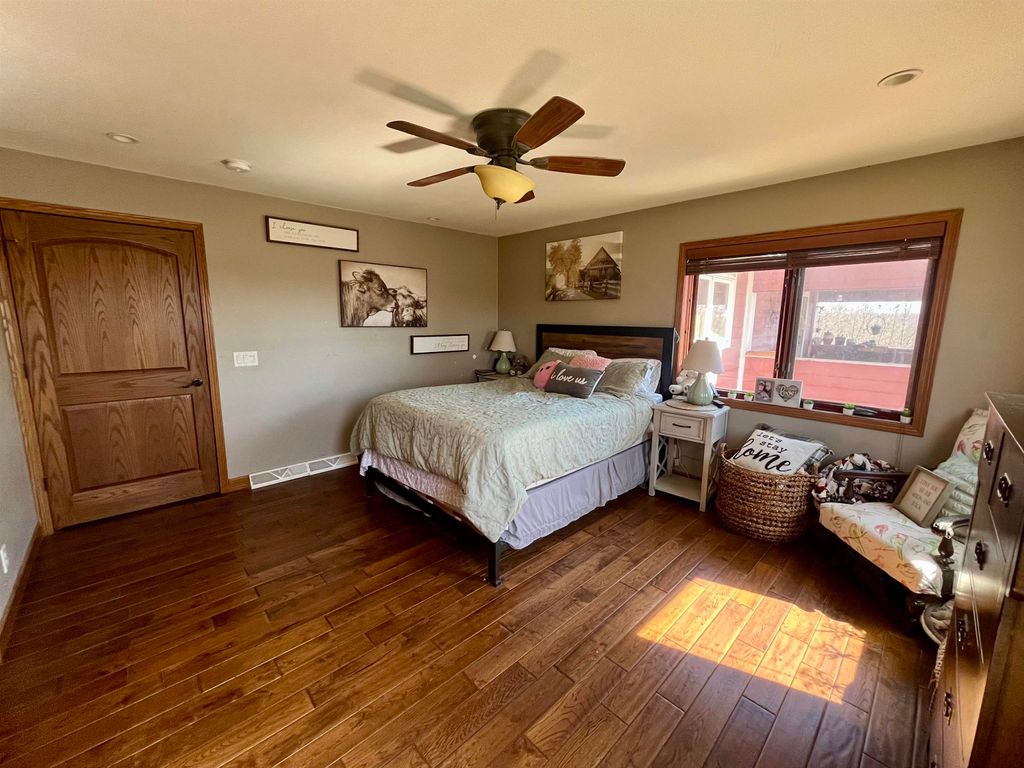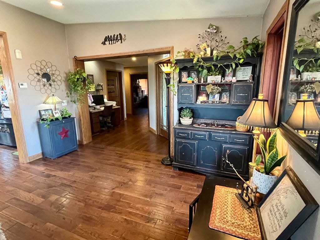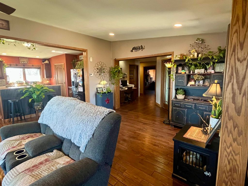 Enjoy the ideal balance of country living and modern comfort with this well-equipped hobby farm. The fully fenced backyard offers privacy and space for pets, gardening, or outdoor activities, complemented by ample garden areas and mature apple trees. Outdoor living is a standout feature, with a pergola, patio with fire pit, covered porch, and front deck"”perfect for relaxing or entertaining in any season. The home includes a versatile finished basement with a bedroom, full bath, family room, kitchenette, office space, and generous storage"”ideal for guests or extended living. In-floor heat in both the basement and garage ensures year-round comfort. The fully insulated three-car garage provides excellent space for vehicles and hobbies, plus a bonus room suited for recreation, a workshop, or additional storage. A functional and flexible property with everything needed to enjoy hobby farm living.