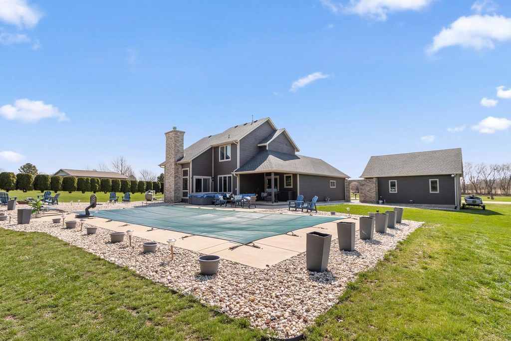 OPEN HOUSE 4/12 11a-1p. Is there a 3-bed home in Milton with land, a pool, and major updates already completed? Heated shop! In-ground pool! 1 acre! Elevate your everyday living with this stunning property! This 3-bedroom, 3.5-bath home impresses from the moment you open the door. Your first view includes a soaring fireplace, vaulted ceiling, & large windows that showcase the pool, and a backdrop of mature trees that takes your breath away. Gorgeous ML primary suite with a luxurious tub for soaking & relaxing. Lower level with full bath adds much more space for family nights or guests. (Kitchen & LL pictures contain ai renderings showing samples of the new counters & carpet that will be installed the end of April.) You'll enjoy the heated 24x24 shop/garage which provides space for hobbies & extra parking. Located in a peaceful setting with quick access to Hwy 26 and I-90, sweet gatherings, quiet evenings, & resort-style living could definitely be in your future! Home warranty included.