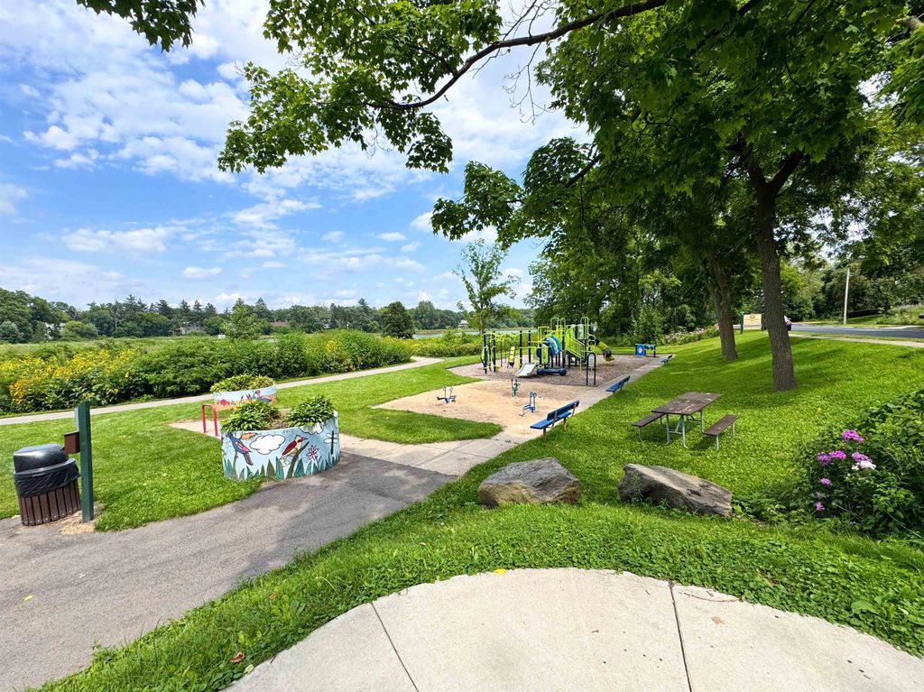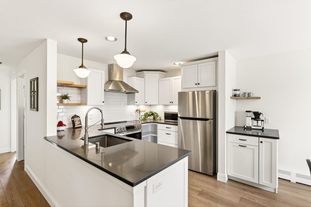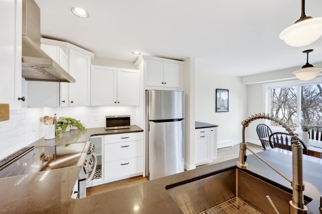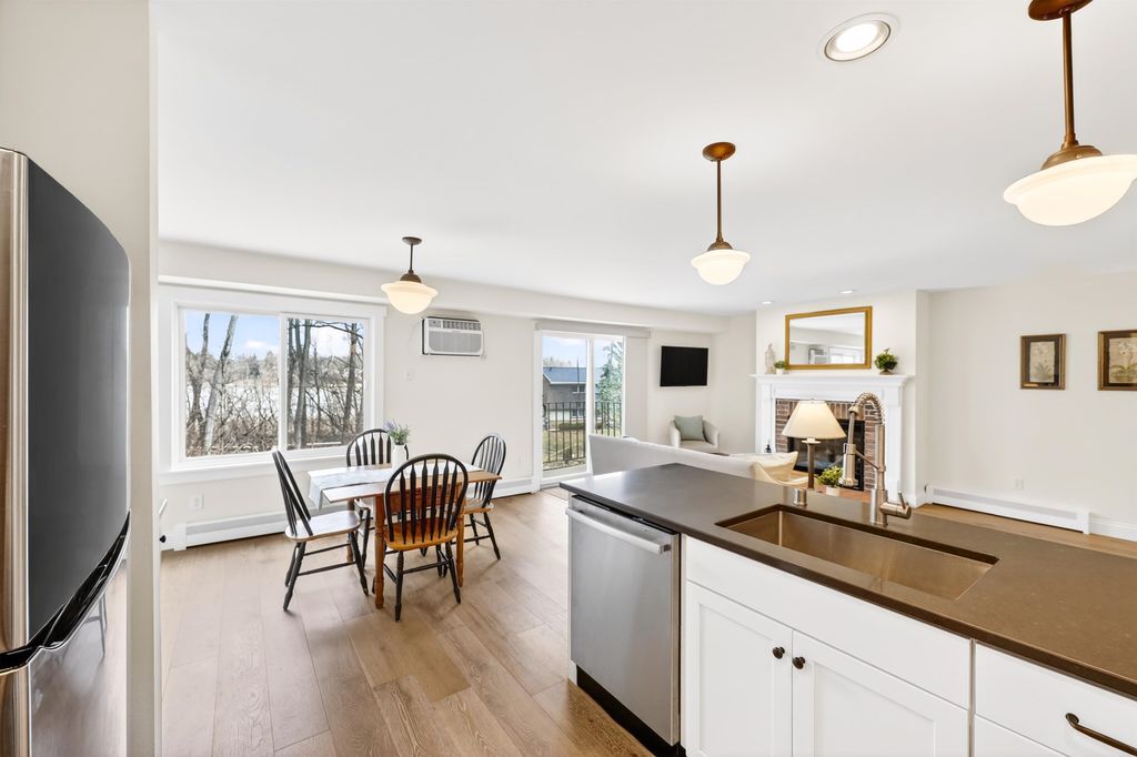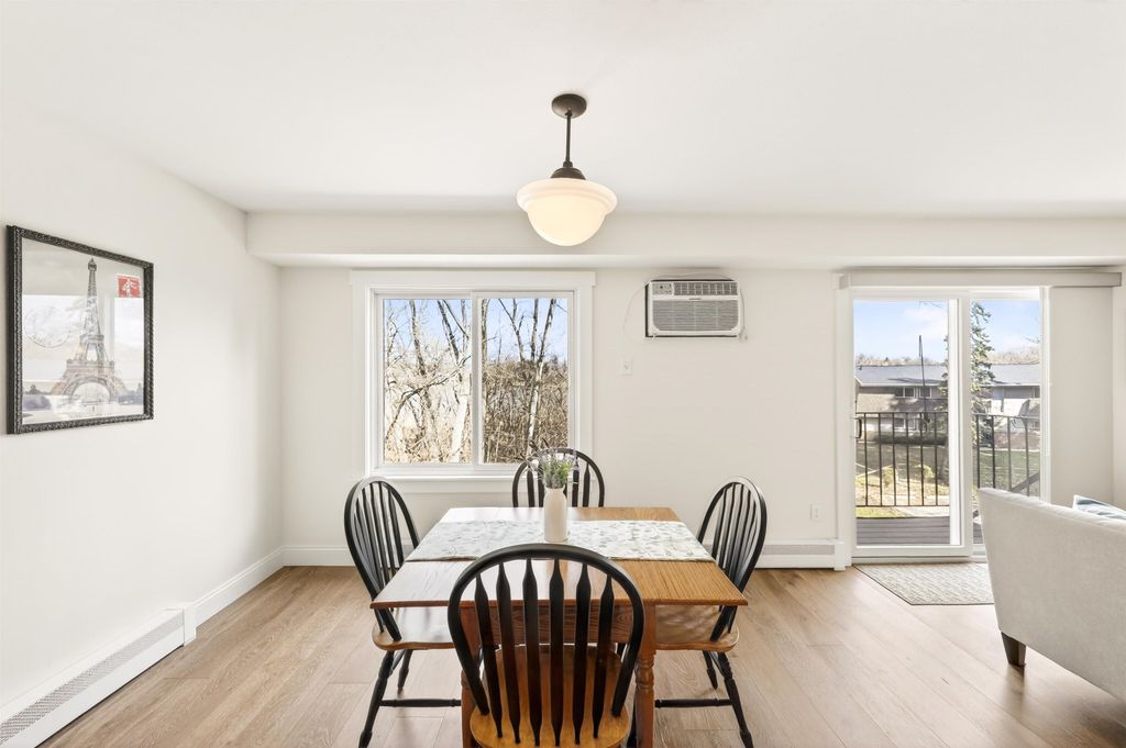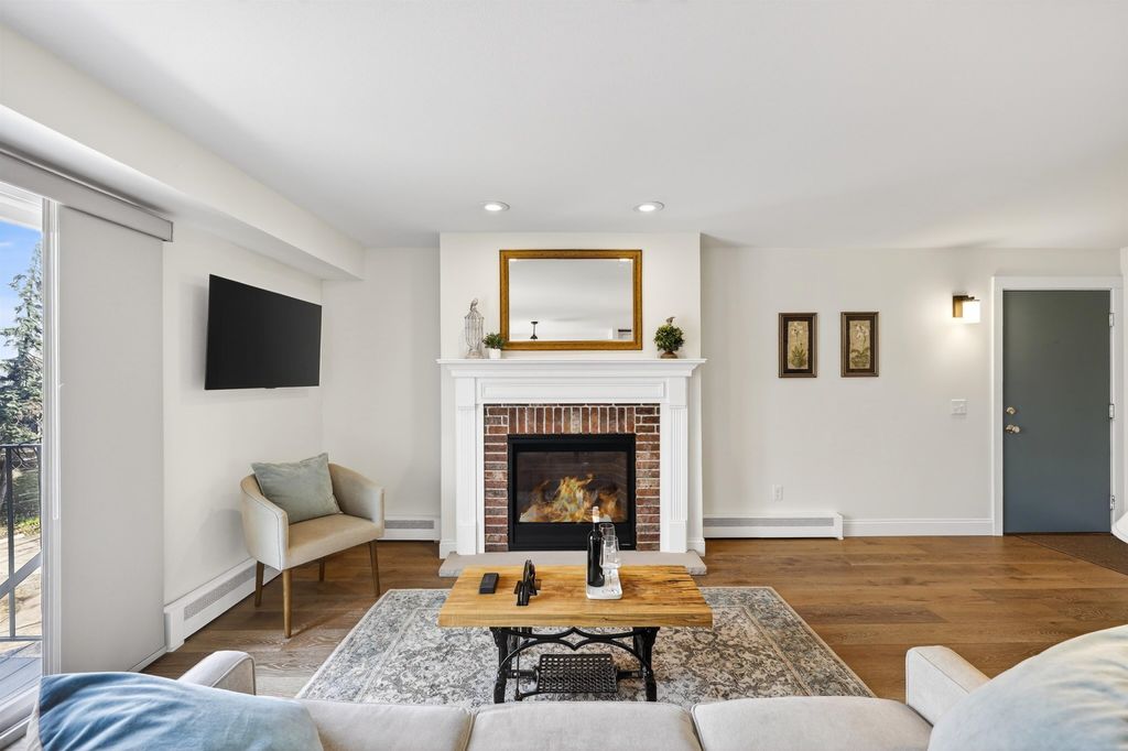 Just steps away from Tiedeman Pond and its peaceful walking paths, this fully-renovated condo offers comfort, style and peaceful views of nature from your private living room balcony! Open concept design with engineered white oak plank flooring, cozy gas fireplace, new lighting, paint, windows and patio doors. Sparkling new kitchen with white cabinets, quartz countertops, tile backsplash, vented range hood and stainless appliances, including induction range/oven. Primary bedroom with additional private balcony. Bathroom taken down to the studs to feature new tile walk in shower, vanity with quartz countertop and tile flooring. In-unit laundry with brand new washer/dryer combo. 2-car attached underground tandem garage with new garage door. Condo fee includes heat, water(including hot water), sewer, trash removal, snow removal and lawn care. Just in time to enjoy spring and summer on the pond!