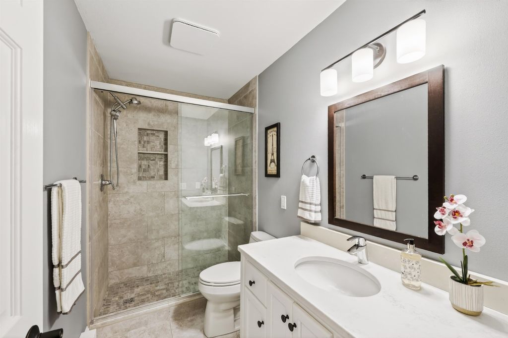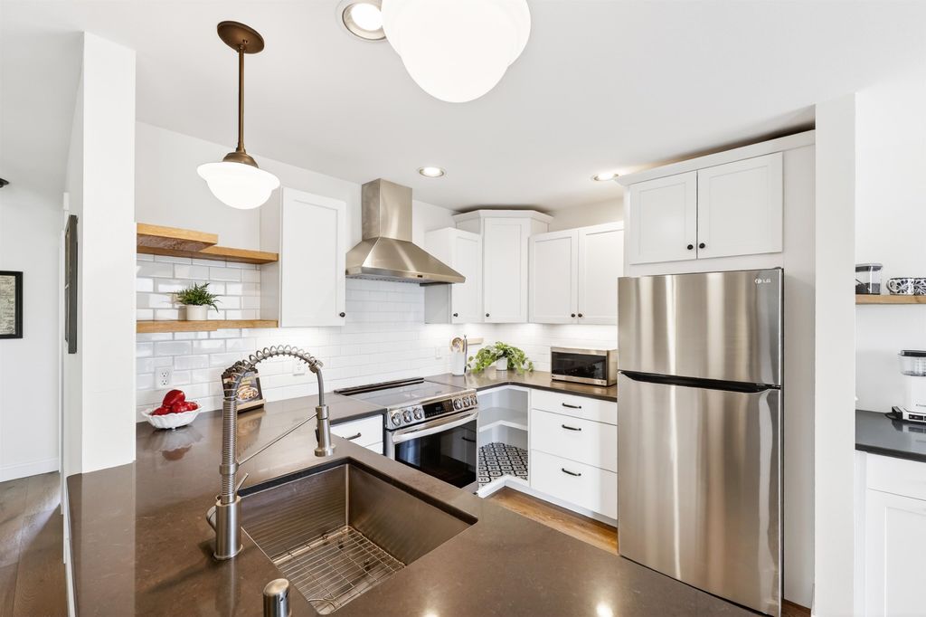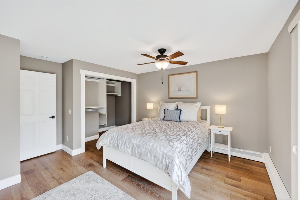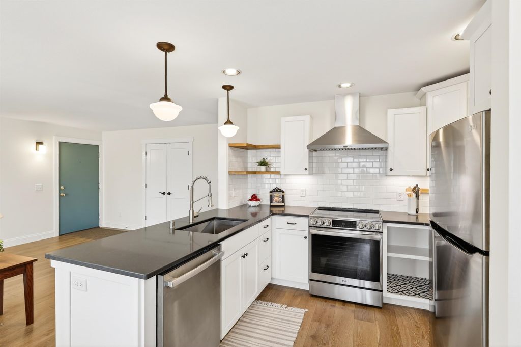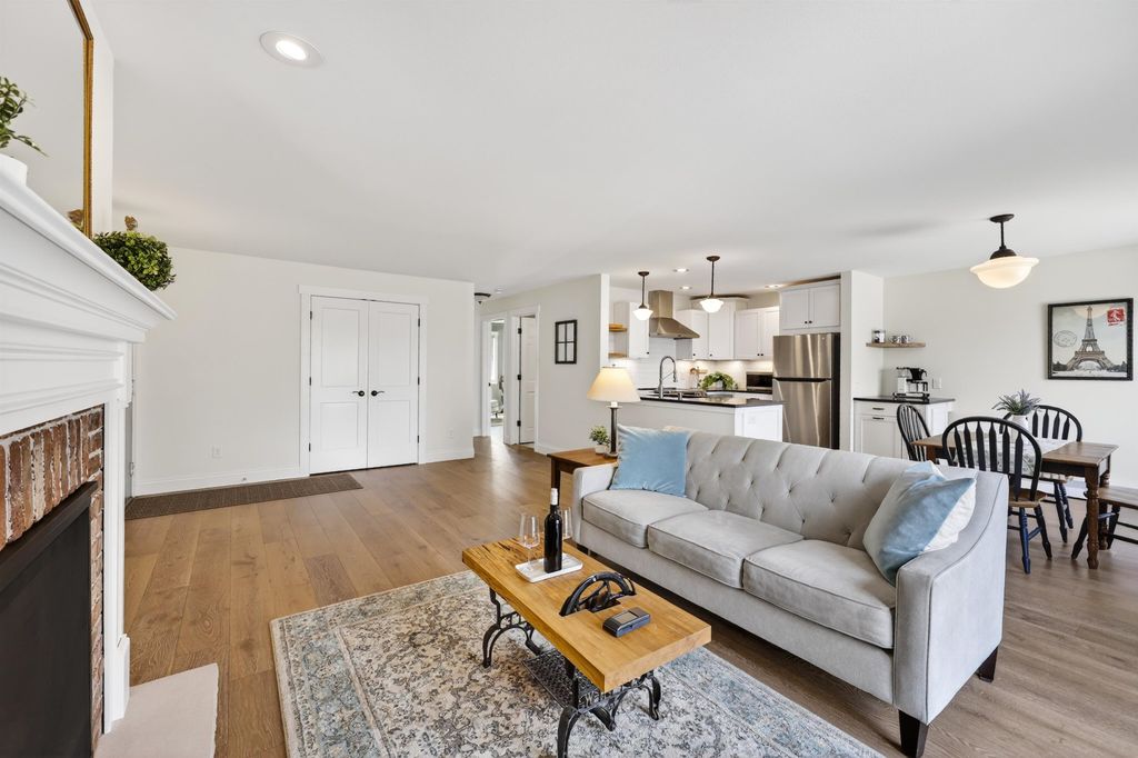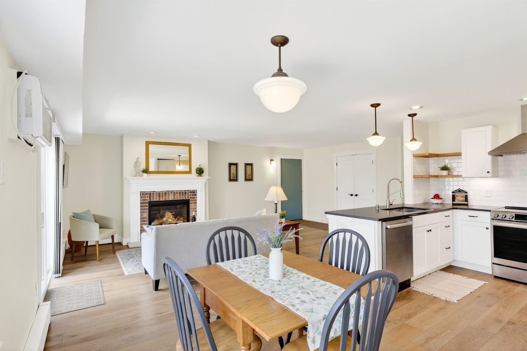 Just steps away from Tiedeman Pond and its peaceful walking paths, this fully-renovated condo offers comfort, style and peaceful views of nature from your private living room balcony! Open concept design with engineered white oak plank flooring, cozy gas fireplace, new lighting, paint, windows and patio doors. Sparkling new kitchen with white cabinets, quartz countertops, tile backsplash, vented range hood and stainless appliances, including induction range/oven. Primary bedroom with additional private balcony. Bathroom taken down to the studs to feature new tile walk in shower, vanity with quartz countertop and tile flooring. In-unit laundry with brand new washer/dryer combo. 2-car attached underground tandem garage with new garage door. Condo fee includes heat, water(including hot water), sewer, trash removal, snow removal and lawn care. Just in time to enjoy spring and summer on the pond!
