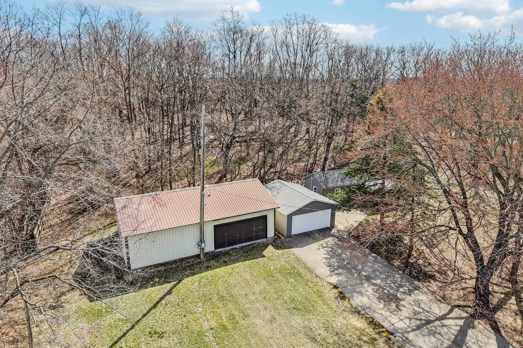 Tucked on a quiet dead-end road surrounded by fields and woods, this 2BR/2BA modular home with a full basement sits on just under an acre, offering the privacy and functionality that hobbyists dream about. The 30x40 shed is heated and wired, and it includes additional storage and loft space along with an oversized 2-car detached garage. Inside, the main floor offers three bedrooms (the 3rd bedroom doesn't have a closet) and a full bath with main-floor laundry. The finished lower level has access from inside the house and also a separate exterior entry. This space includes an office with potential to be another bedroom by adding an egress window, a kitchenette, a full bath, electric baseboard heat, and another washer/dryer.