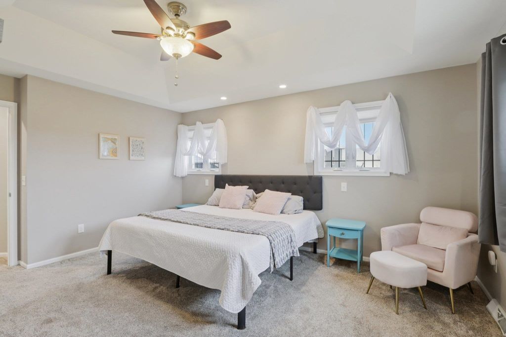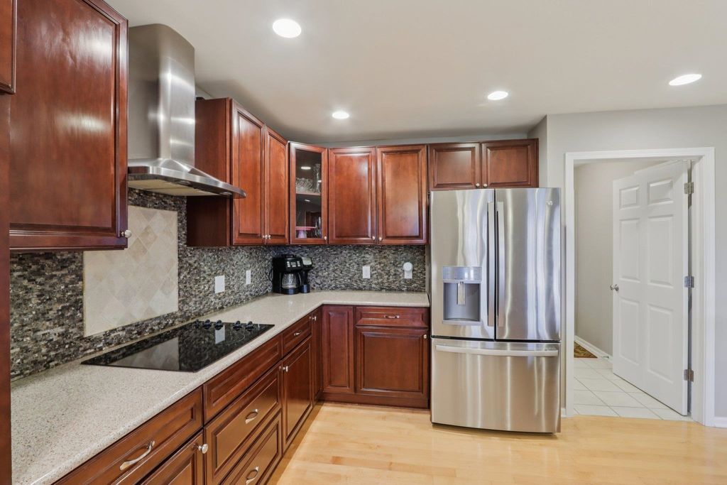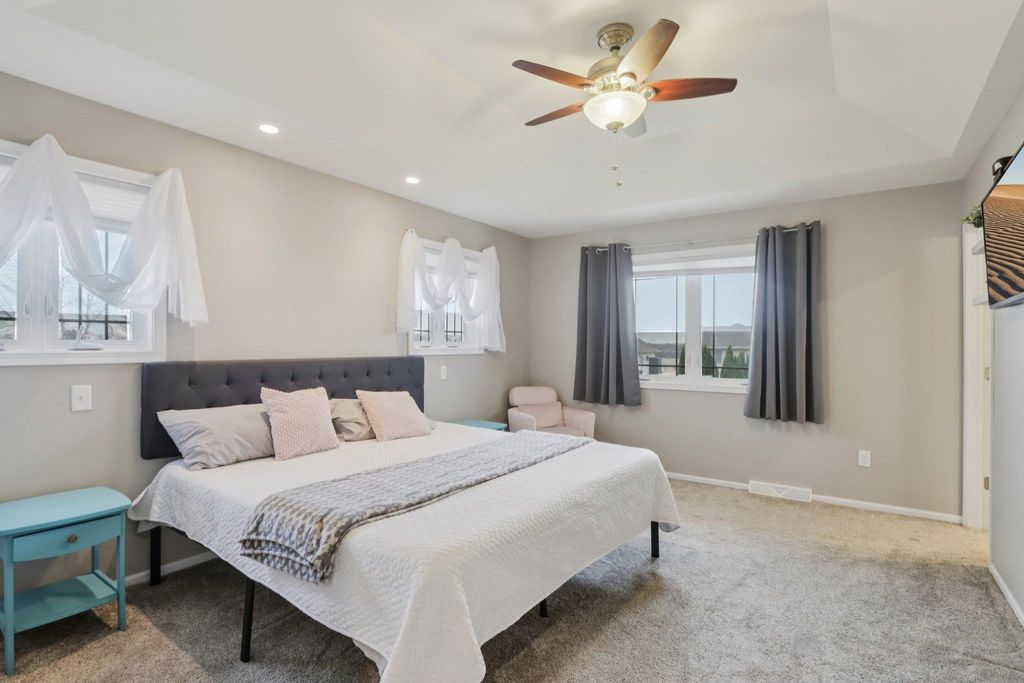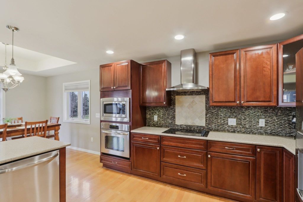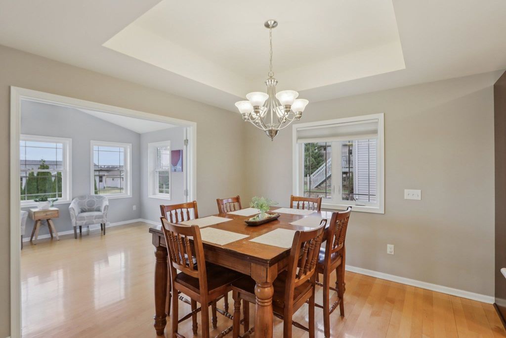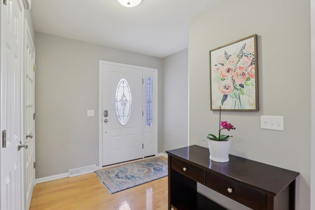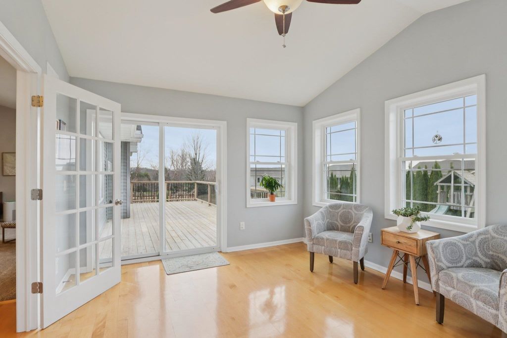 Spacious and beautifully designed 5-bedroom, 3-bath ranch home with an open concept layout and finished lower level. The inviting living room features a gas fireplace, while the kitchen offers cherry cabinets, granite countertops, and a breakfast bar. Enjoy the convenience of main-floor laundry and a 3-car garage. The beautiful, sunny 4-season room opens to the deck and leads to the patio and private backyard, perfect for relaxing or entertaining. The exposed lower level includes a huge rec room with a wet bar, two additional bedrooms, and a full bath. You'll love the location of this move-in-ready home, tucked on a quiet cul-de-sac near parks and schools.