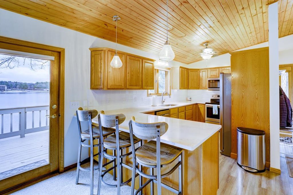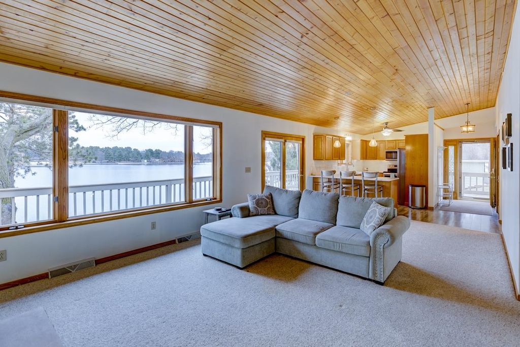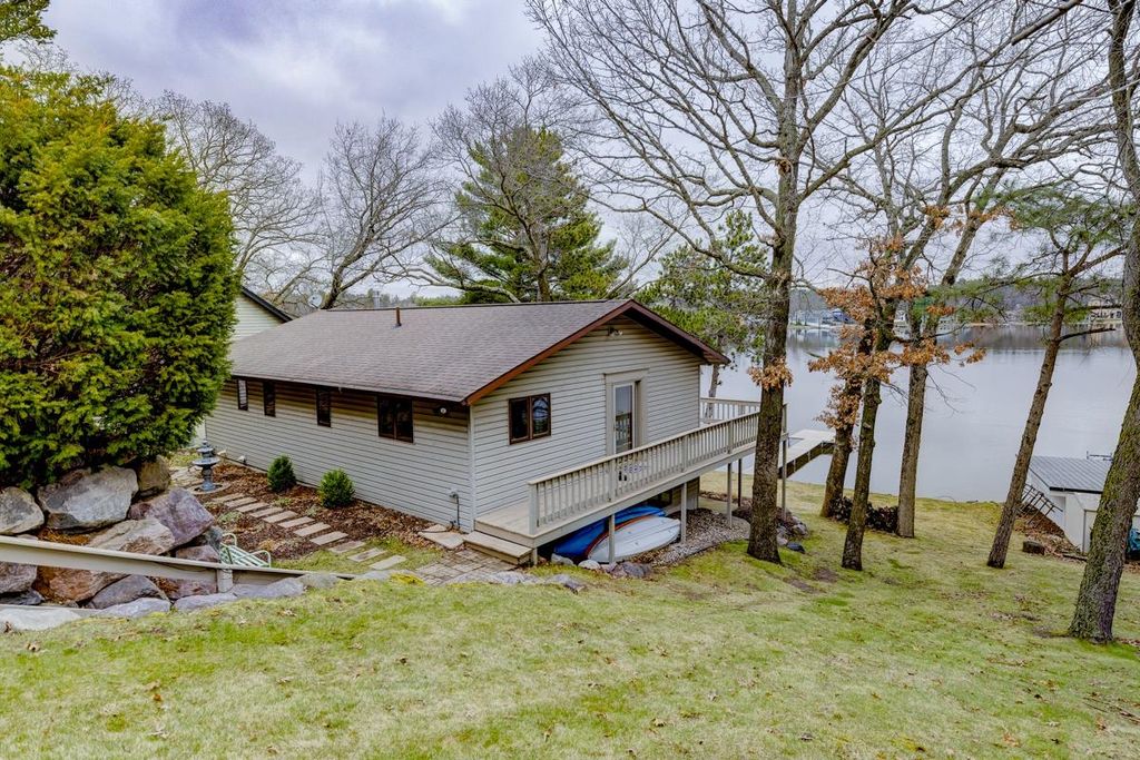Located on beautiful Lake Delton, this mostly furnished waterfront property has over 70 feet of frontage and is near all of your favorite attractions in the Dells. With breathtaking lake views, private dock, wrap around deck and many new updates it is move in ready. With 4 bedrooms, 3 bathrooms, this property will be your new favorite spot to spend time with family and friends. Close to many restaurants, waterparks, wonderful state parks and much more! Also features ample off-street private parking for 5 cars. This home features cathedral ceilings, a walkout lower level to the lake, wrap around deck, lower-level patio, pier/boat dock, waterfront fire pit area, zen garden and two sheds for storage (street level and side of home). There have been many updates within the last 5 years - see the separate list for details, but includes kitchen appliances and kitchen counter/backsplash, fireplace, master and guest bathroom, water heater, furnace, pier/dock and brick fire pit/landscaping.