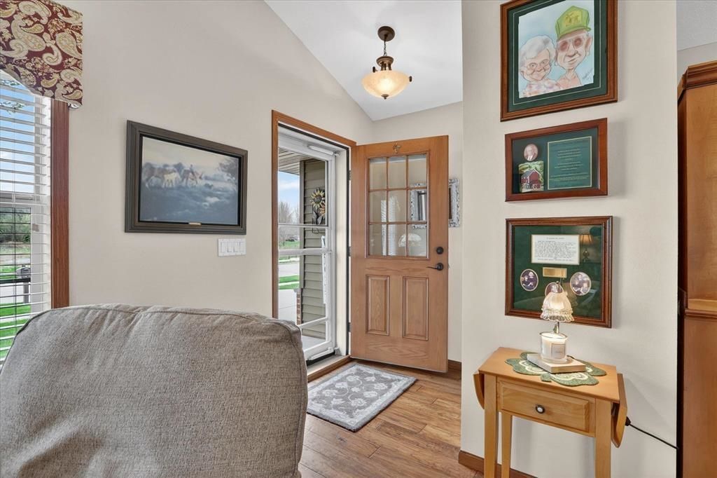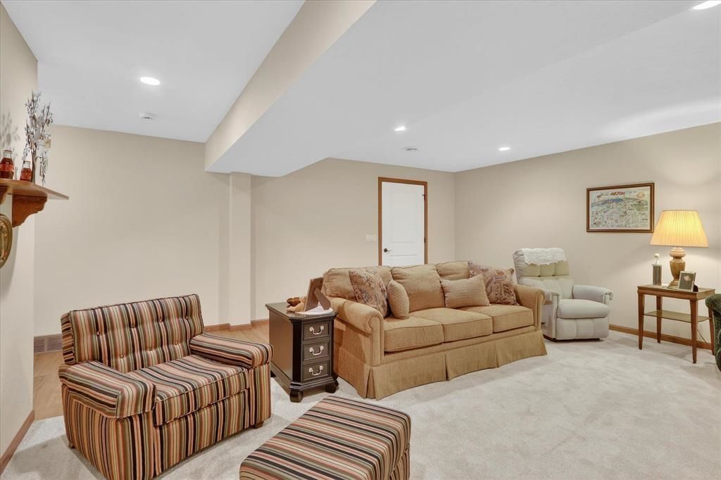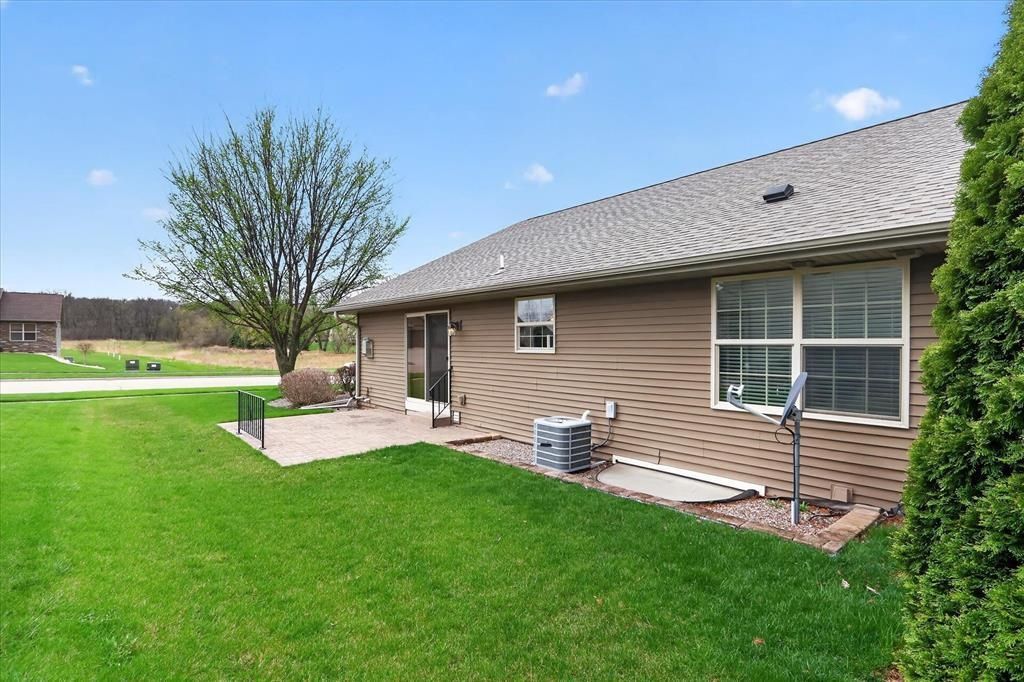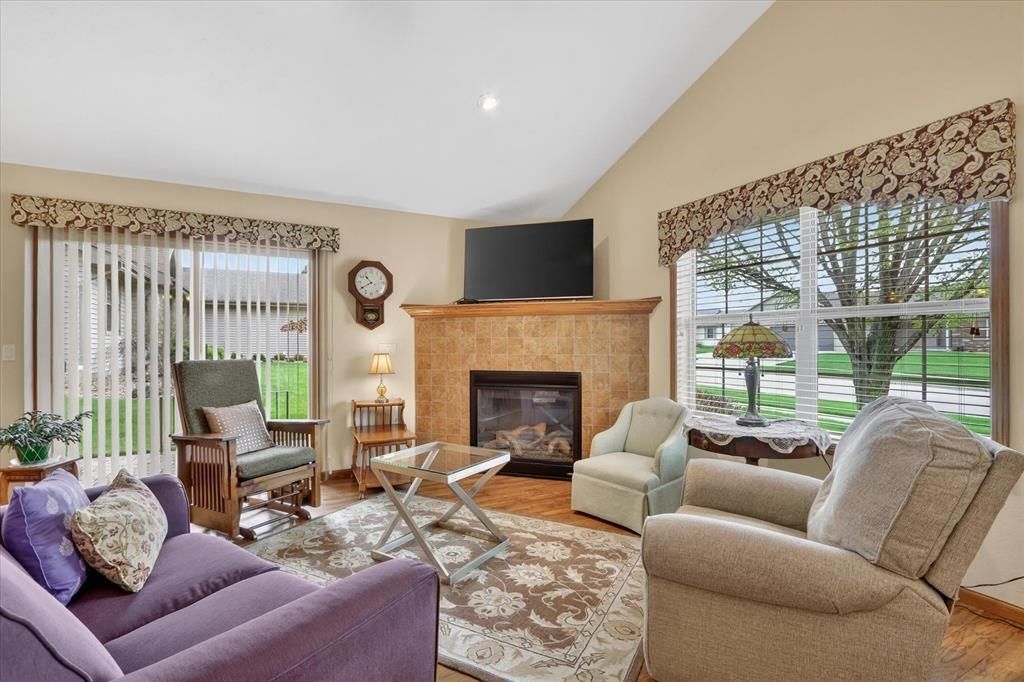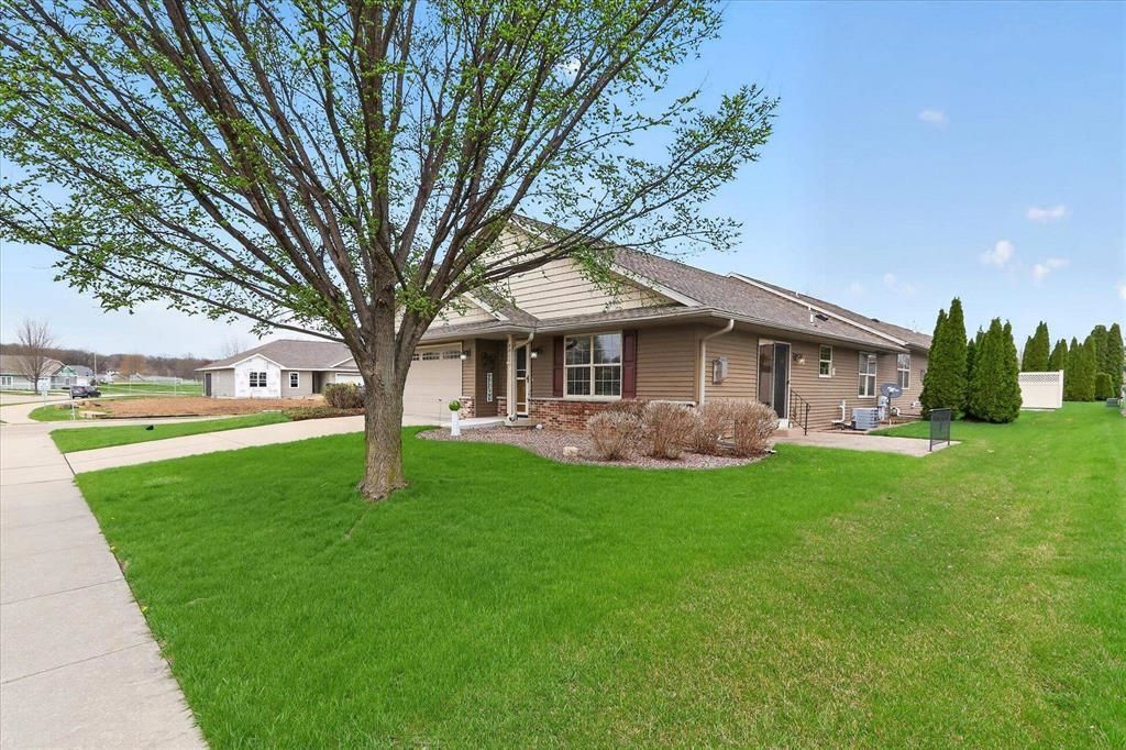 Condo living without the fees! This well-maintained 3-bedroom, 3 full bath duplex-style home offers the convenience of a condo with no HOA fees. The main level features a spacious great room with vaulted ceilings, gas fireplace, and an island kitchen, along with 2 bedrooms, 2 baths, and a nice mudroom/laundry area. Enjoy no-step entry and 36" wide doorways throughout the main floor for added accessibility. The finished lower level includes a bedroom, full bath, family room, and plenty of storage. Outside, you'll find a beautifully landscaped yard and stamped concrete patio. Located in a quiet neighborhood close to the Janesville trail system, with easy access to walking and biking paths, interstate, shopping, and restaurants.