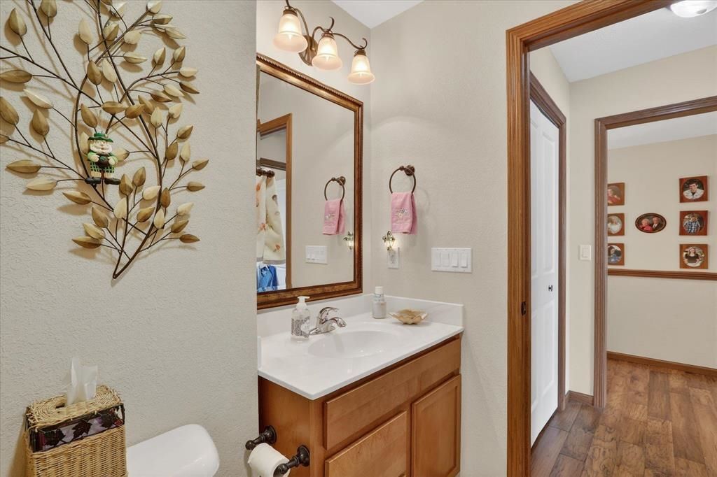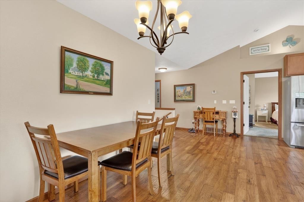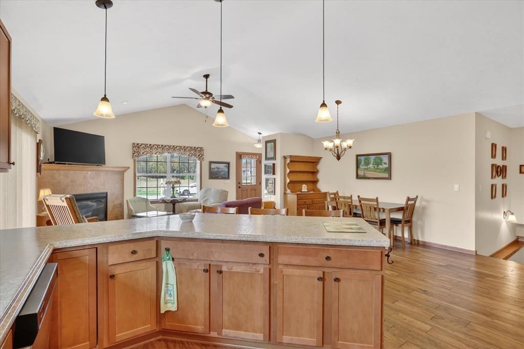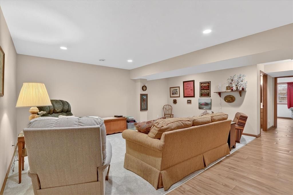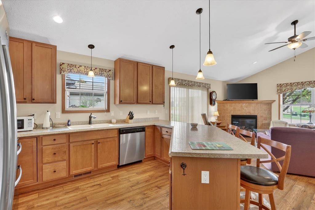 Condo living without the fees! This well-maintained 3-bedroom, 3 full bath duplex-style home offers the convenience of a condo with no HOA fees. The main level features a spacious great room with vaulted ceilings, gas fireplace, and an island kitchen, along with 2 bedrooms, 2 baths, and a nice mudroom/laundry area. Enjoy no-step entry and 36" wide doorways throughout the main floor for added accessibility. The finished lower level includes a bedroom, full bath, family room, and plenty of storage. Outside, you'll find a beautifully landscaped yard and stamped concrete patio. Located in a quiet neighborhood close to the Janesville trail system, with easy access to walking and biking paths, interstate, shopping, and restaurants.