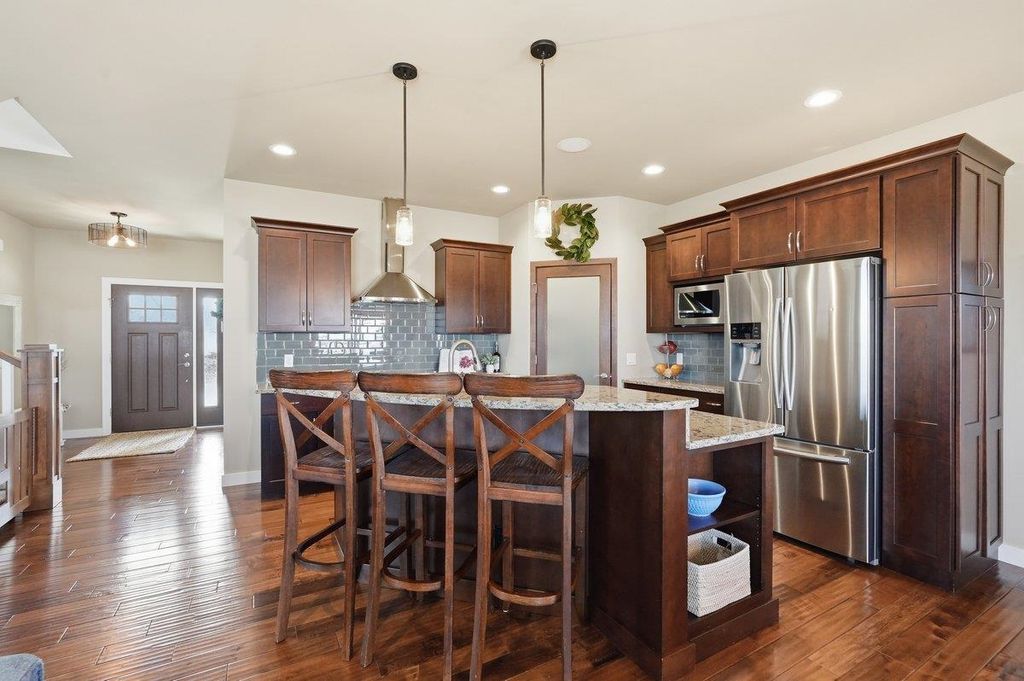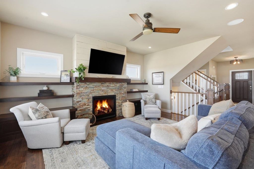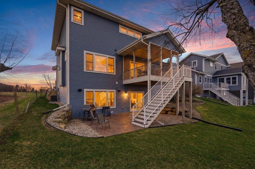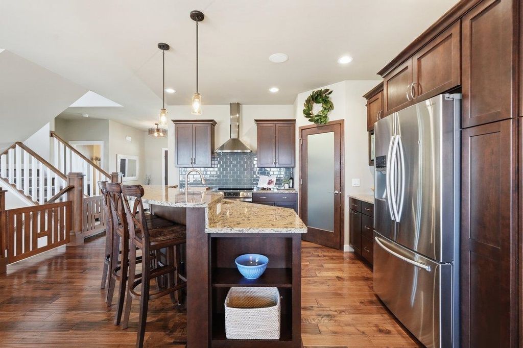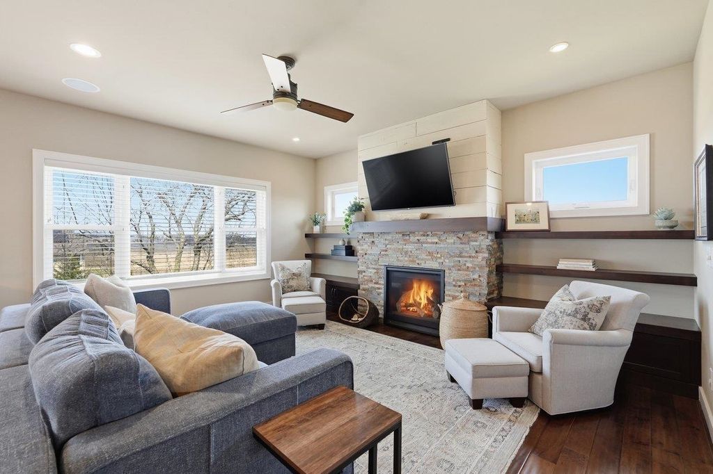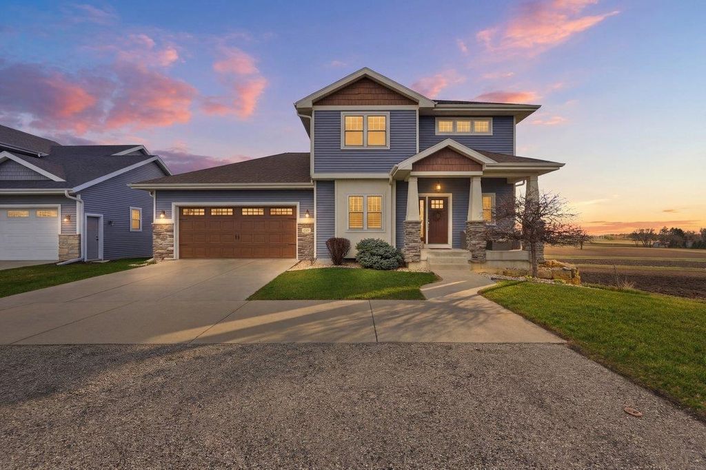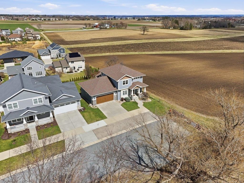 Showings begin Thur, 4/09. Tucked at the end of a quiet, dead-end street at one of the highest points in Middleton's Woodstone neighborhood, this beautifully maintained 2015 home stands apart with thoughtful design, quality craftsmanship, and flexible living spaces. The main level blends warmth and function with hardwood floors, a home office with custom built-ins, gas fireplace, & an open layout ideal for everyday living & entertaining. The screened porch extends the living space, perfect for morning coffee or evening wine. Upstairs, the primary suite features vaulted ceilings & custom closet shelving. The finished walkout lower level offers a bedroom, full bath, living space, and kitchenette. An oversized two-car garage with hanging storage and an electric car charger. Enjoy the beautifully landscaped yard with a stamped patio, fire pit, and natural stone seating. Unparalleled in its offerings and just minutes from charming downtown Middleton, homes like this do not come along often.