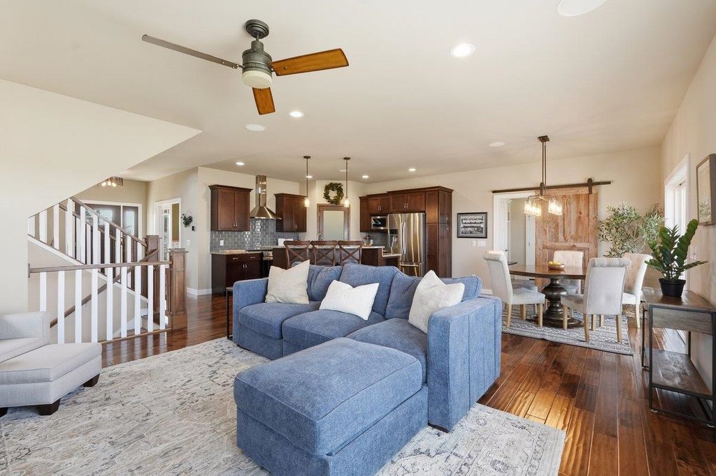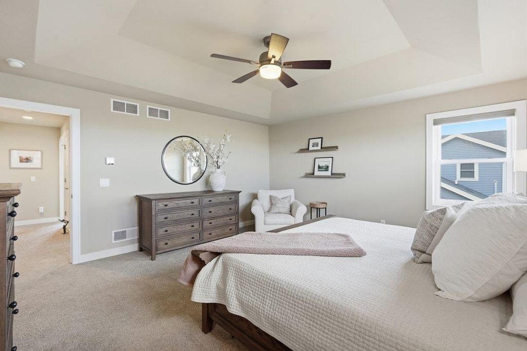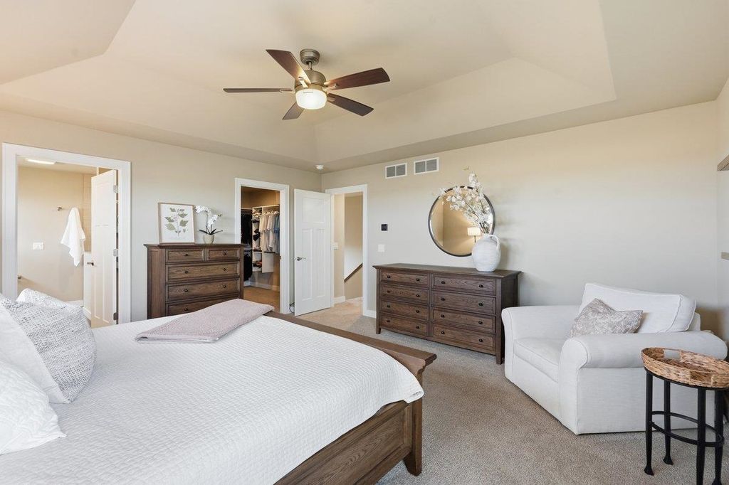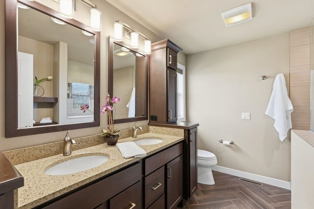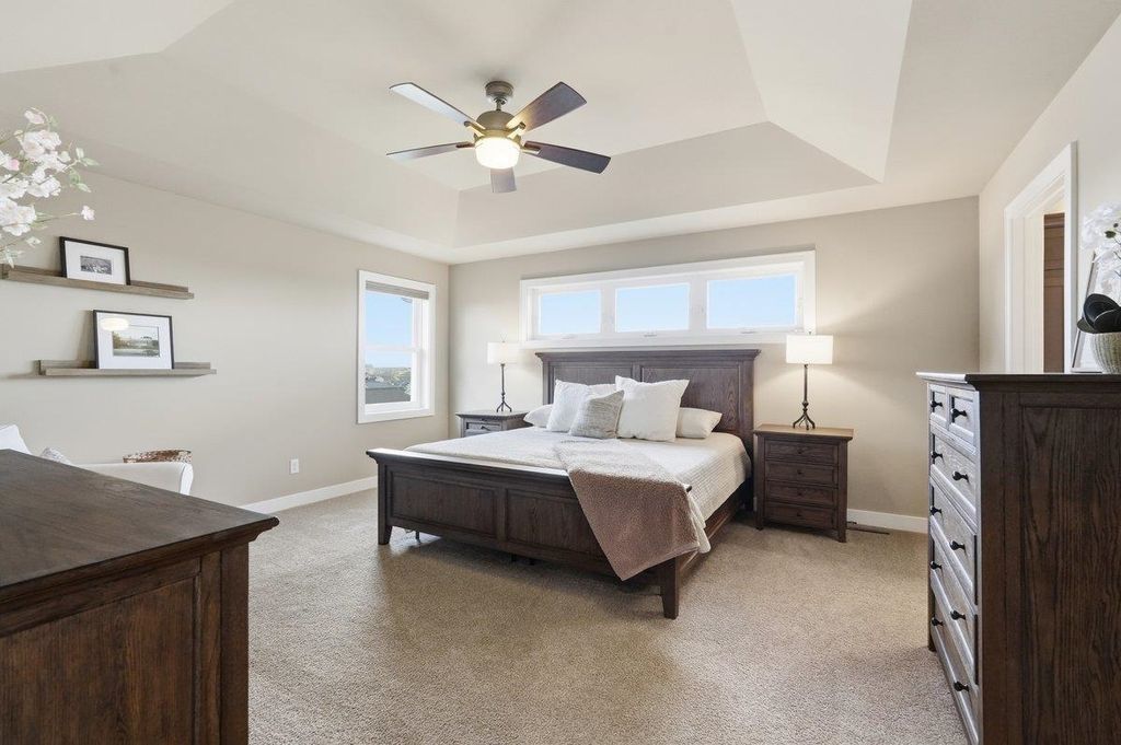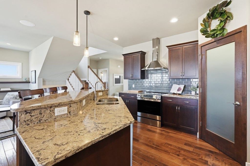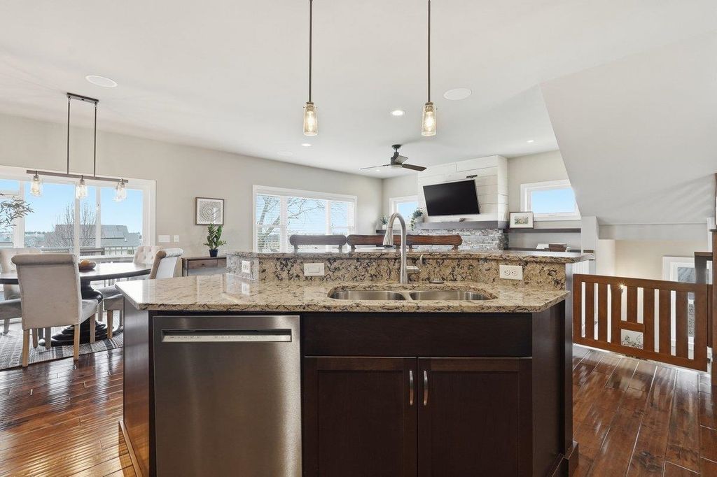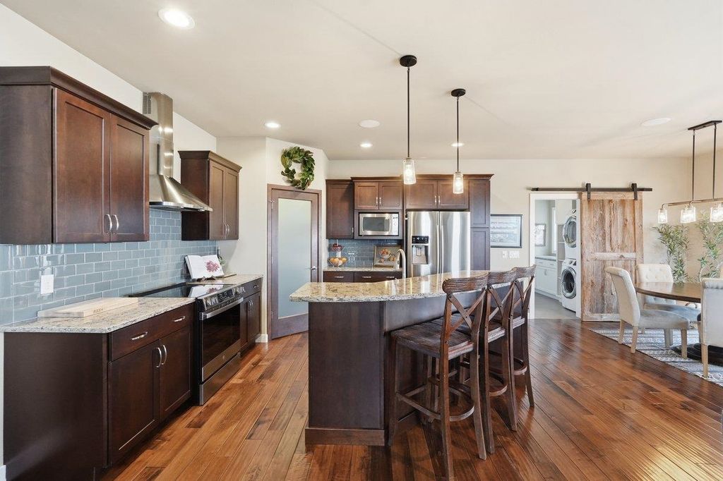 Showings begin Thur, 4/09. Tucked at the end of a quiet, dead-end street at one of the highest points in Middleton's Woodstone neighborhood, this beautifully maintained 2015 home stands apart with thoughtful design, quality craftsmanship, and flexible living spaces. The main level blends warmth and function with hardwood floors, a home office with custom built-ins, gas fireplace, & an open layout ideal for everyday living & entertaining. The screened porch extends the living space, perfect for morning coffee or evening wine. Upstairs, the primary suite features vaulted ceilings & custom closet shelving. The finished walkout lower level offers a bedroom, full bath, living space, and kitchenette. An oversized two-car garage with hanging storage and an electric car charger. Enjoy the beautifully landscaped yard with a stamped patio, fire pit, and natural stone seating. Unparalleled in its offerings and just minutes from charming downtown Middleton, homes like this do not come along often.
