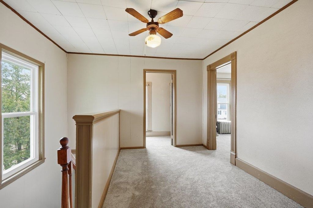Welcome to this beautiful home filled with character and charm, with so many updates! Entering through the wonderful screened porch, you'll fall in love with the custom tile floor, original woodwork, and cherry trim. Enjoy relaxing in the spacious, sunny living room. The huge kitchen is ideal for cooking and hosting, with plentiful counter and cabinet space and updated appliances. Upstairs offers 3 bedrooms with large closets, fresh paint, and brand new carpet. The basement features abundant storage and a 2nd full bath ready for your finishing touches. Watch the sunrise on the deck overlooking the large fenced lot complete with a playhouse/shed and firepit. Detached 2 car garage has a new door, opener, and brand new siding! Other updates: windows (2025), roof (2018), boiler (2019), water softener (2022), and 200 amp electrical service! Enjoy wonderful hilltop views over Belleville, or take a quick walk to the new Yards at Belleville Depot! Don't miss this one!
