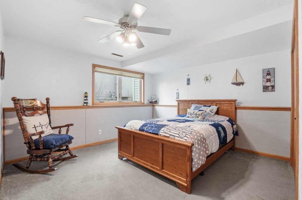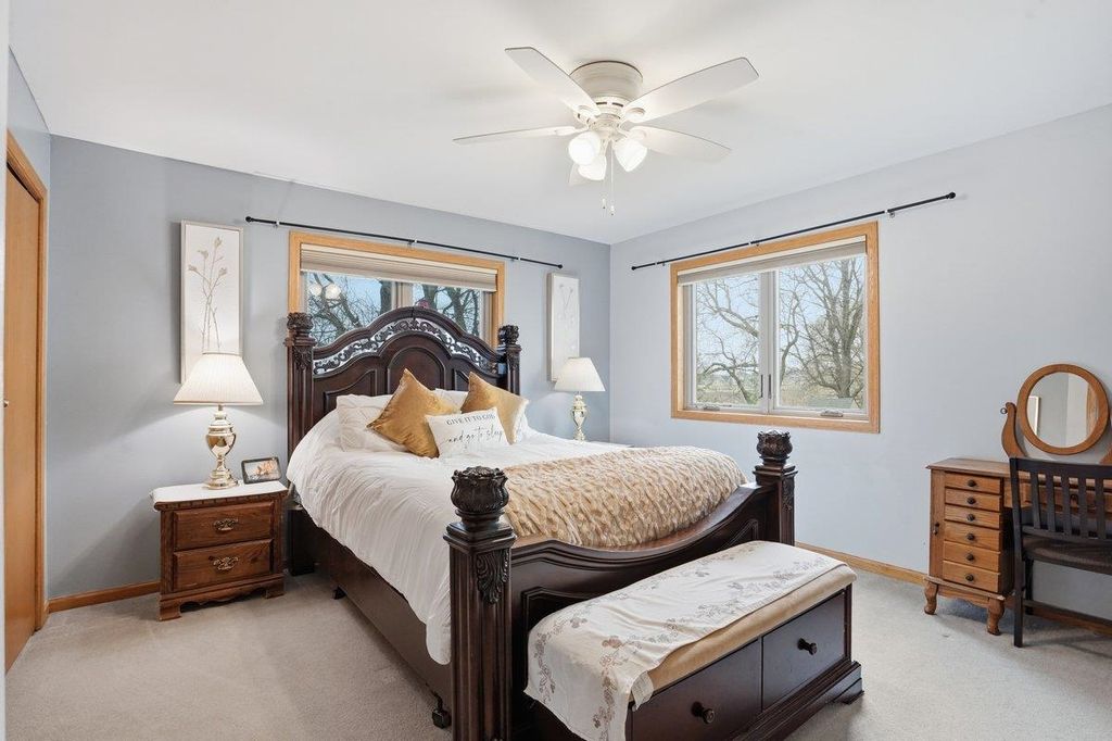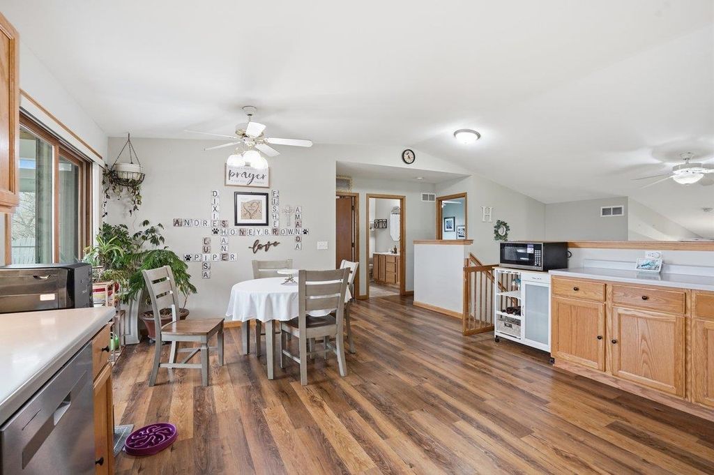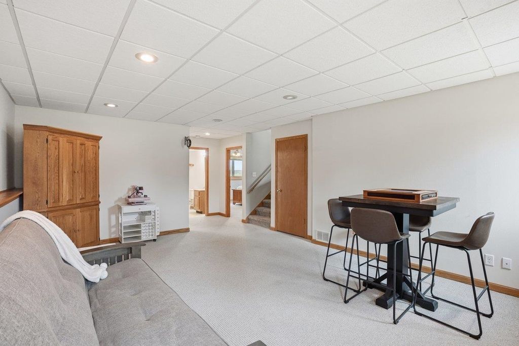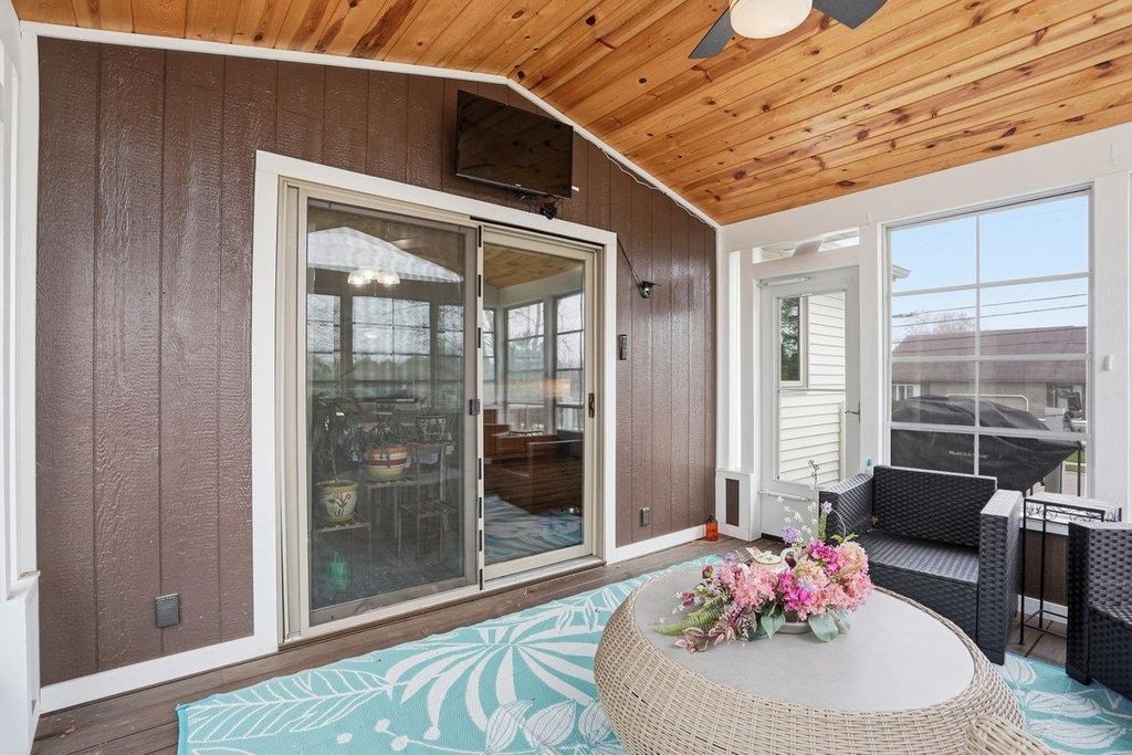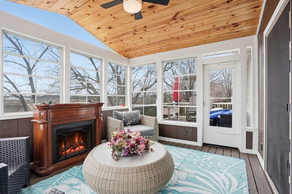 This lovely home welcomes you with vaulted ceilings and abundant natural light, creating an airy and inviting feel throughout. At the heart of the home, the expansive eat-in kitchen features a high-end Wolf range and stainless steel appliances. With abundant counter space and ample cabinetry, it provides plenty of room for cooking and entertaining. Flowing seamlessly from the kitchen, get ready to fall in love with the three-season porch! It is framed by open balconies on both sides, overlooking the backyard. Whether you're sipping your morning coffee, unwinding, or hosting gatherings, this versatile space extends your living area and brings the beauty of the outdoors right to your doorstep. The lower level adds extra living space, perfect for a game room, hobby area, or cozy media room. The fourth bedroom offers flexibility as home office or fitness area. Enjoy the short distance to groceries, restaurants, parks, library, and city pool.